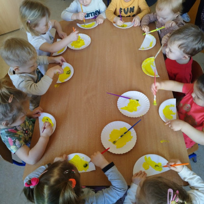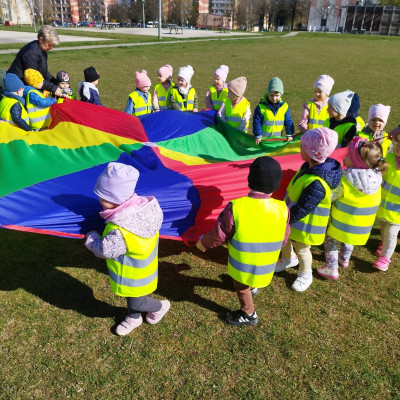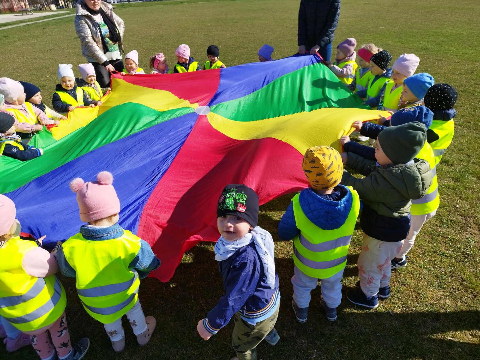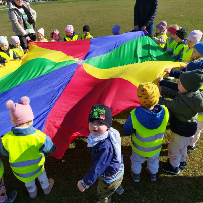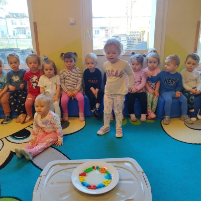 W tym tygodniu Muchomorki obchodziły na grupie kolorowy tydzień z okazji Dnia Tęczy. W specjalnych zajęciach tematycznych dotyczących wszystkiego co łączy się w tęczą, dzieci dowiedziały się jak powstaje tęcza i kiedy można ją zaobserwować, przeprowadzaliśmy eksperymenty z kolorami, uczyliśmy się wierszyka o kolorach tęczy, utrwalając przy okazji nazwy kolorów. Dzieci wykonały piękną pracę plastyczną przedstawiająca tęczę oraz świetnie bawiliśmy się na świeżym powietrzu z wykorzystaniem chusty animacyjnej. To był tydzień pełen radości i kolorów.