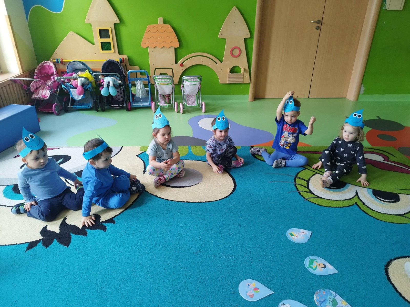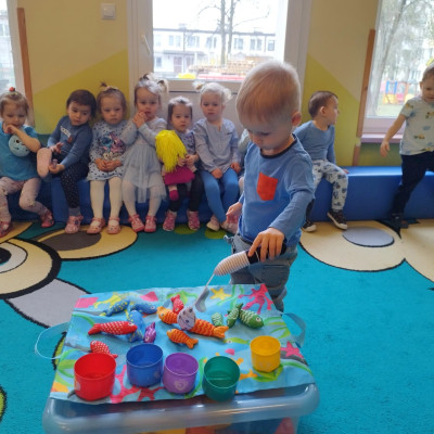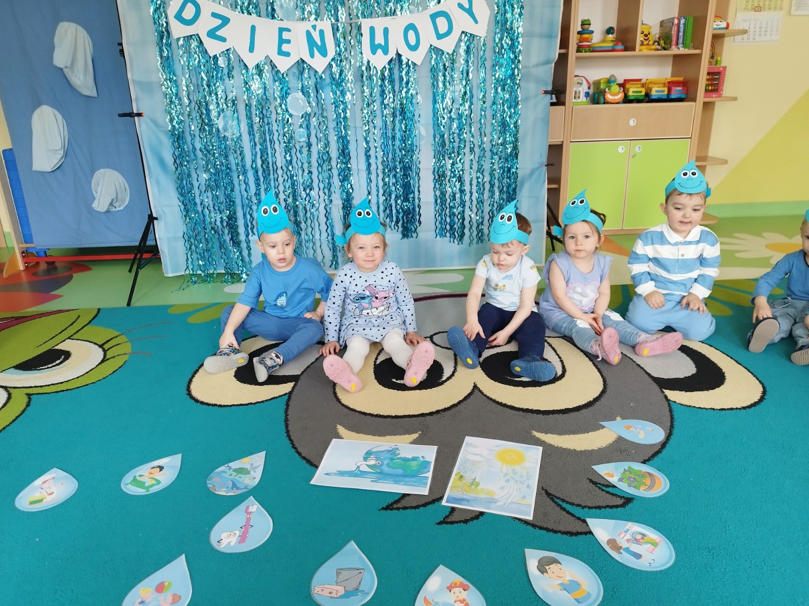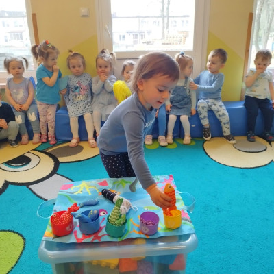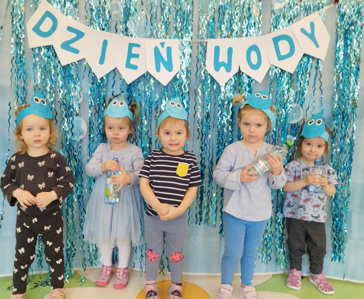 Tego dnia dzieci wystroiły się w kolory wody -we wszystkie jej odcienie, a także przyniosły butelkę swojej ulubionej wody. Podczas zajęć tematycznych żłobkowicze dowiedzieli się do czego wykorzystujemy wodę - do picia, gotowania, mycia, prania i sprzątania, gaszenia pożaru czy podlewania. Poznali również zasady oszczędzania wody i dbania o jej czystość, gdyż jest to bardzo ważne dla całej planety i przyszłych pokoleń.