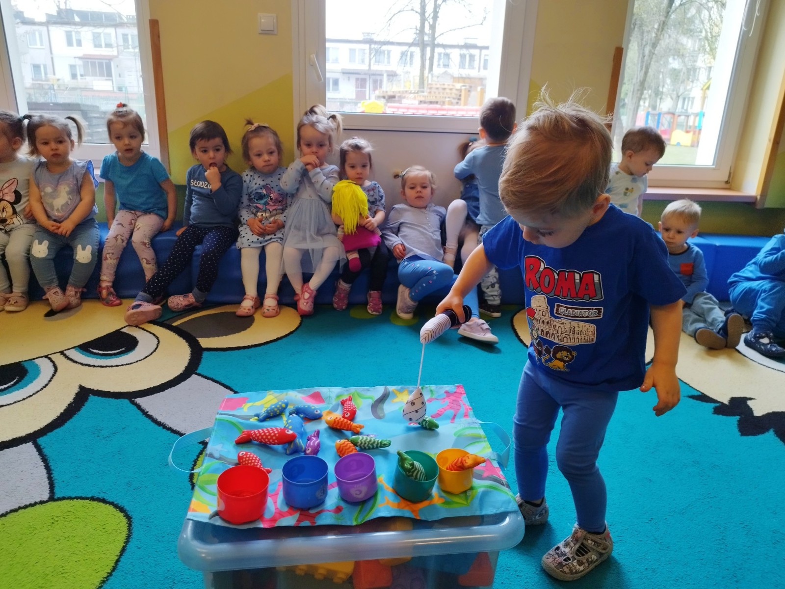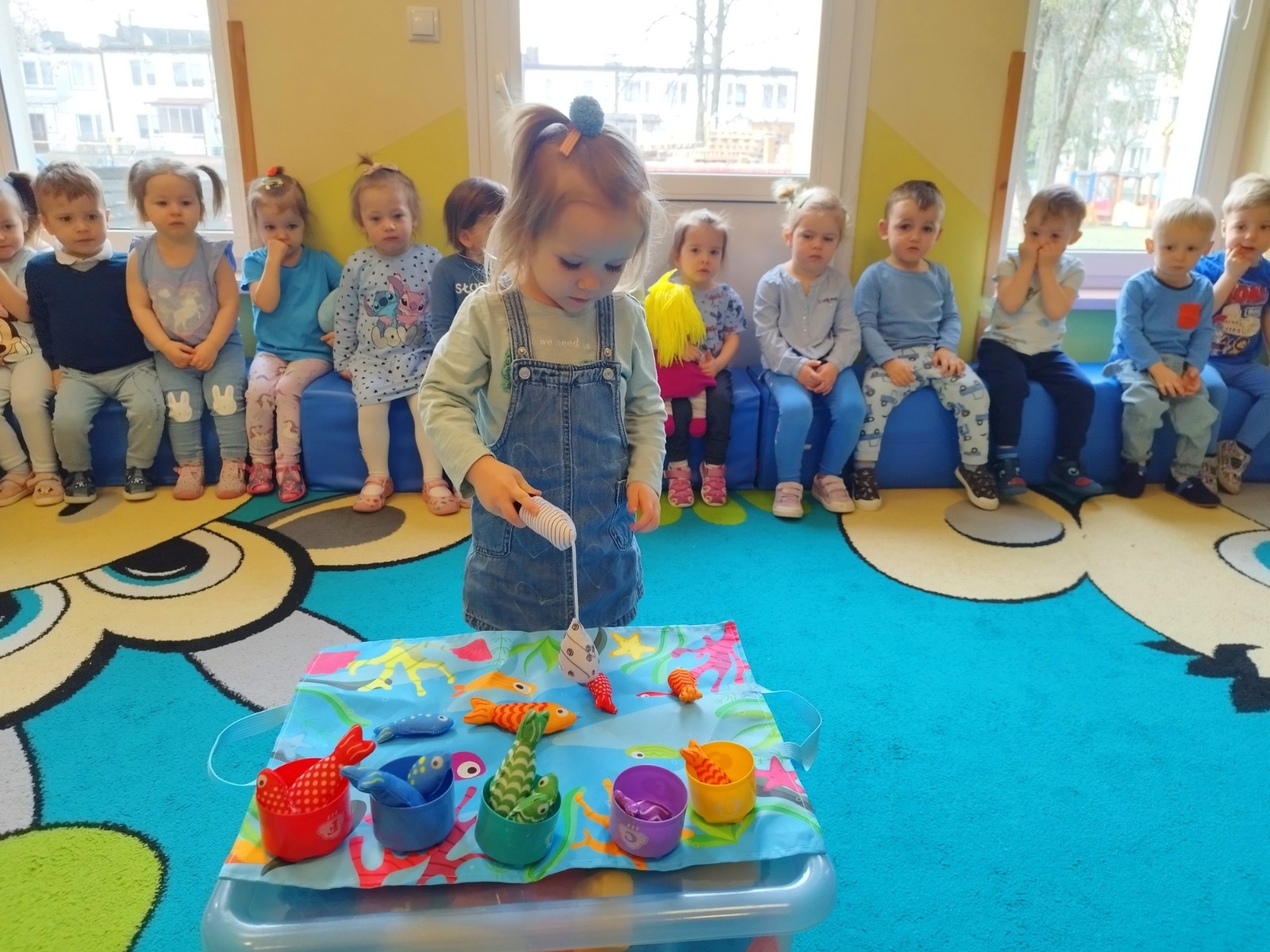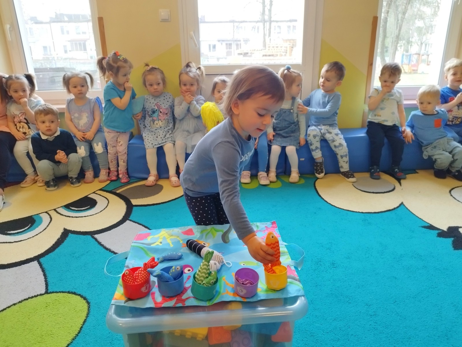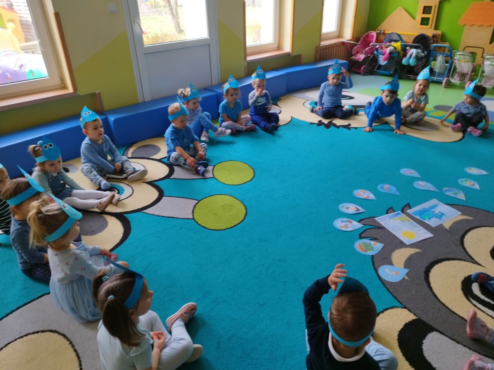 Tego dnia dzieci wystroiły się w kolory wody -we wszystkie jej odcienie, a także przyniosły butelkę swojej ulubionej wody. Podczas zajęć tematycznych żłobkowicze dowiedzieli się do czego wykorzystujemy wodę - do picia, gotowania, mycia, prania i sprzątania, gaszenia pożaru czy podlewania. Poznali również zasady oszczędzania wody i dbania o jej czystość, gdyż jest to bardzo ważne dla całej planety i przyszłych pokoleń.