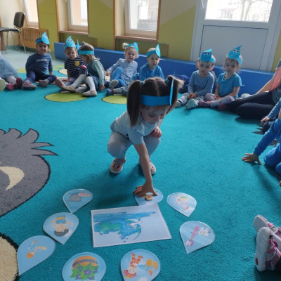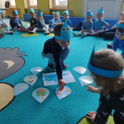 Zdjęcie przedstawia dzieci podczas zajęć tematycznych z okazji Dnia Wody