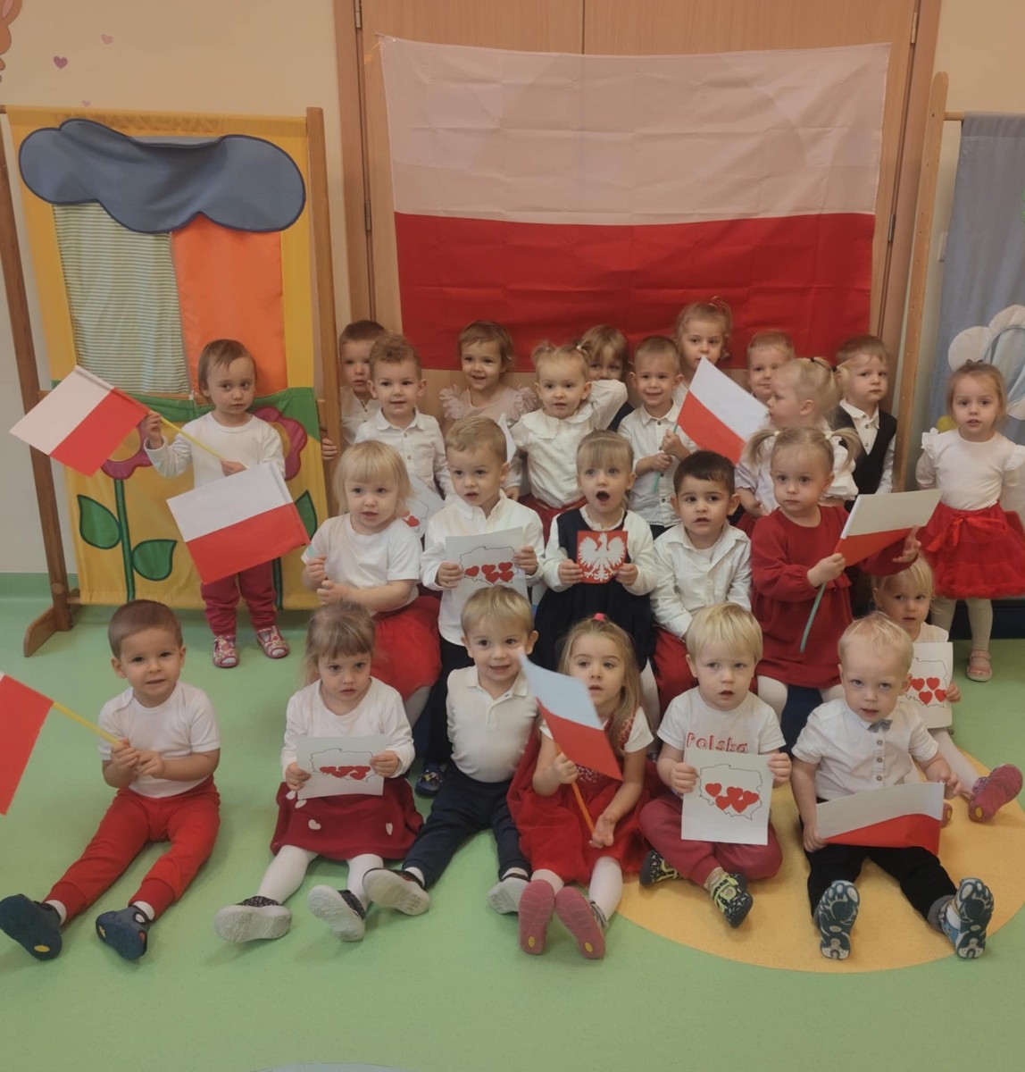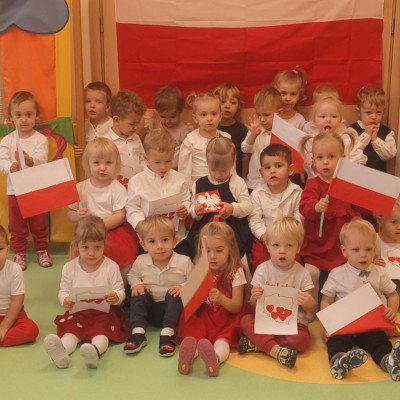 W naszym żłobku od najmłodszych lat uczymy dzieci patriotyzmu, przywiązana do Ojczyzny, wspieramy szacunek dla polskich symboli. Wszystkie dzieci uroczyście ubrane świętowały ten wyjątkowy dla Nas - Polaków dzień.