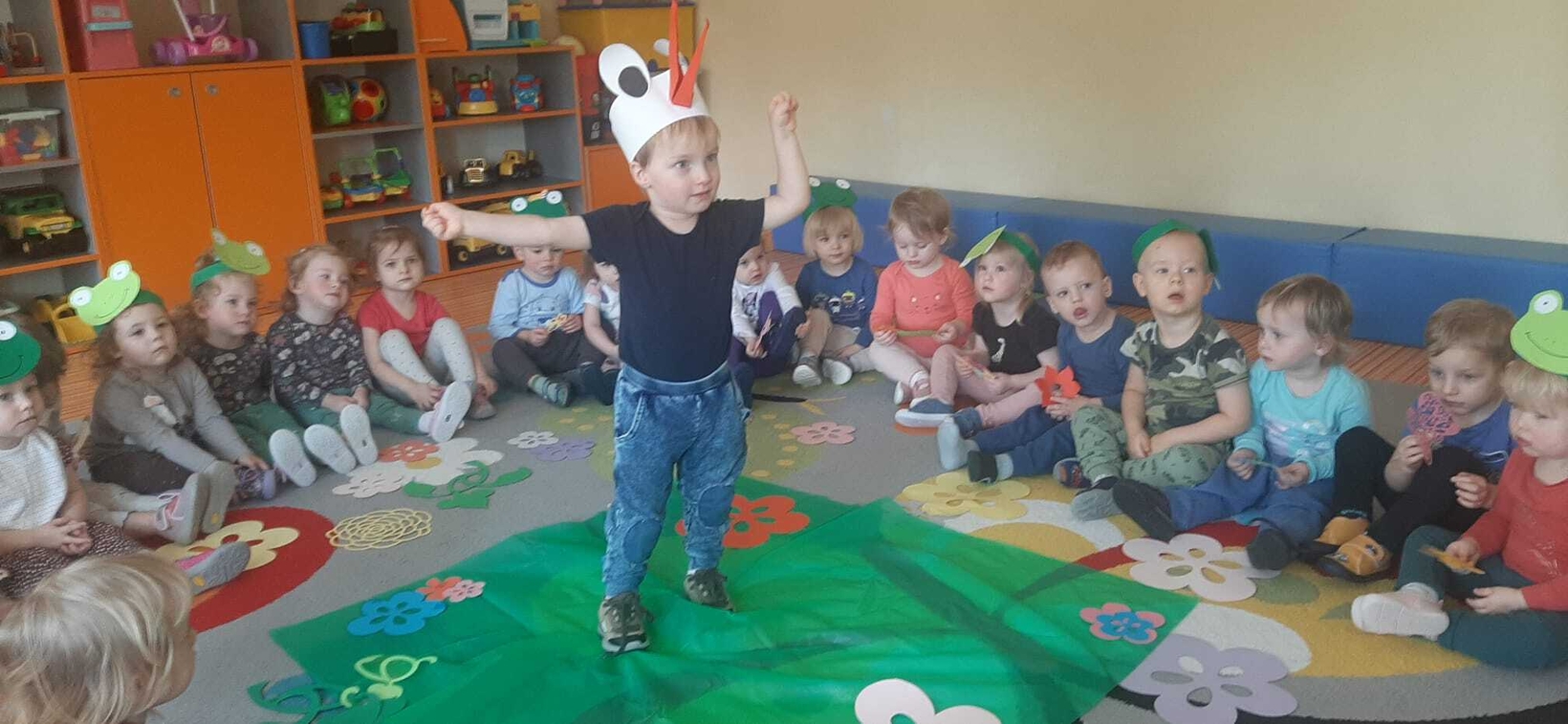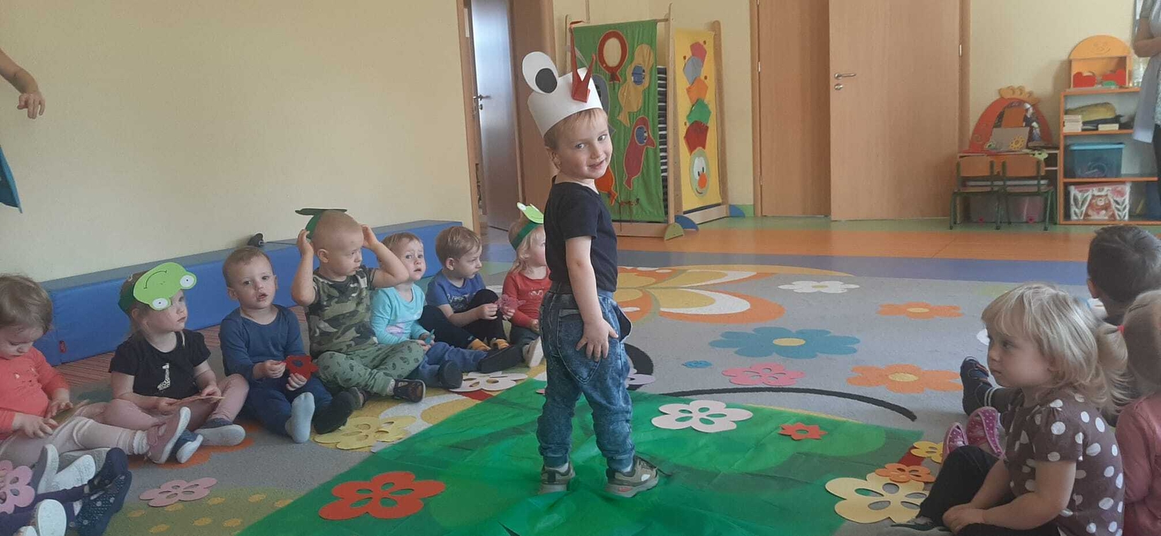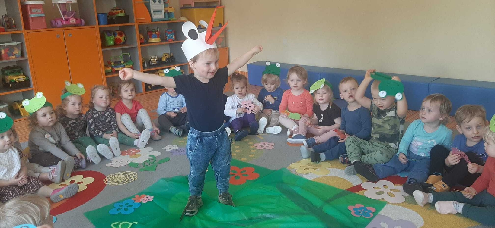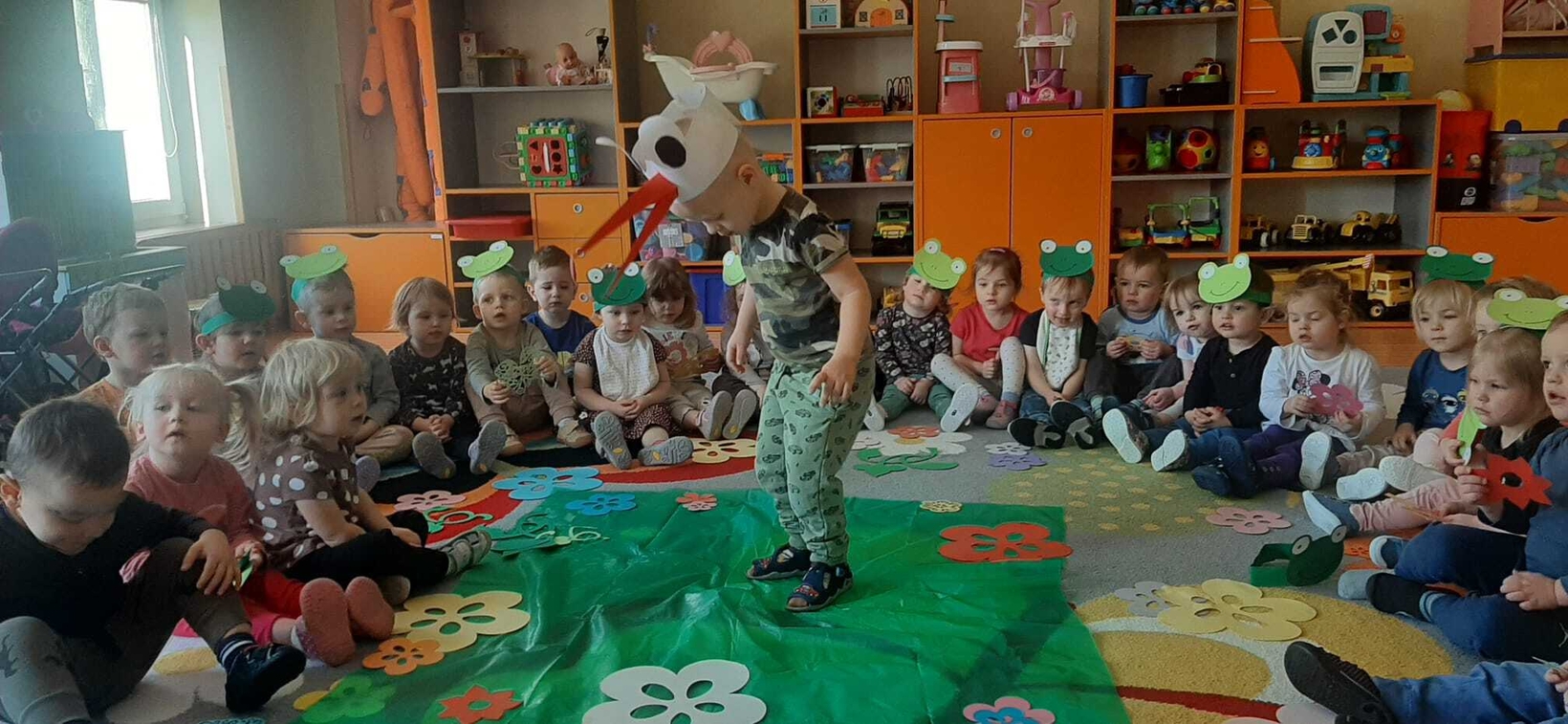 W dniu 21.03. w żłobku u Muchomorków zrobiło się zielono. Tego dnia każde dziecko miało element wiosennego stroju, były: żabki, kwiatuszki,motylki i bocian. Wspólnie z opiekunkami dzieci zaśpiewały piosenki o wiosnie " Kle,kle bocku ", Miła wiosno".