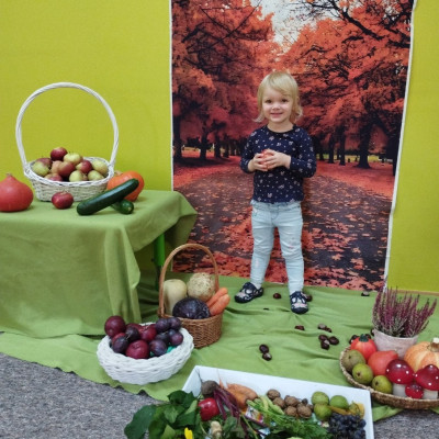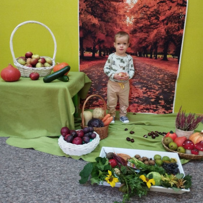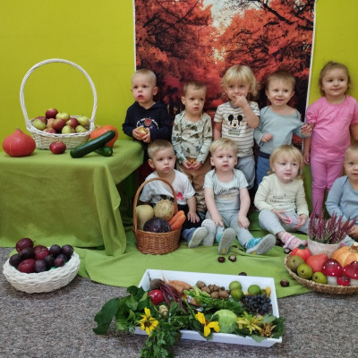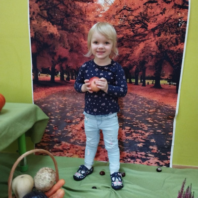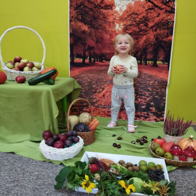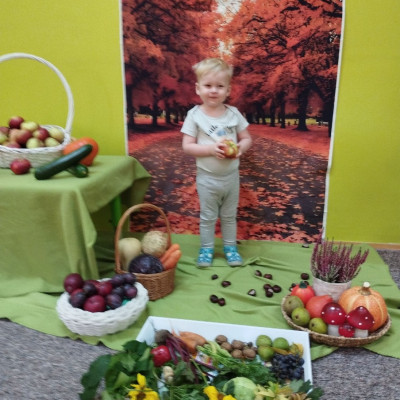 Zdjęcie przedstawia dzieci podczas jesiennych zajęć-1