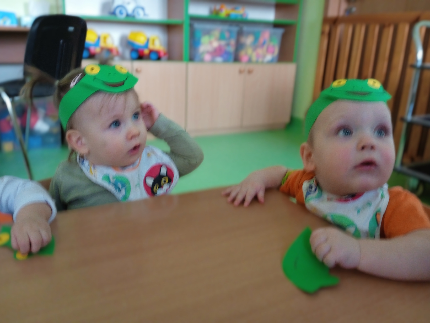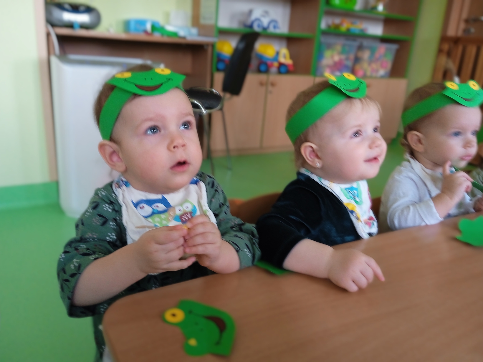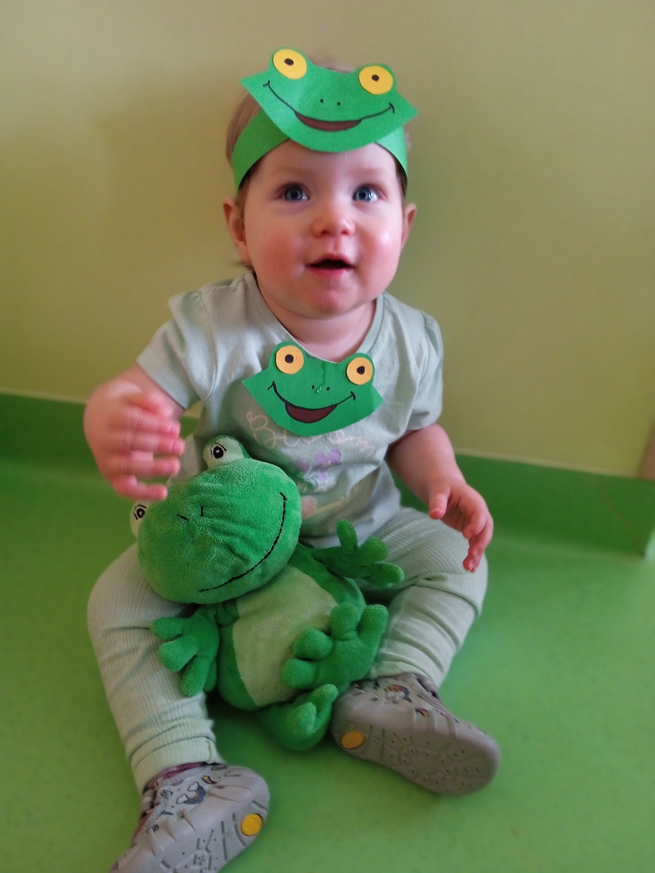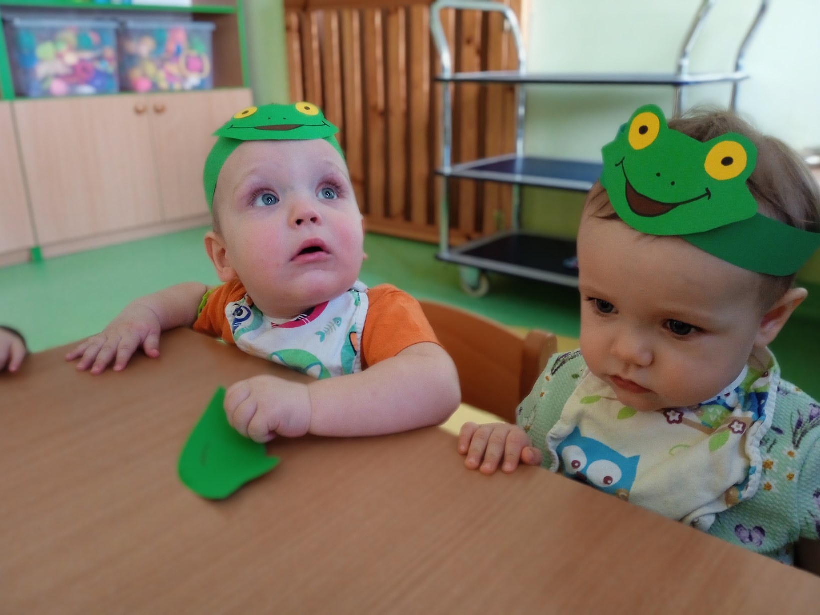 Nazwa naszej grupy maluszków ŻABKI zobowiązuje, dlatego w tym tygodniu obchodziliśmy Światowy Dzień Żaby. W tym dniu dzieci na naszej sali królował kolor zielony oraz maskotki, opaski i znaczki z podobiznami żabek. Obowiazkowo zaśpiewaliśmy piosenkę pt. "Była sobie żabka mała".