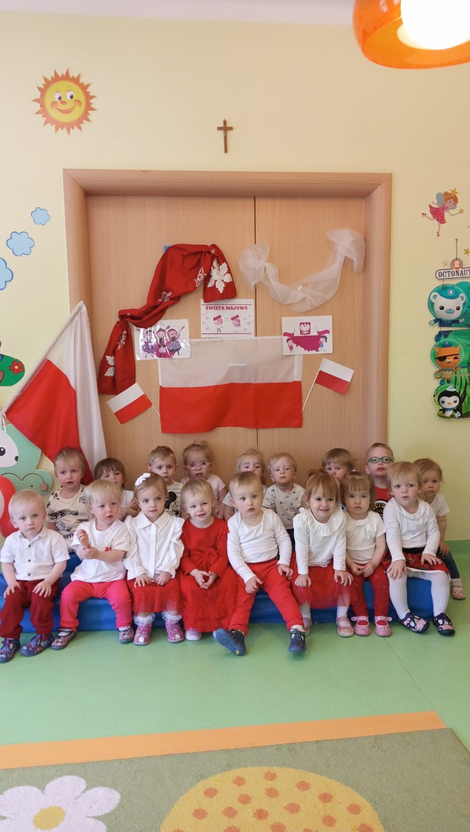 Dzieci z Grupy Biedronek dumnie uczestniczyły w zajęciach o Polsce poznając nasze symbole narodowe. Z zaangażowaniem wykonały pracę plastyczną "Moja flaga Polski" oraz w nagrodę za zebraną wiedzę i szacunek otrzymały dyplomy "Małego Patrioty".