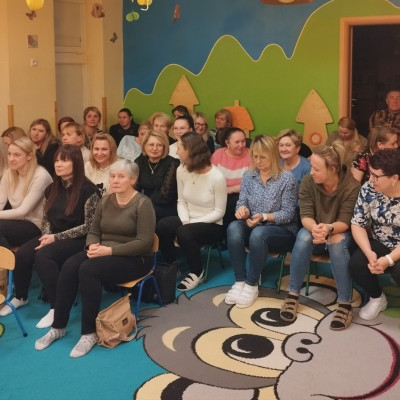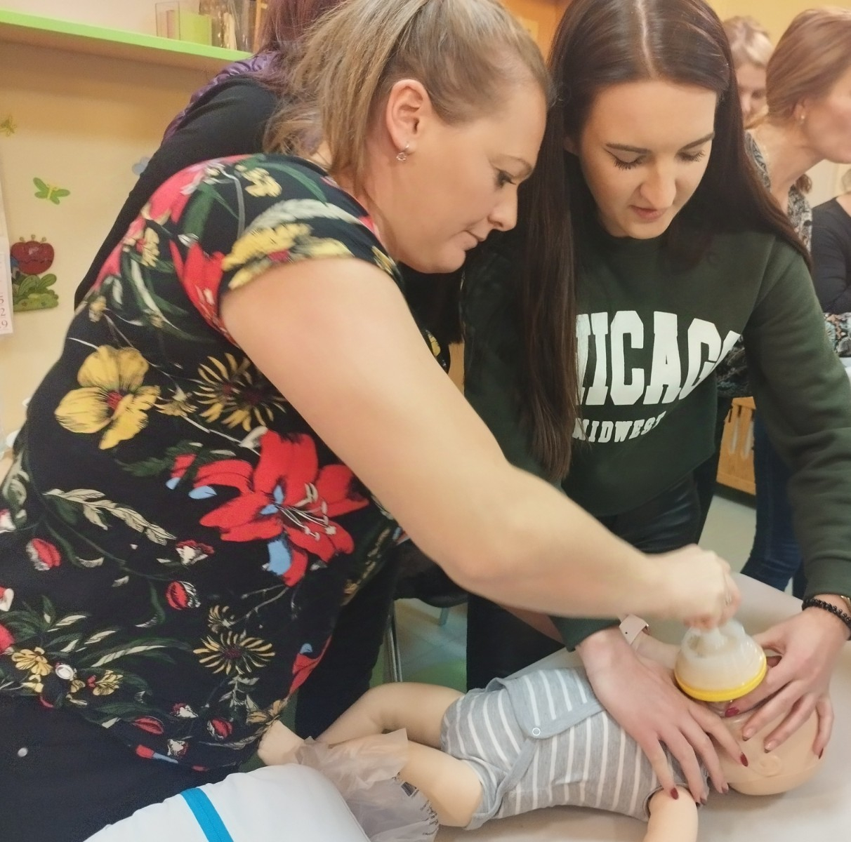 Zdjęcie przedstawia personel Zespołu Żłobków Miejskich podczas kursu z pierwszej pomocy