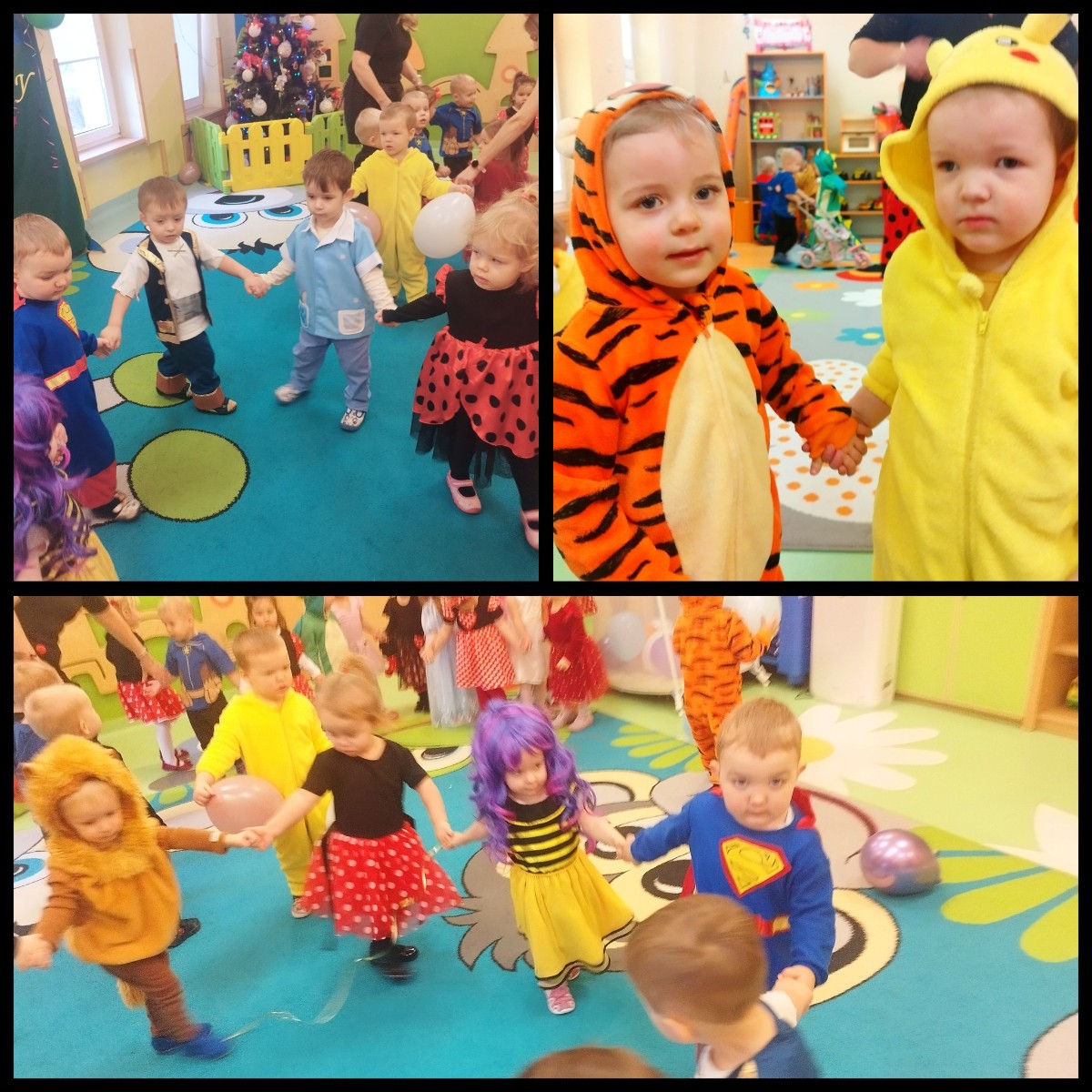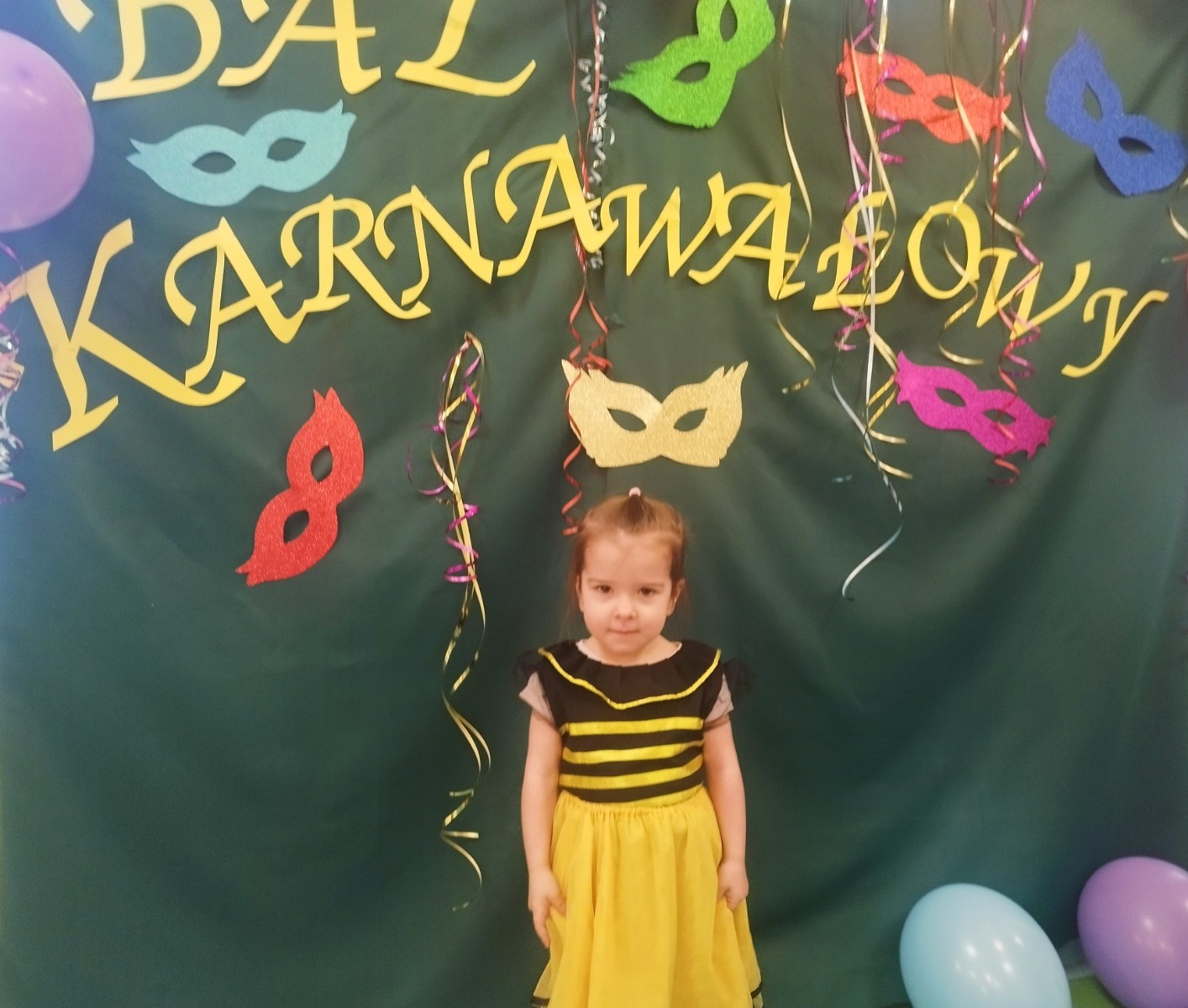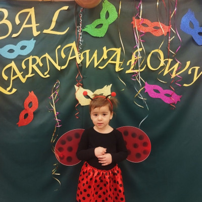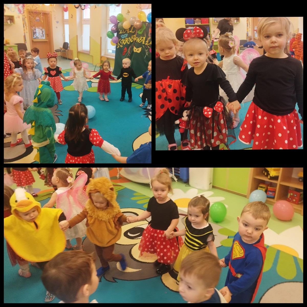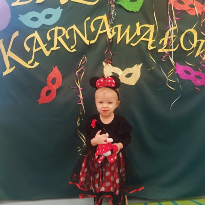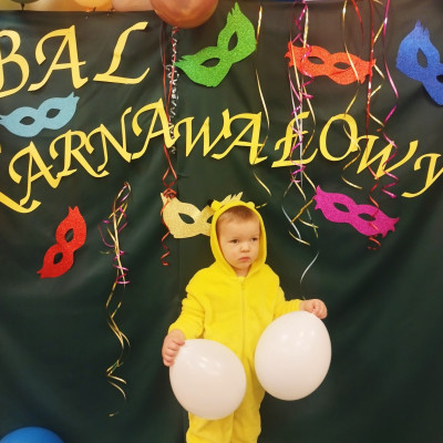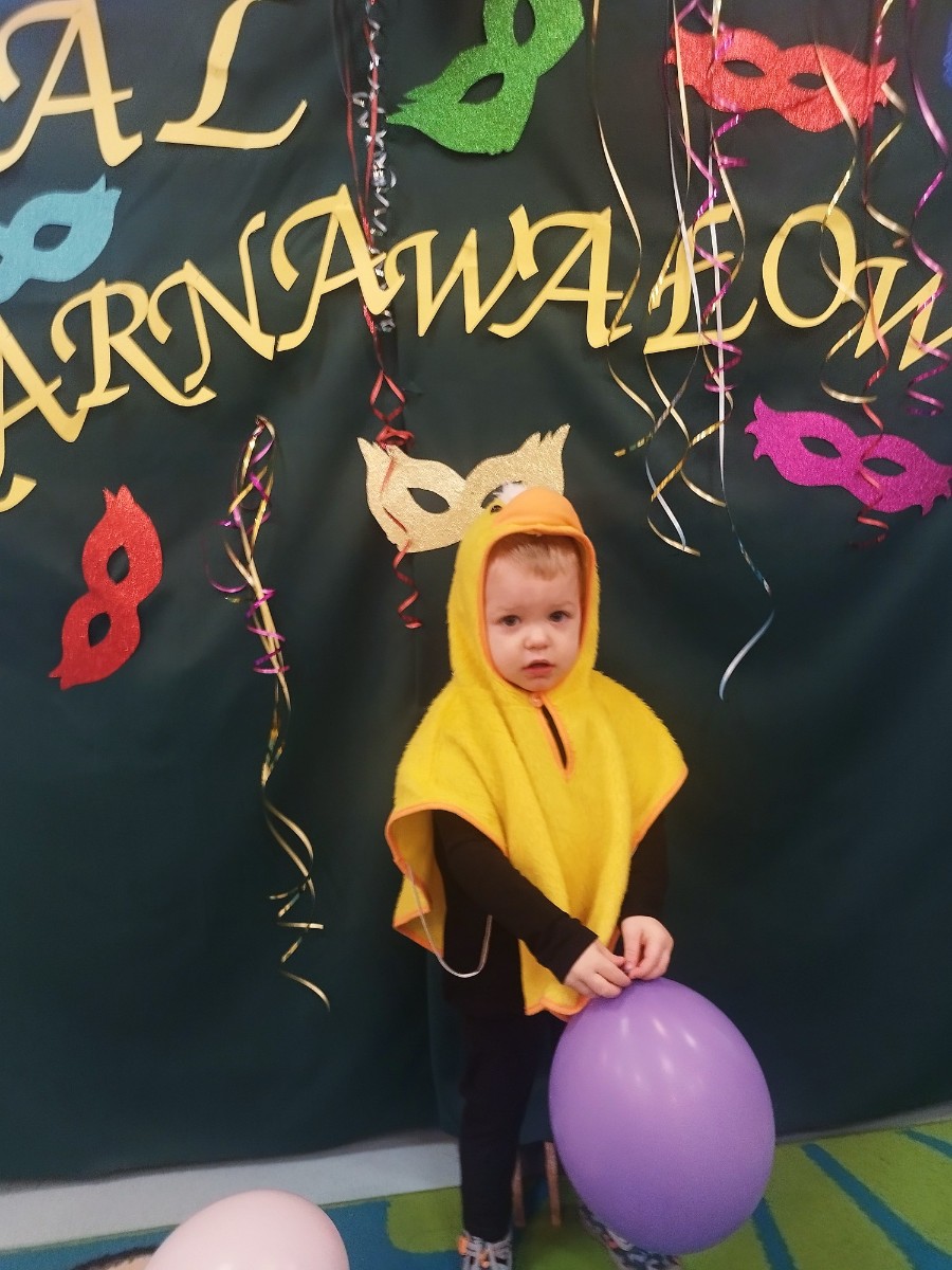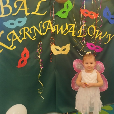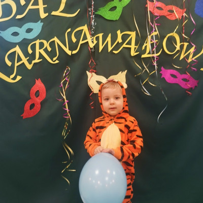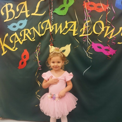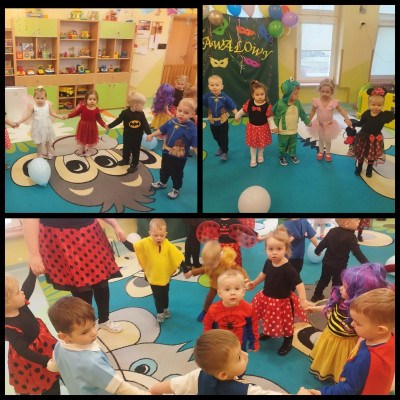 Zdjęcie przedstawia dzieci bawiące się na balu karnawałowym