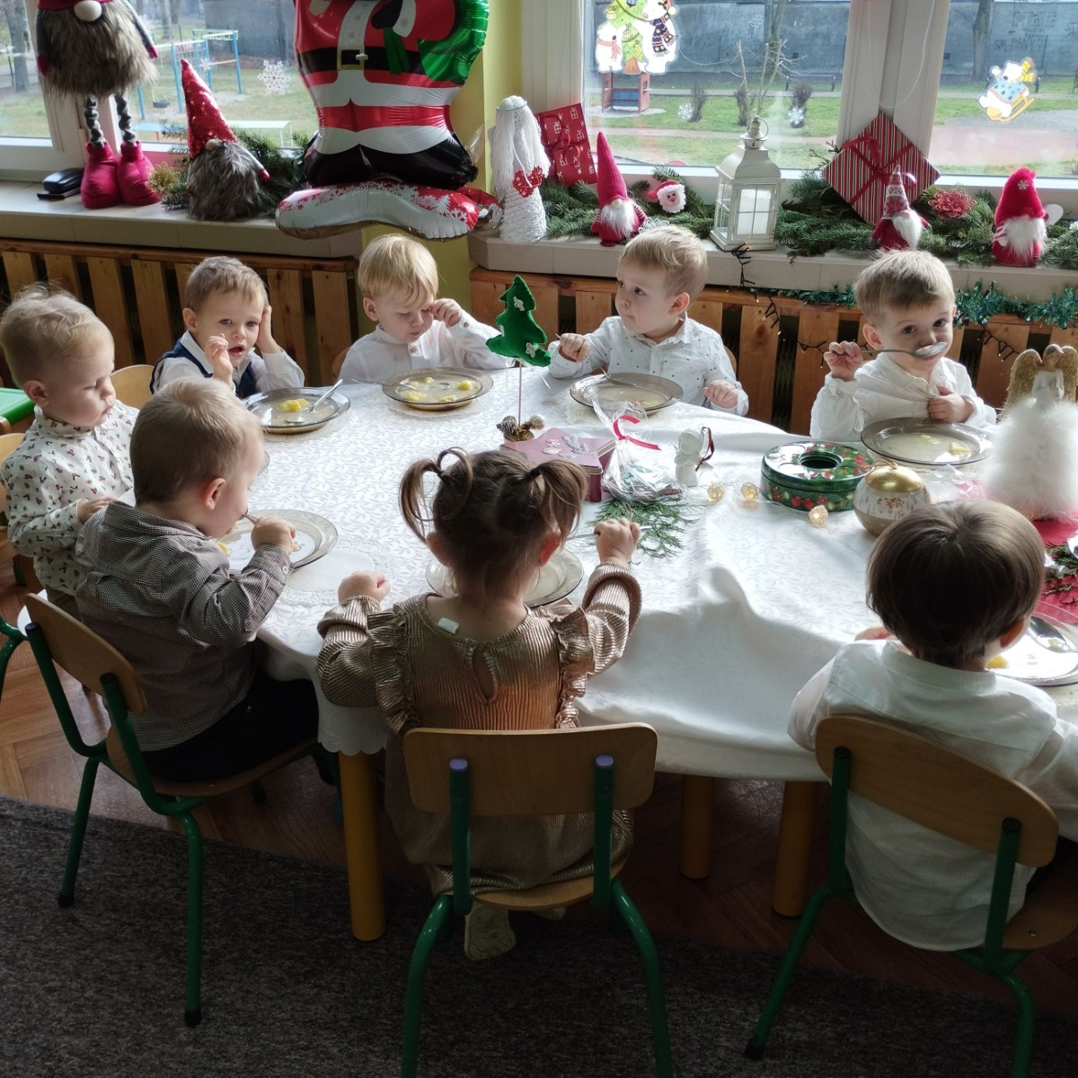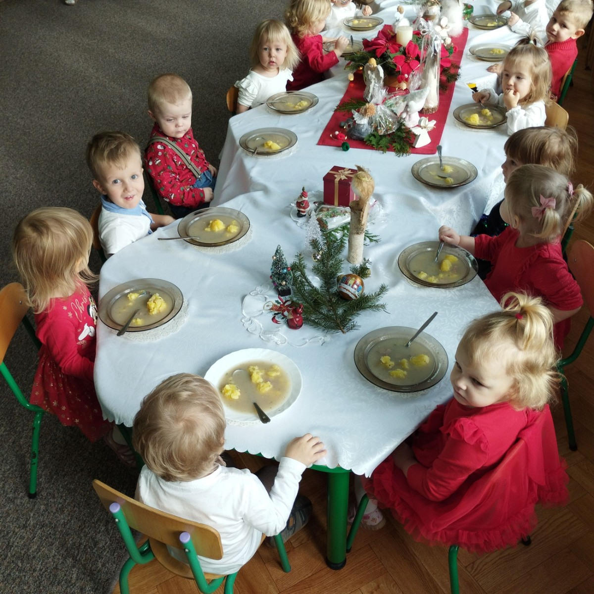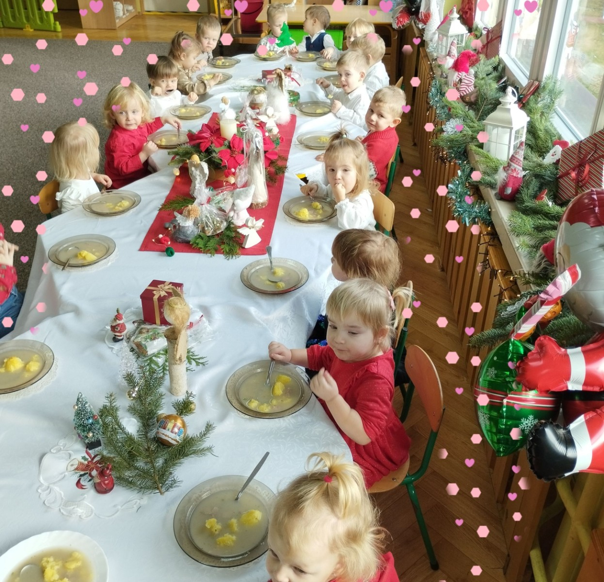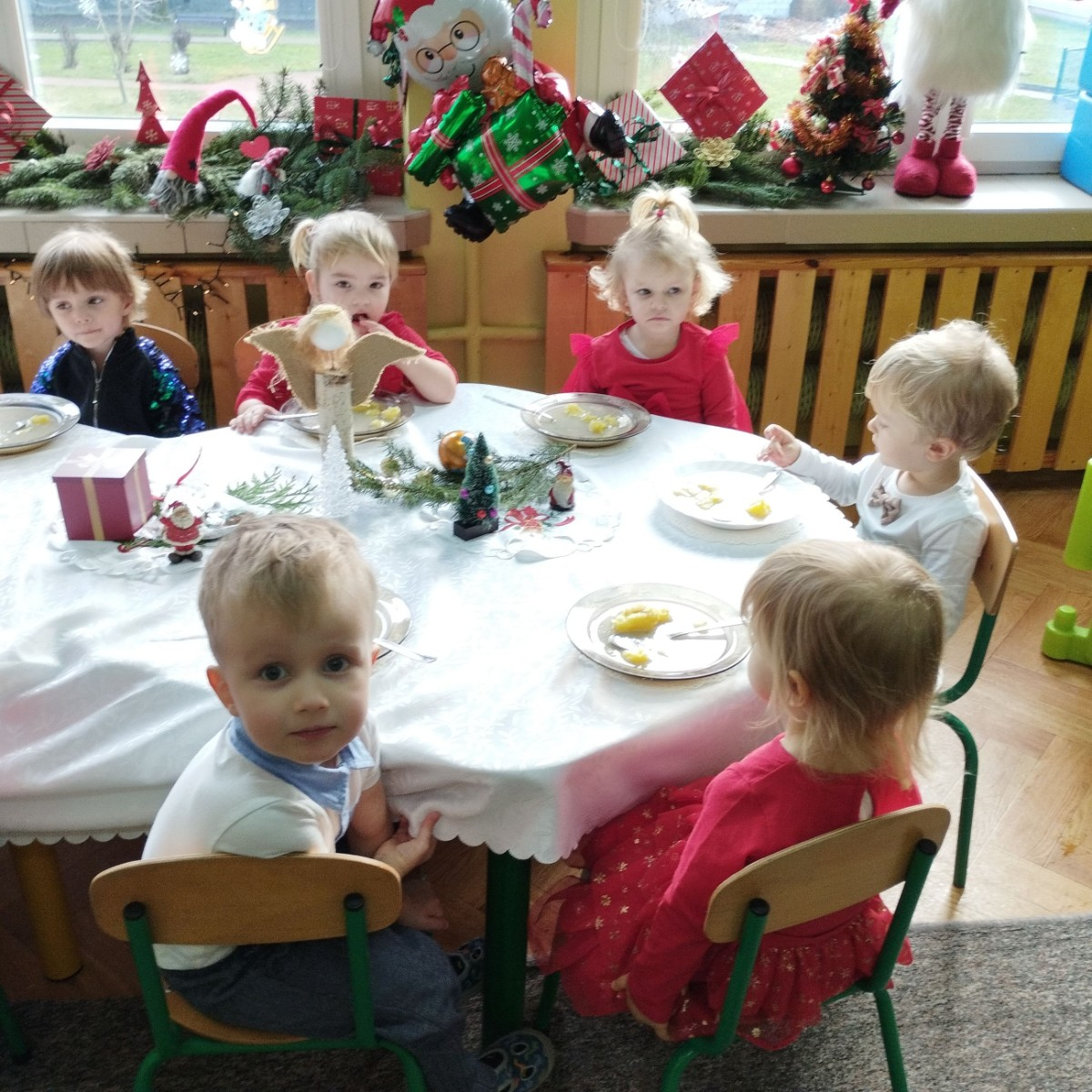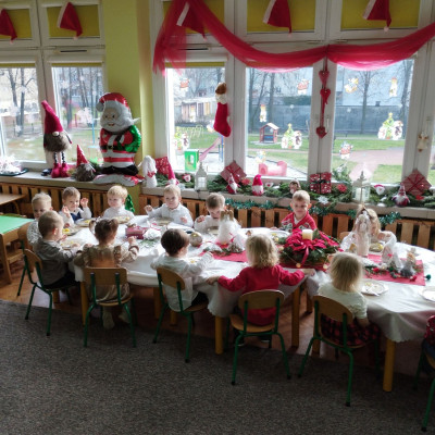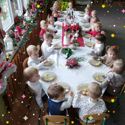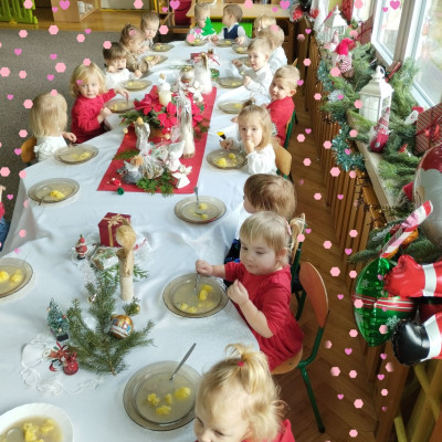 Zdjęcia przedstawiają dzieci podczas wspólnej Świątecznej Wigilii
