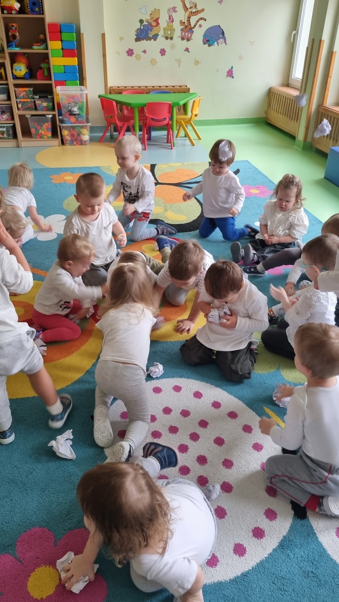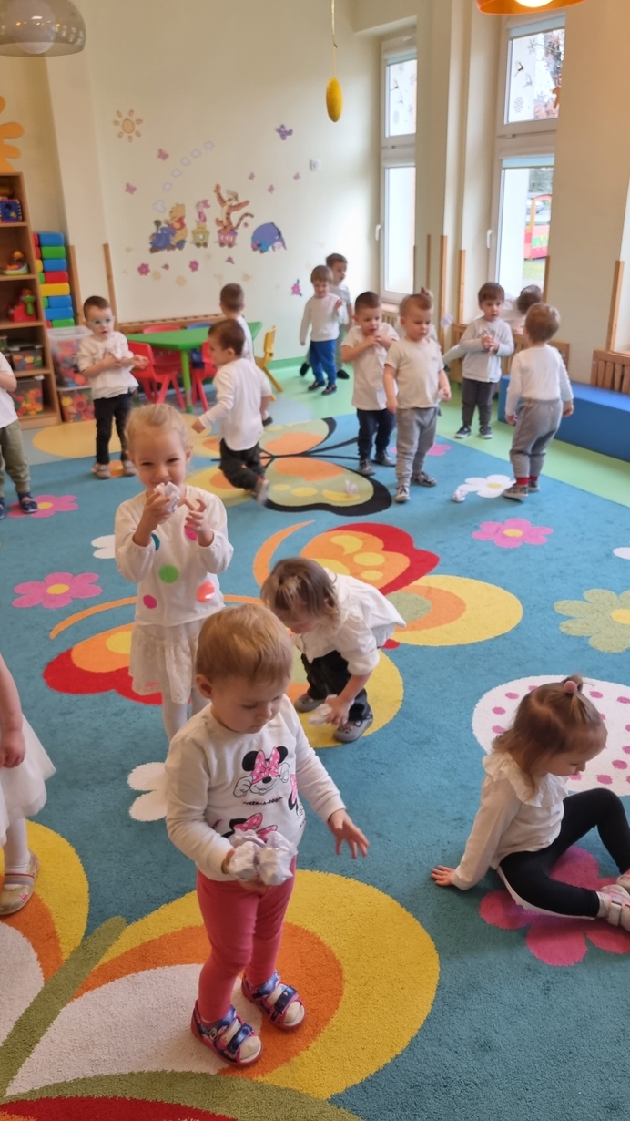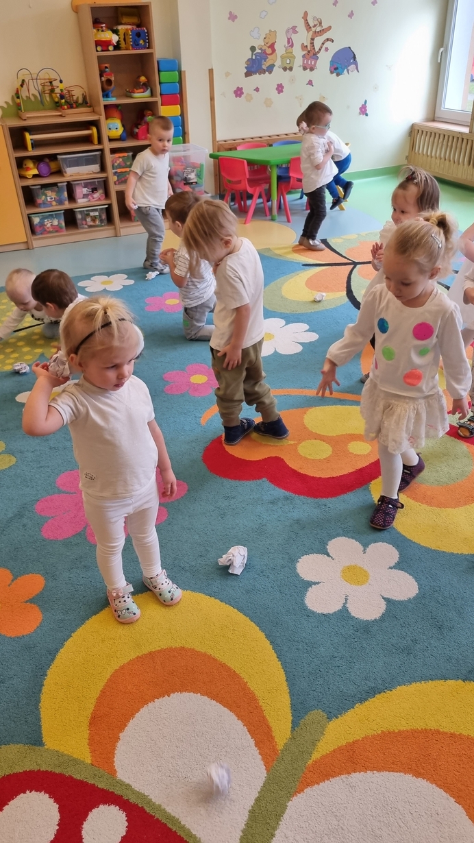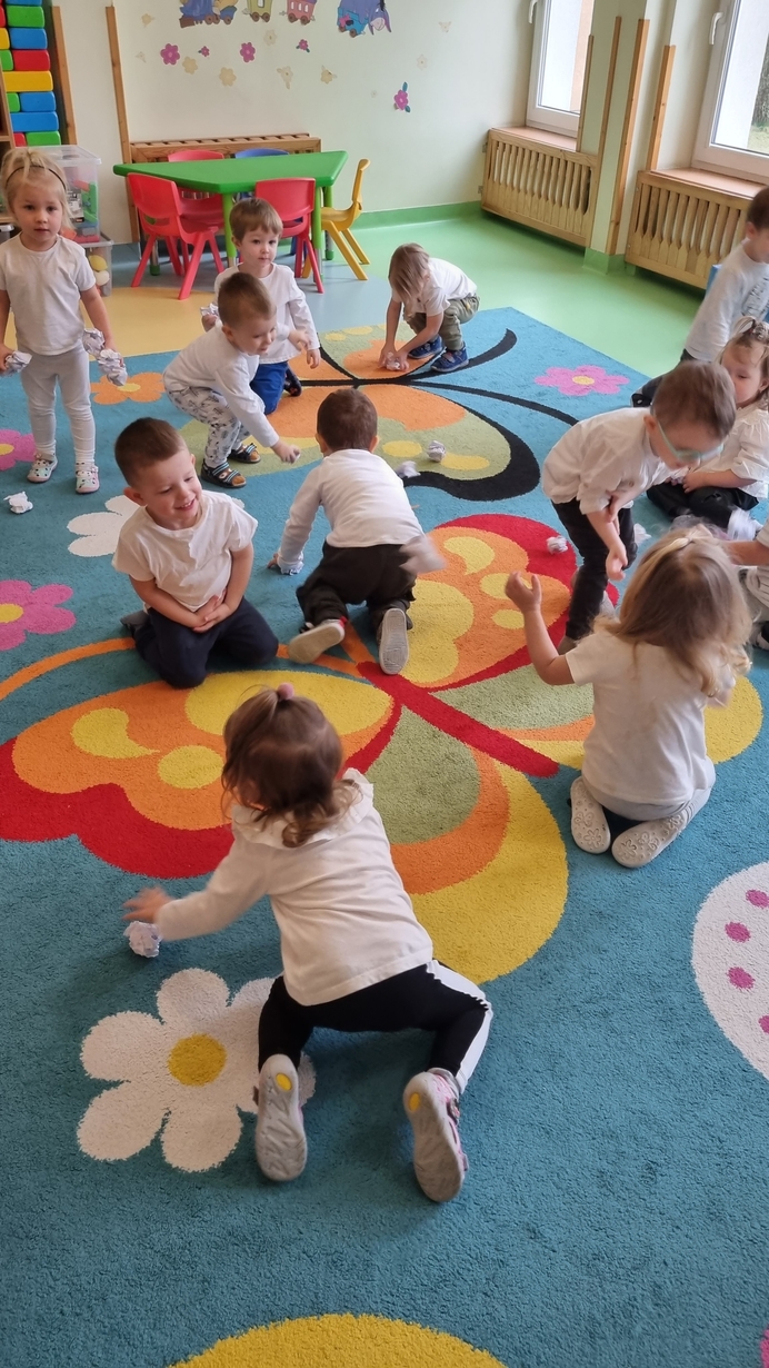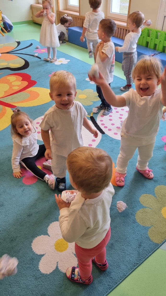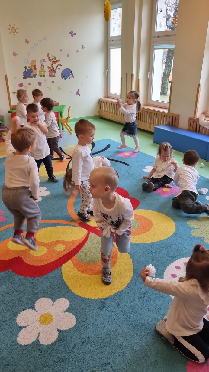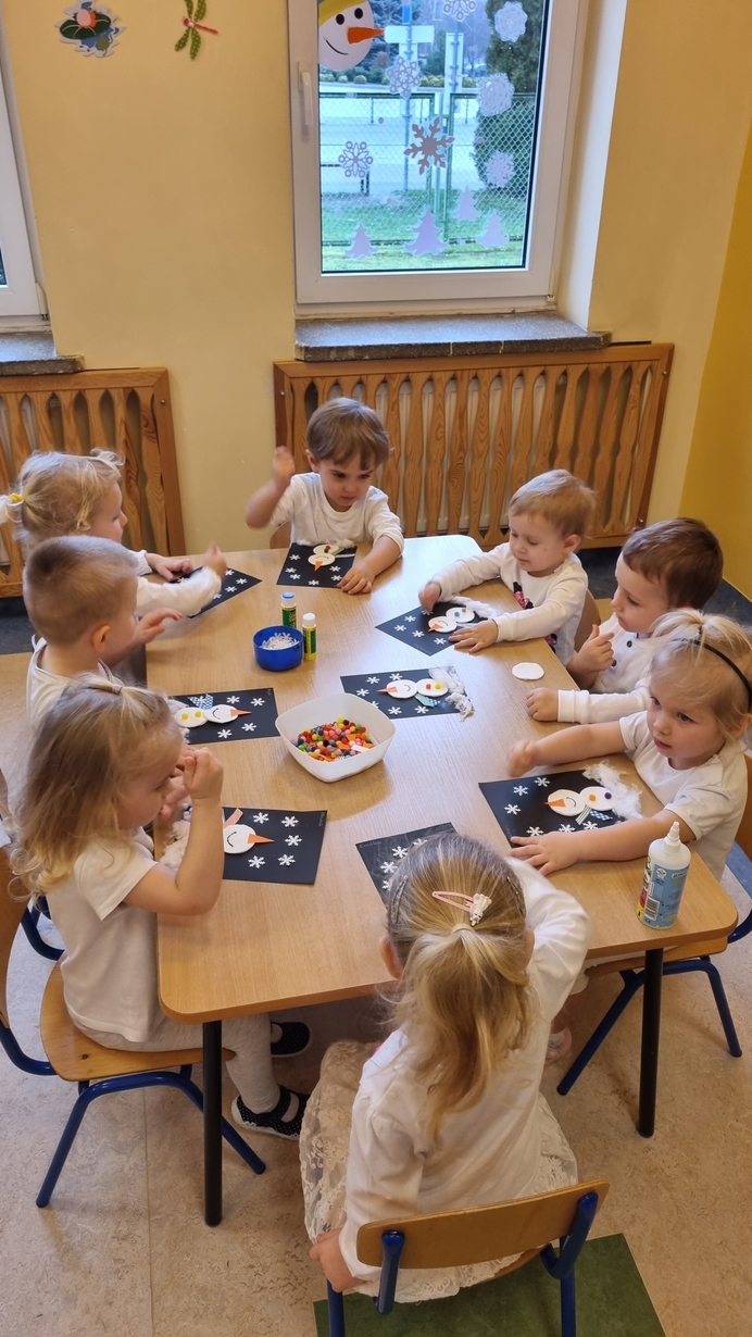 Dzisiaj w żłobku w grupie Pszczółek obchodziliśmy "Dzień Bałwana". Był to dzień wyjątkowy - bałwankowy. Dzieci ubrane były w bluzeczki koloru białego symbolizujące biały śnieg. Była to idealna okazja do zorganizowania dzieciom zabaw tematycznych takich jak: rzucanie papierowymi śnieżkami oraz układaliśmy dużego Bałwana. Dzieci także zaśpiewały wspólnie piosenkę o Bałwanie i nauczyły się wierszyka pt. "Ulepimy dziś Bałwana". Zwieńczeniem tego zimowego dnia była praca plastyczna - "Bałwanki nocą".