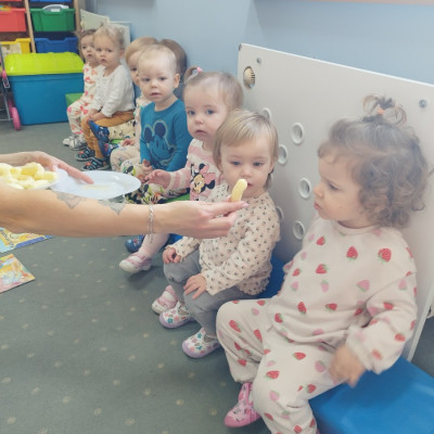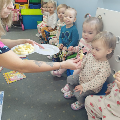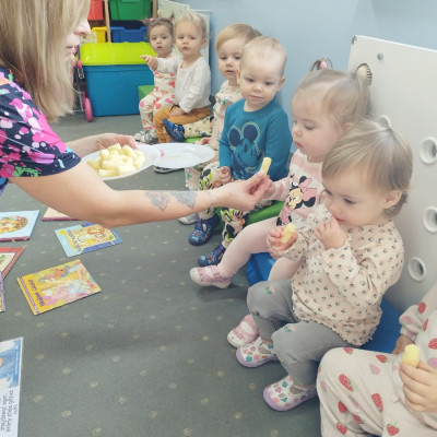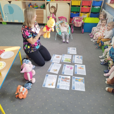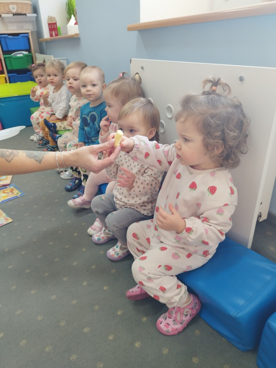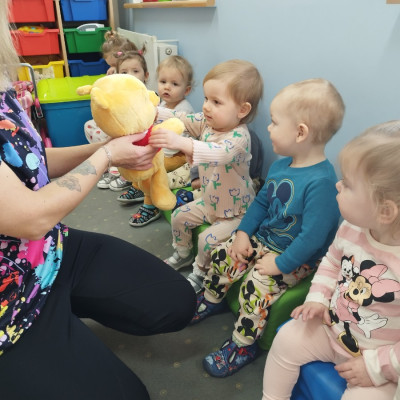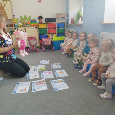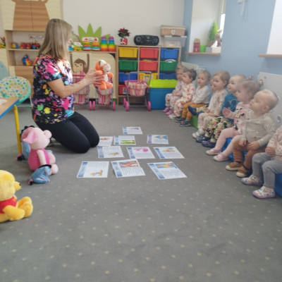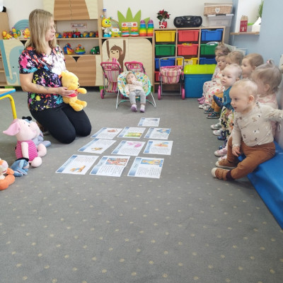 Zdjęcia przedstawiają zajęcia dzieci w żłobku