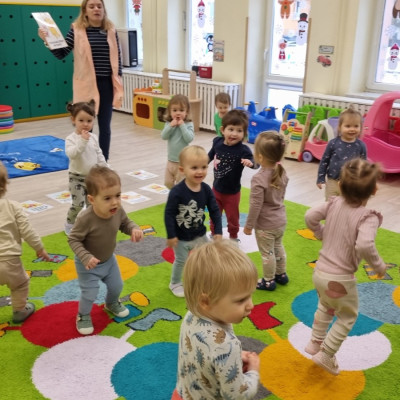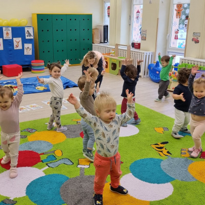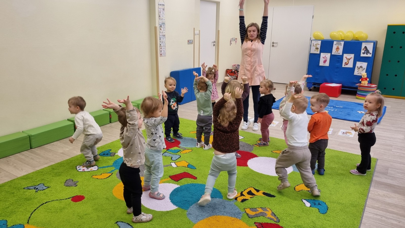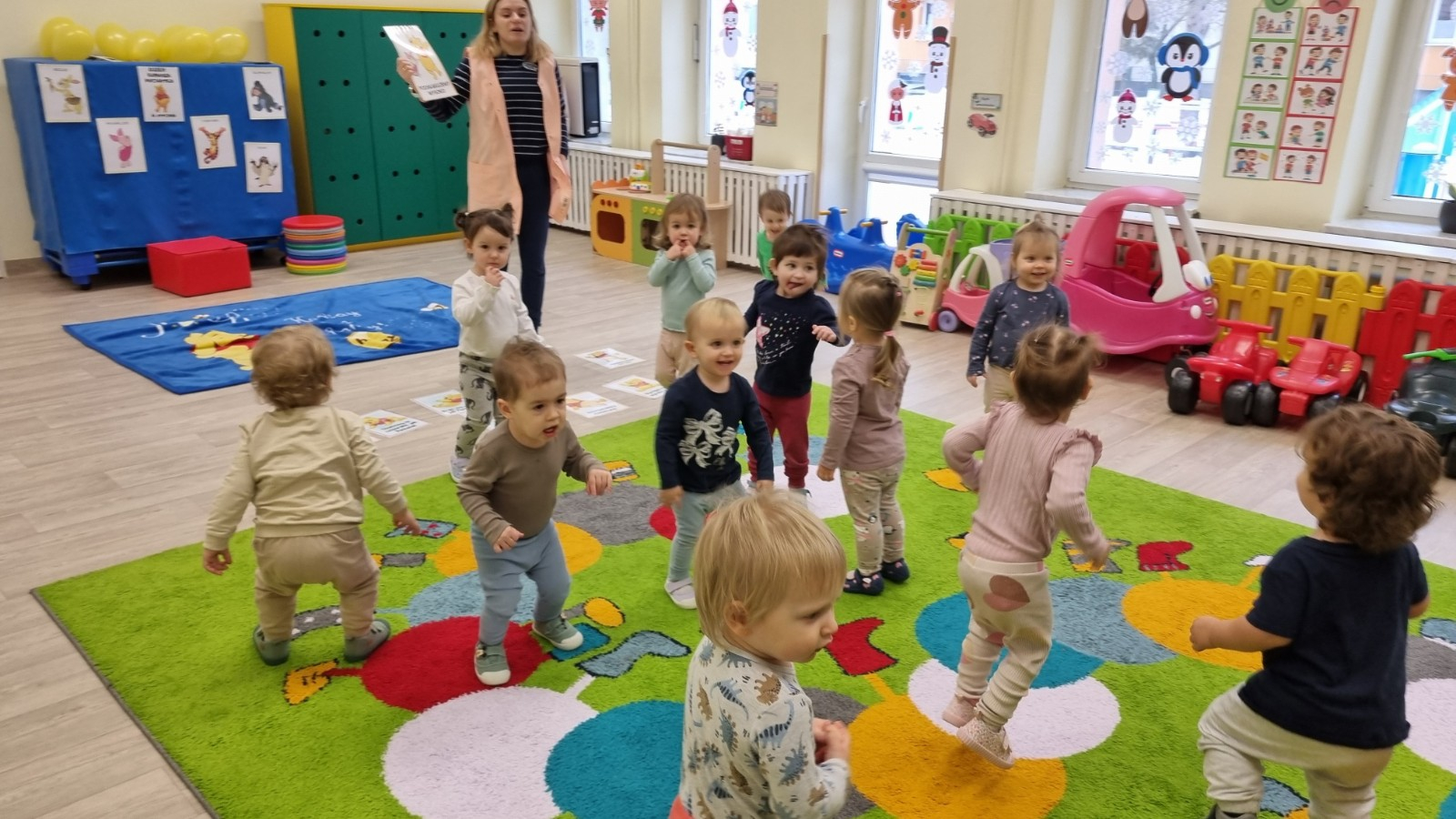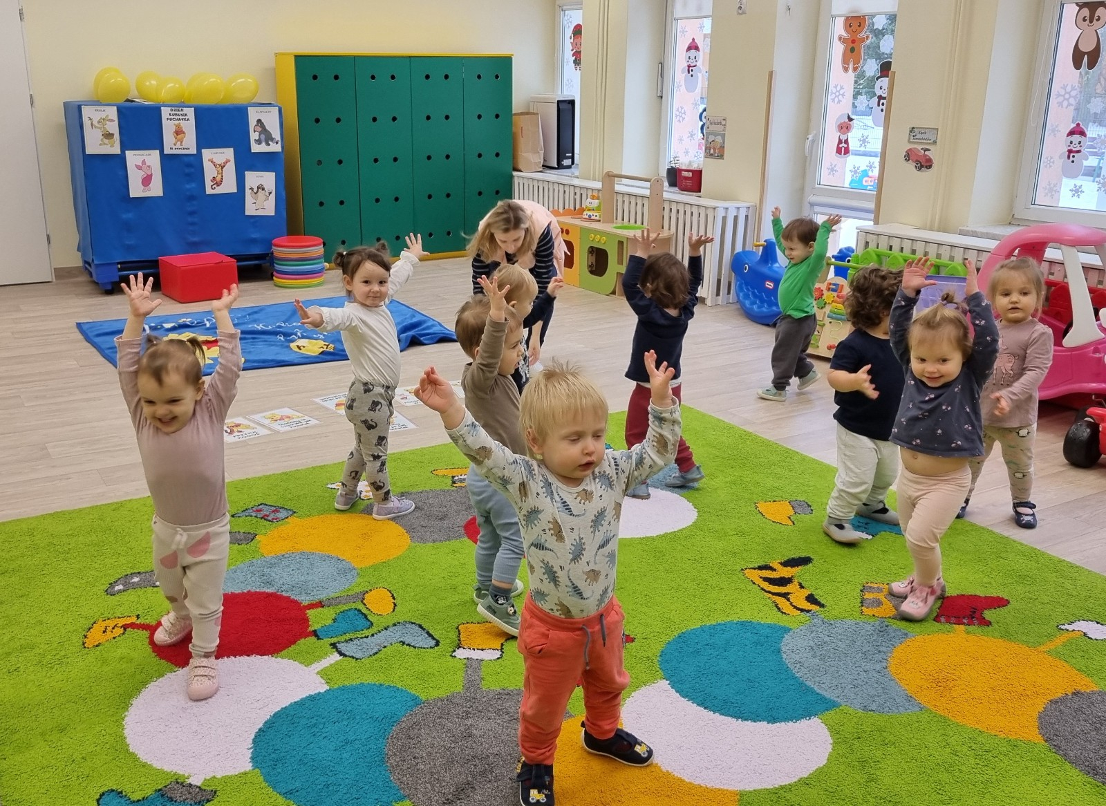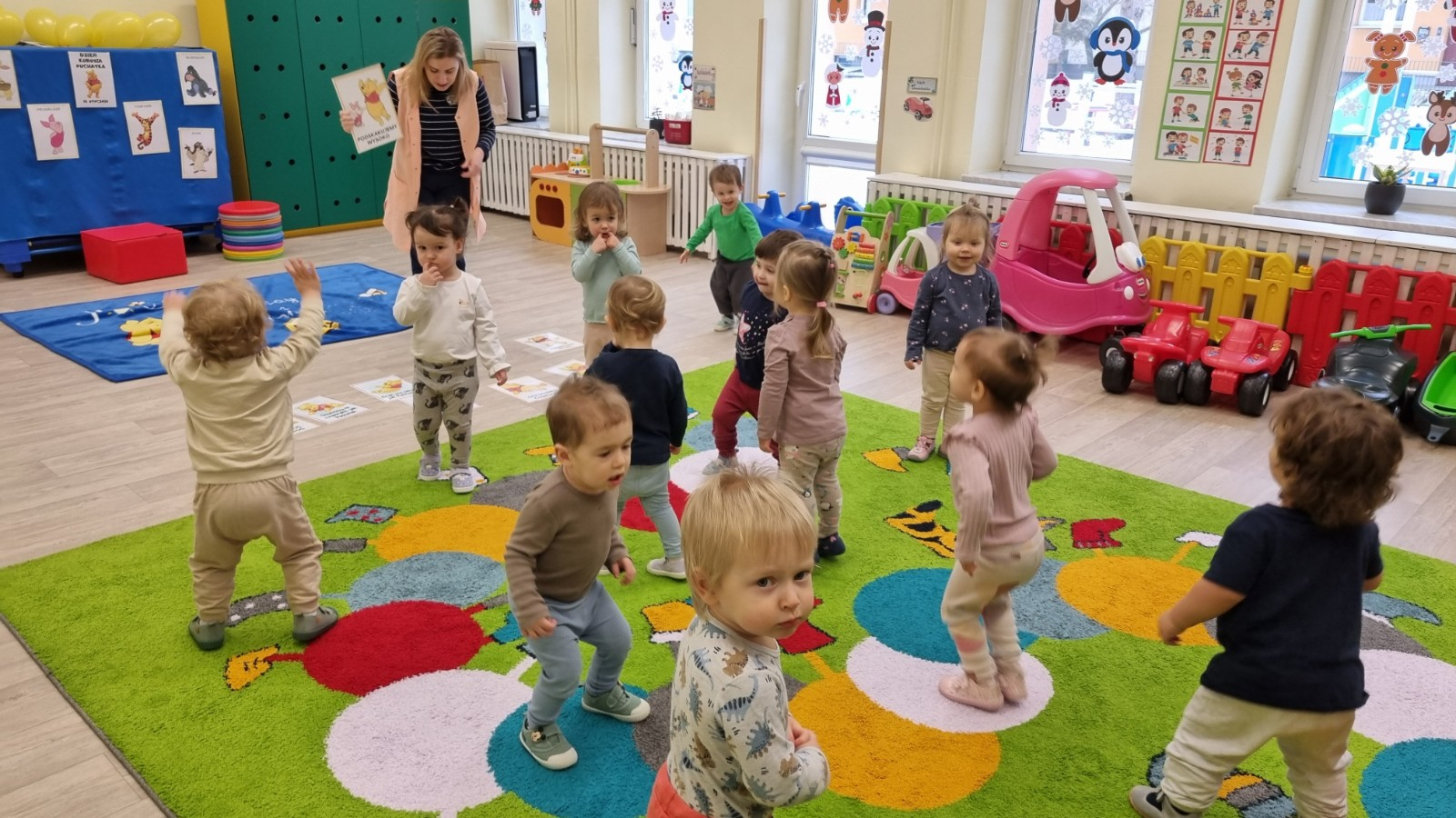 Zdjecia przedstawiają dzieci obchodzące dzień Kubusia Puchatka