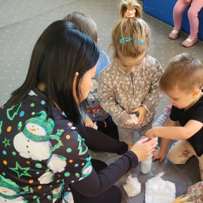 Zdjęcia przedstawiają dzieci podczas zabaw z bałwanem.-0BCE-4A64-B537-65596CB8E7DA