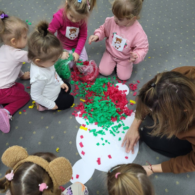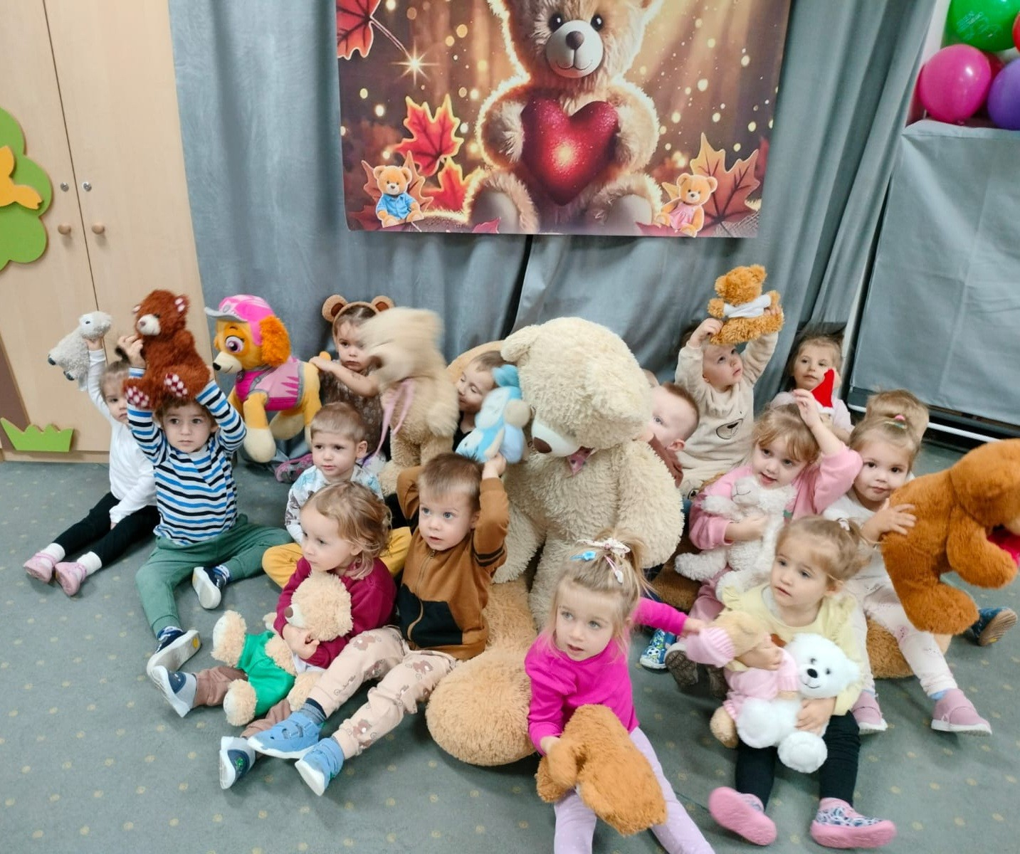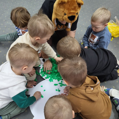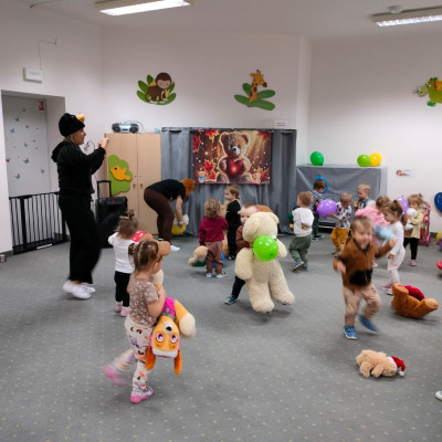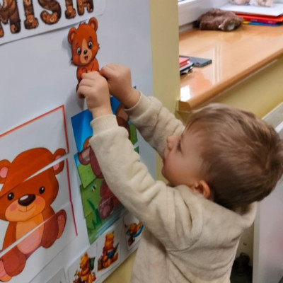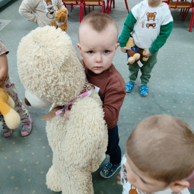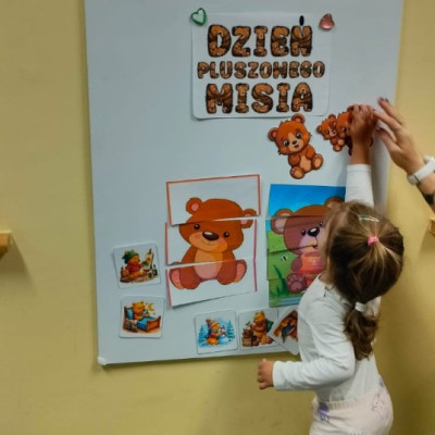 DZIEŃ PLUSZOWEGO MISIA" to radosne święto,podczas którego maluchy przynoszą swoje ulubione misie. Dzieci brały udział w zabawach ruchowych i muzycznych, układały puzzle oraz śpiewały piosenkę o misiu.