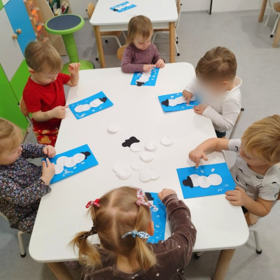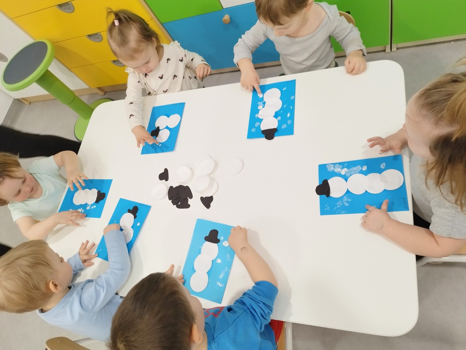 Tygryski wykonały zimową pracę plastyczną - bałwanek.