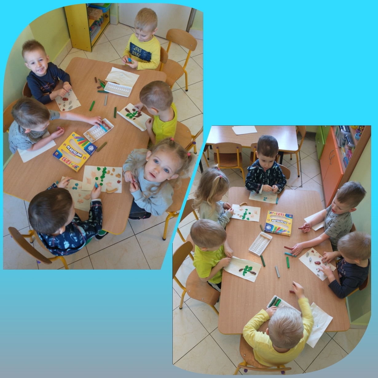 Mali artyści tworzyli obrazki przestrzenne łącząc kartkę papieru z plasteliną.