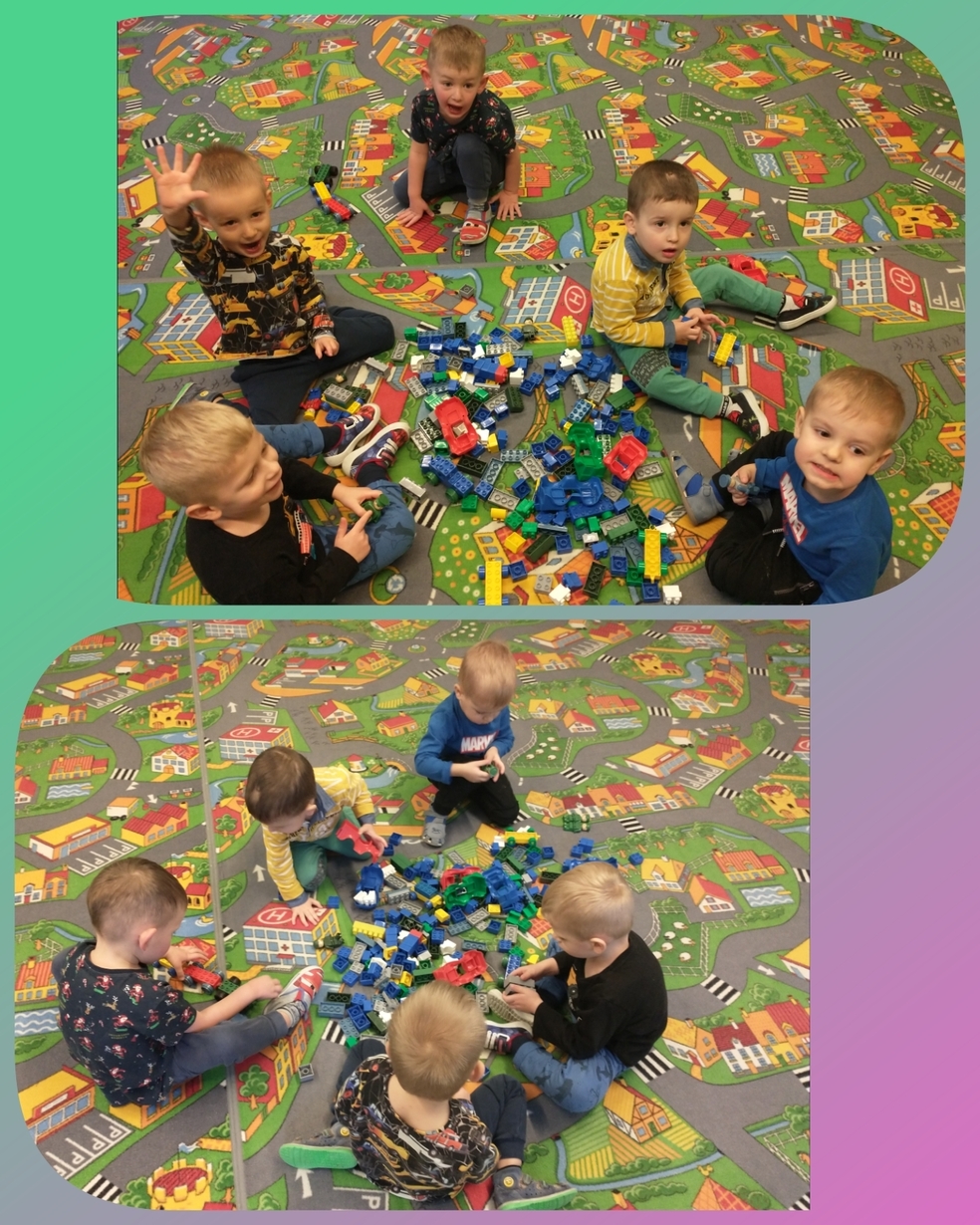 Dzięki wyobraźni młodych konstruktorów powstawały różne budowle tworzone z klocków.