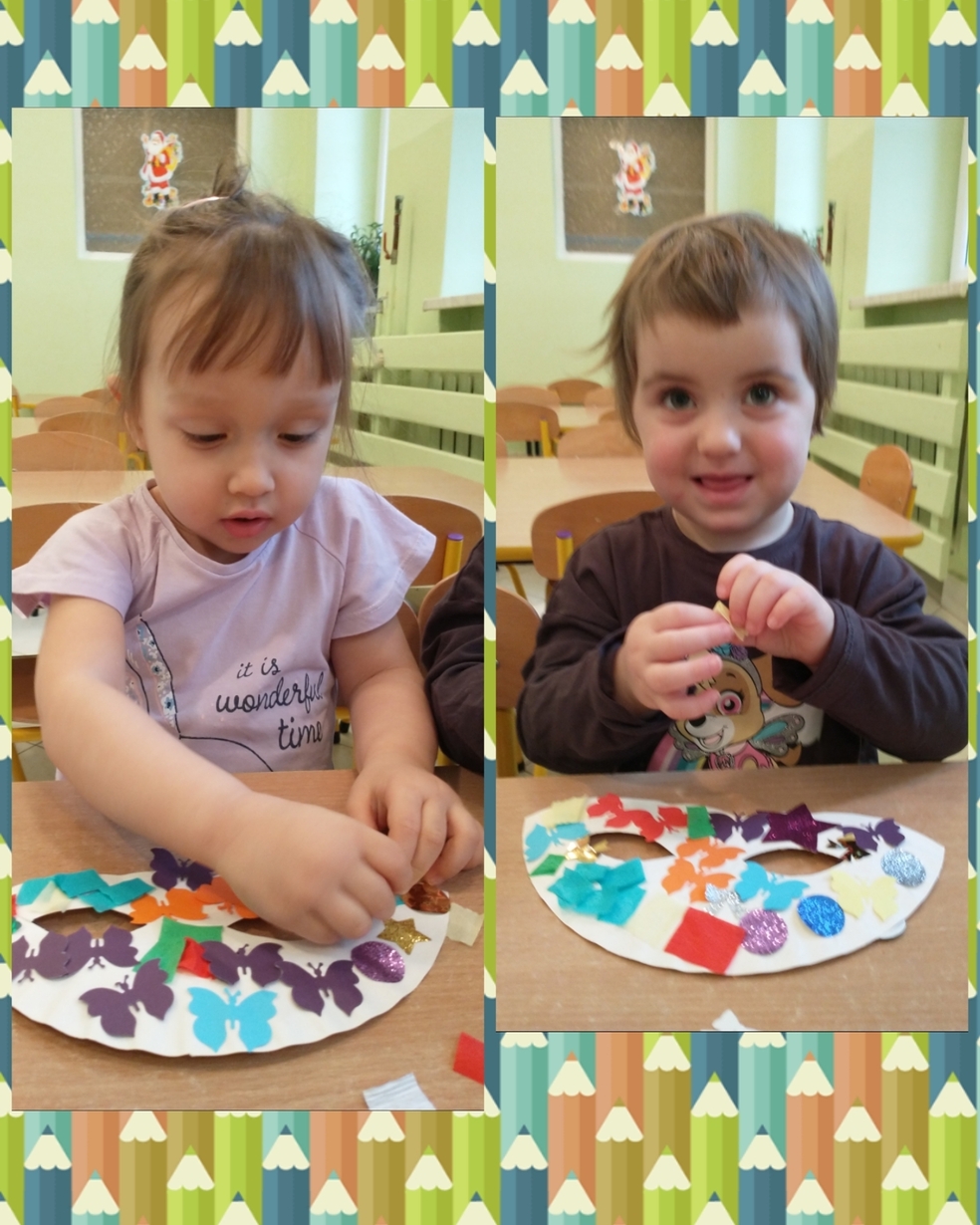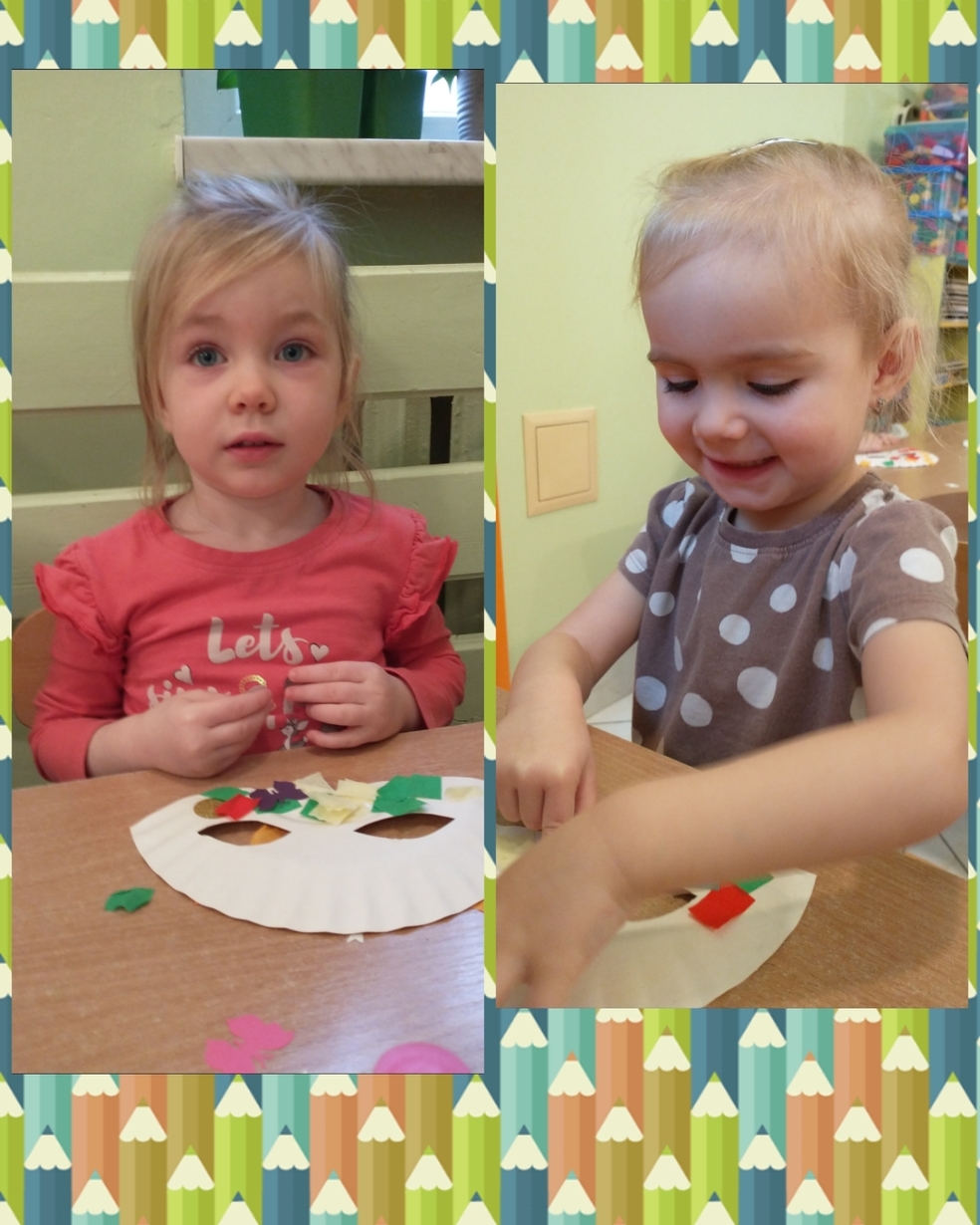 Do dyspozycji miały kolorową bibułę oraz papierowe kształty (błyszczące kółeczka, gwiazdki, kokardki oraz motylki).