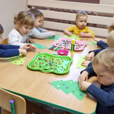 Zdjecia przedstawiają dzieci wykonujące prace plastyczne.