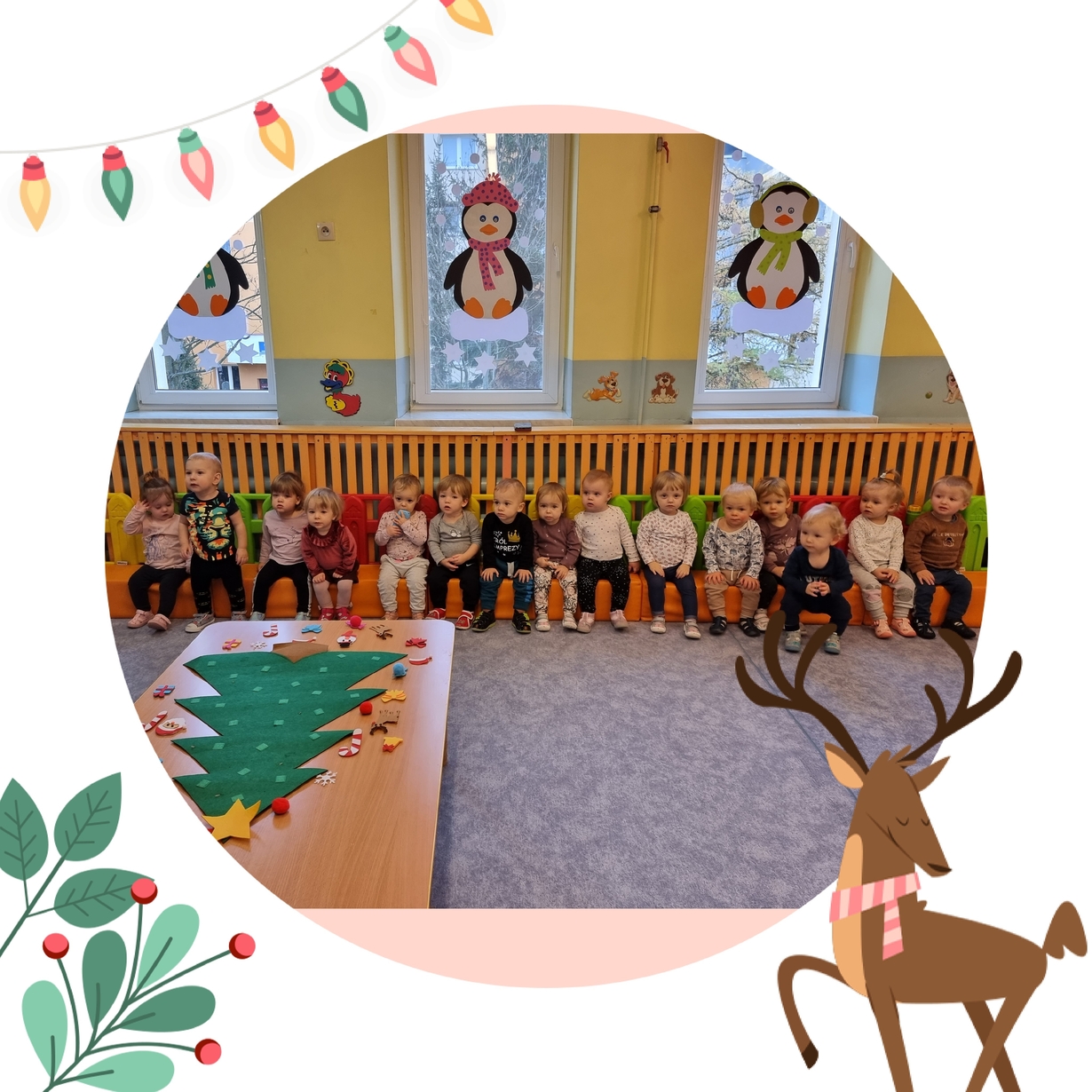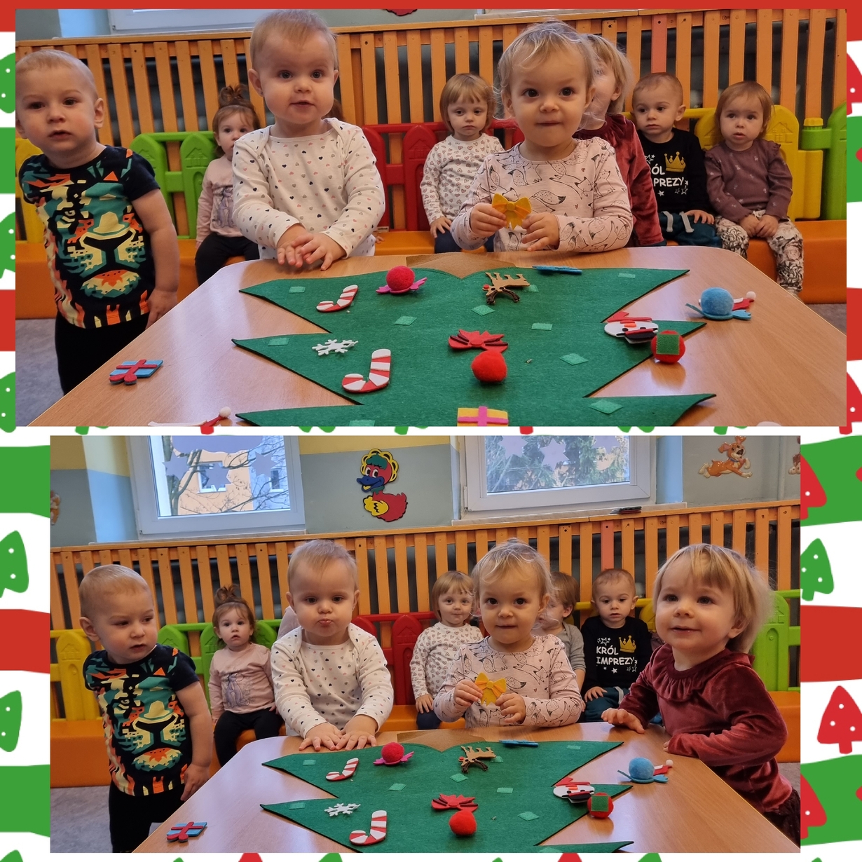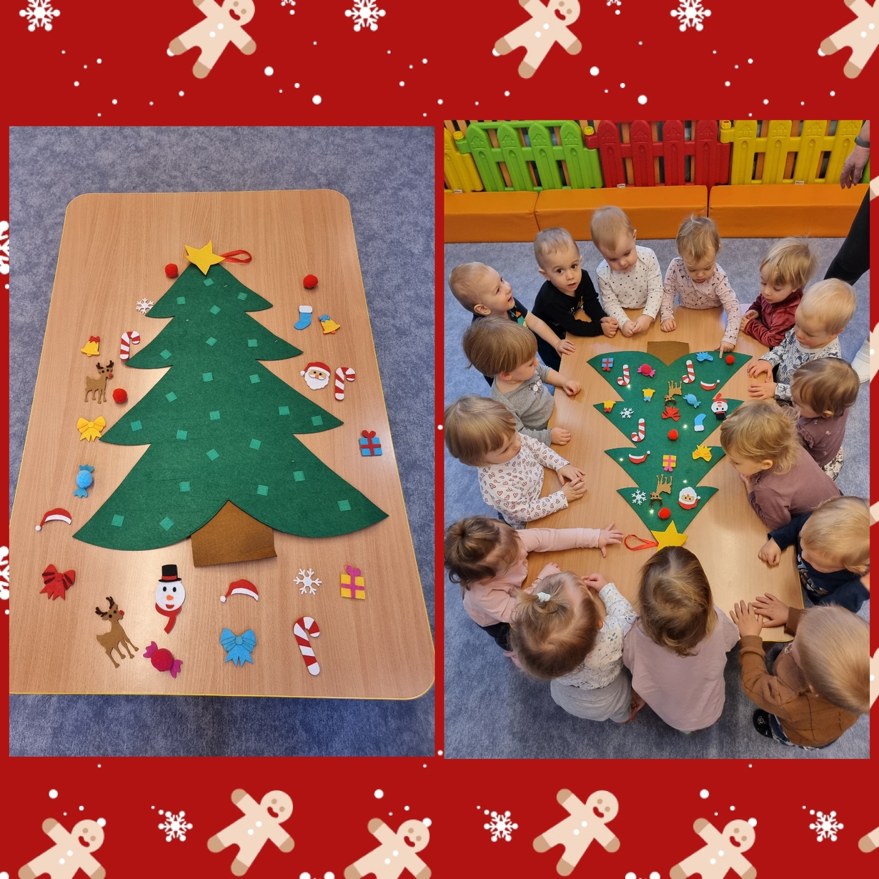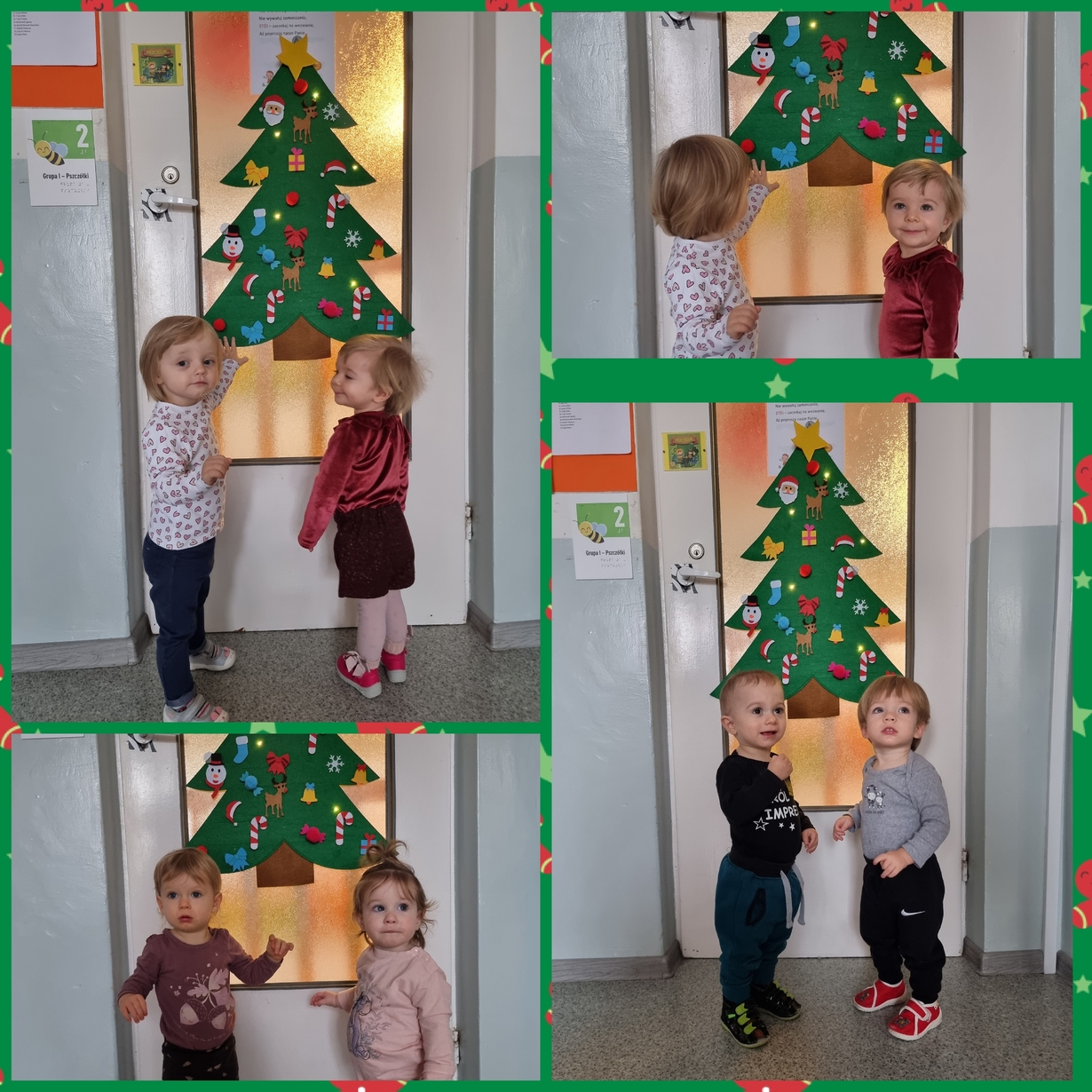 Dziś Pszczółki z wielkim zapałem przystąpiły do dekorowania dużej filcowej choinki.