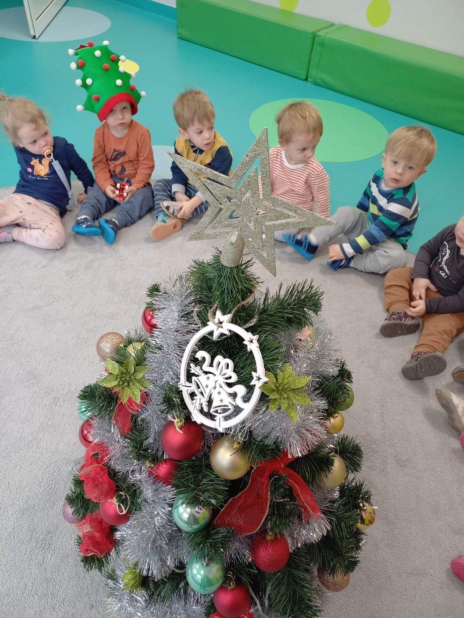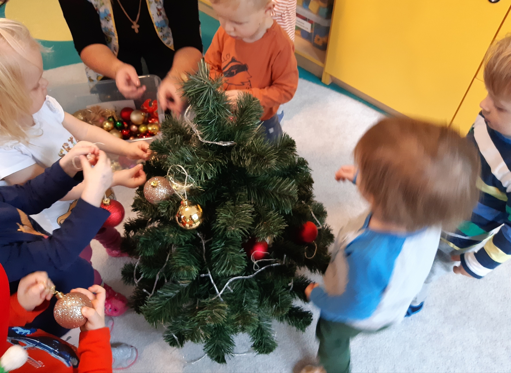 Dziś w ramach zajęć nasze Żabki z pomocą pań opiekunek ozdabiały świąteczne drzewko w kolorowe bombki,  łańcuchy oraz lampki a  po zakończonych zajęciach śpiewały piosenkę której uczyły się od kilku dni,, Choinko piękna jak las".