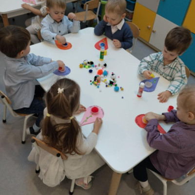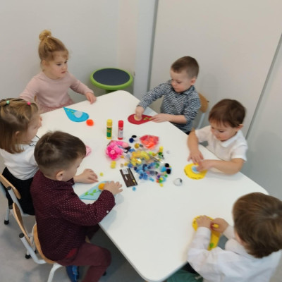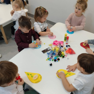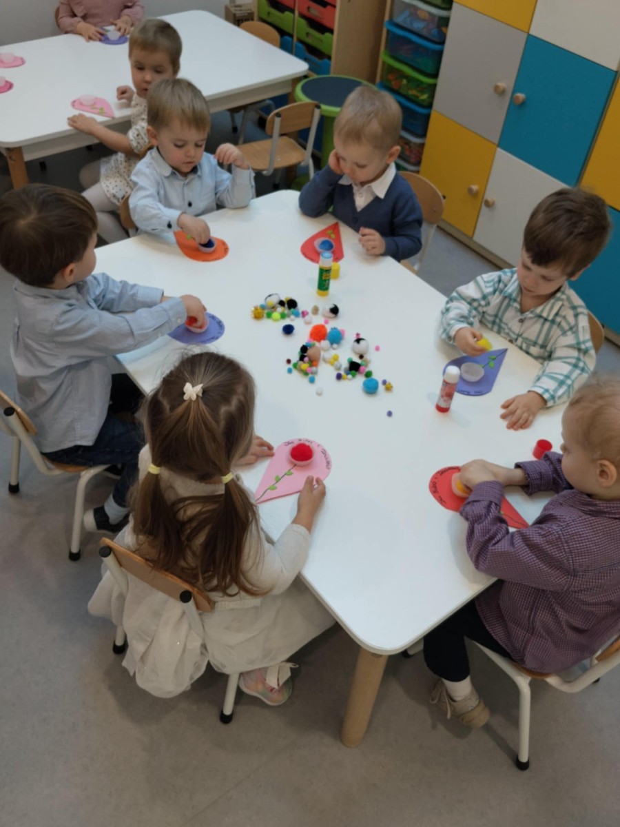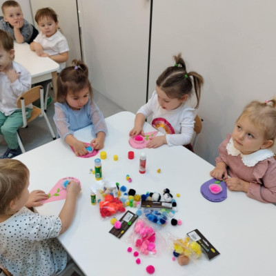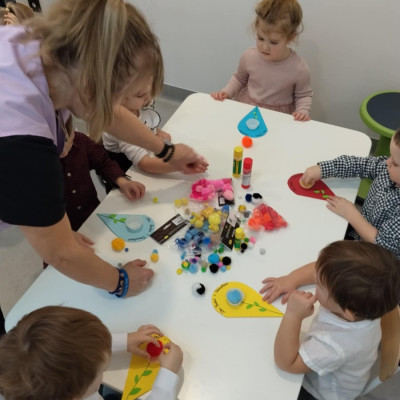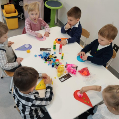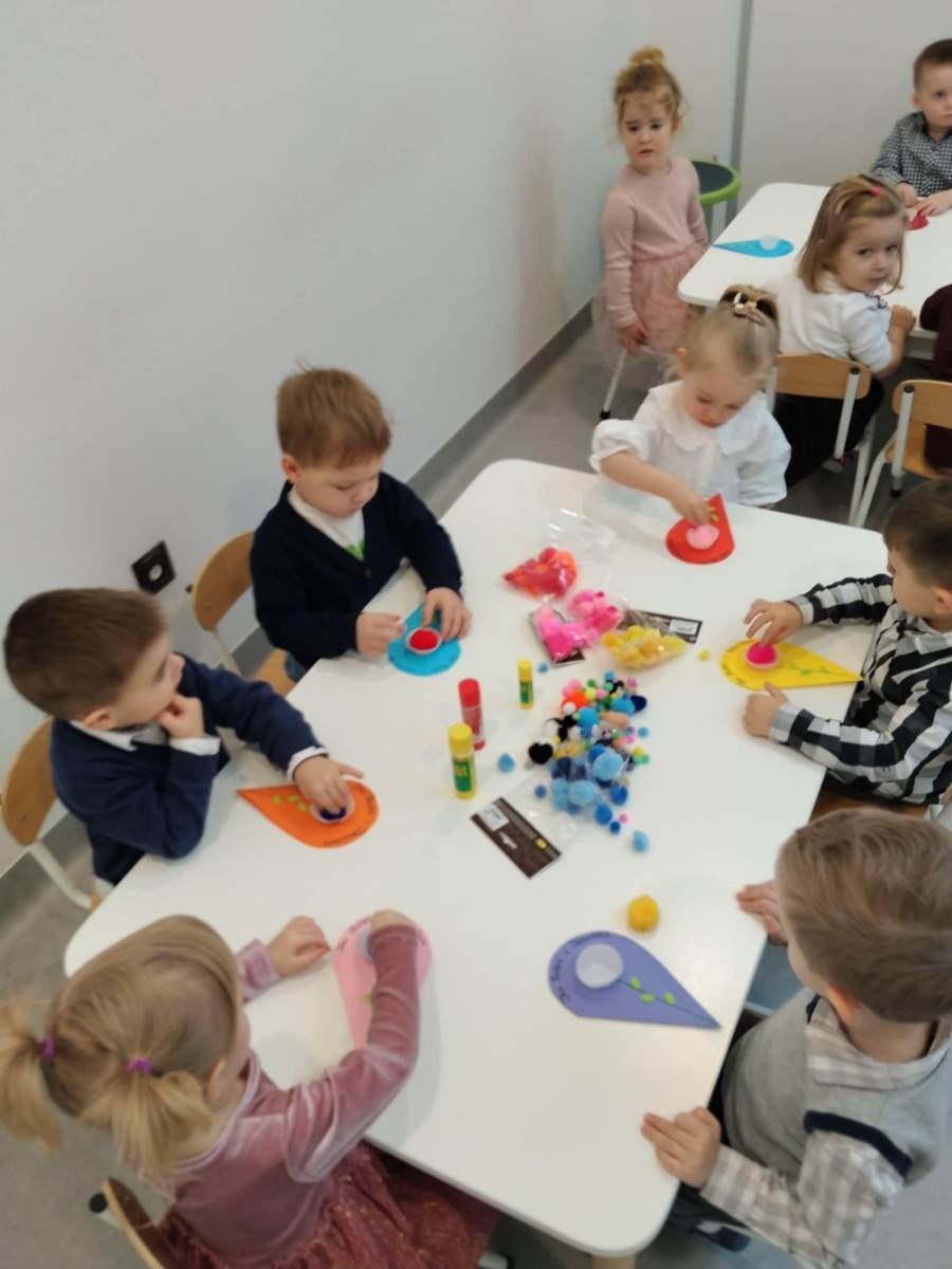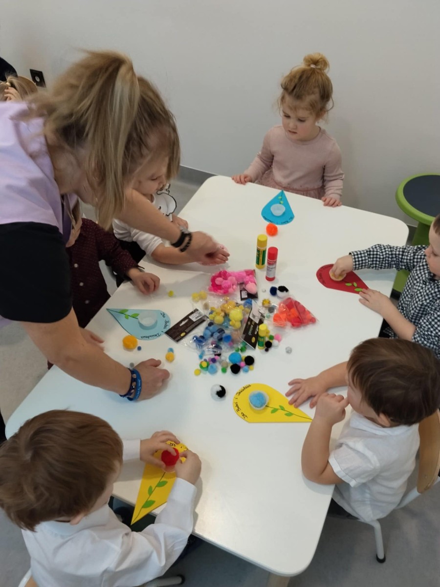Zdjęcia przedstawiają dzieci podczas wykonywania laurki