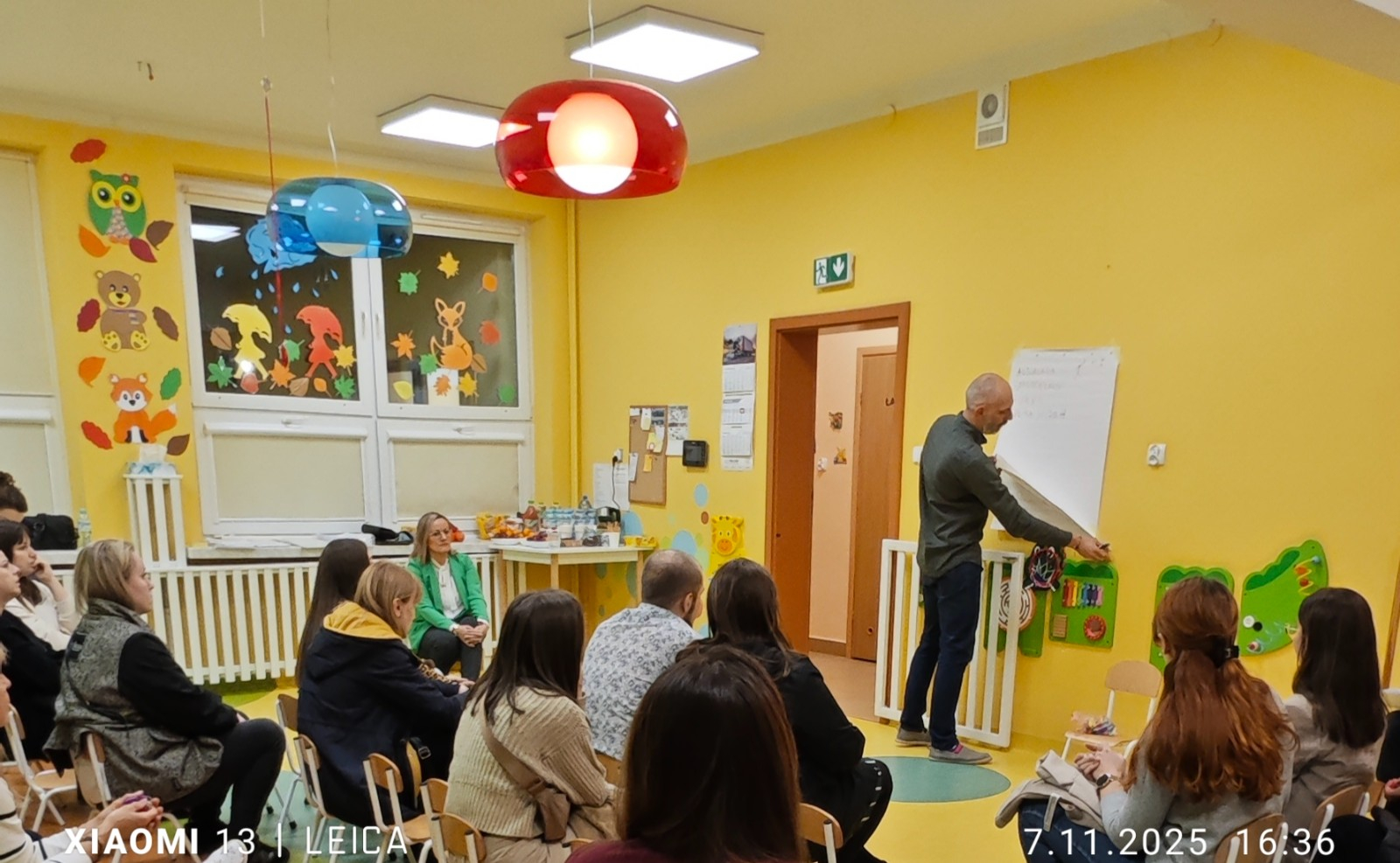 07.11.2025 r. pracownicy Filli Żłobka nr 3 uczestniczyli w spotkaniu szkoleniowym, ze standardów opieki nad dzieckiem do lat 3, które wchodzą w życie 01.01.2026 r. Szkolenie prowadził Pan Przemysław Chruściel psycholog/terapeuta z fundacji Profil z Rzeszowa. W spotkaniu również uczestniczyła Dyrektor Zespołu Żłobków Miejskich, Pani Monika Kośla. Następnie odbyło się spotkanie z rodzicami dzieci uczęszczających do naszej Filii ,którym również zostały przybliżone standardy wchodzące w życie, Pan Przemysław opowiedział o tym jak wyglądały Mentoringi, które przeprowadzał w naszej placówce, a rodzice mieli okazję do zadania pytań. Dziękujemy wszystkim rodzicom, którzy zechcieli uczestniczyć w spotkaniu.