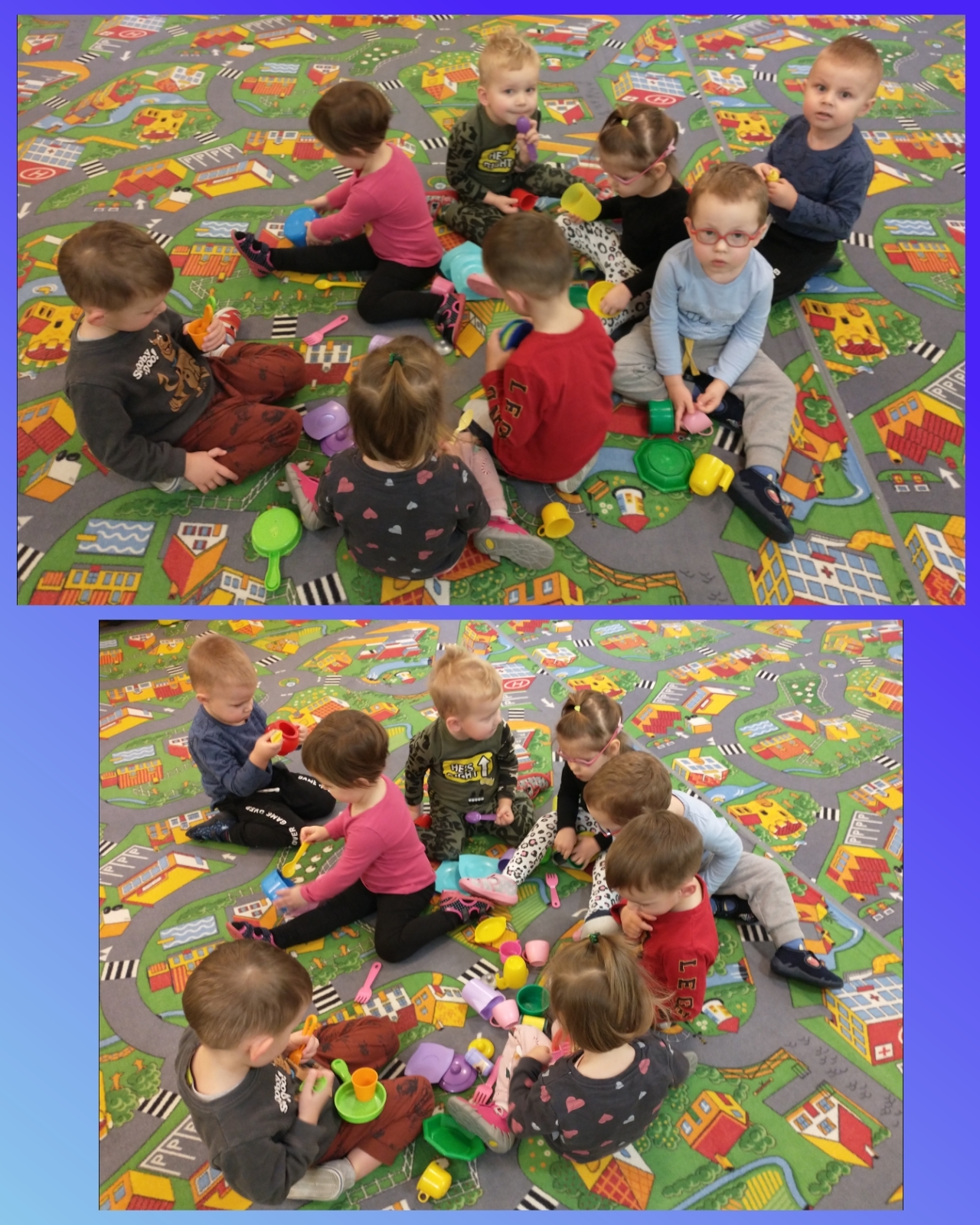 Doskonaliliśmy jazdę w pociągu oraz poznawaliśmy różne rodzaje wyposażenia kuchennego oraz właściwego trzymania nożyka (plastikowego) i krojenia owoców i warzyw (wykonanych z tworzywa).