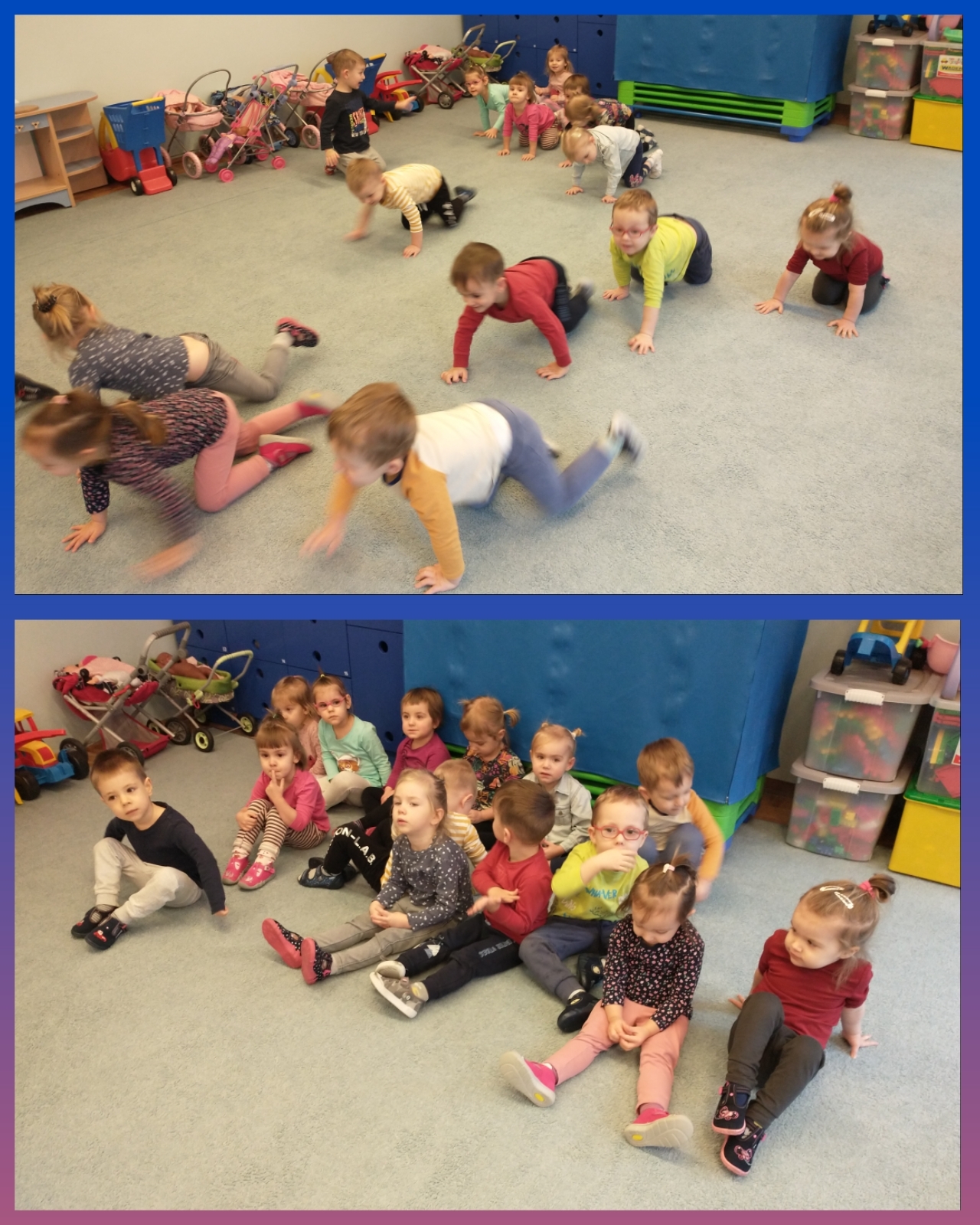 Zabawa w zajączki ćwiczyła koordynację i naprzemienność ruchową.