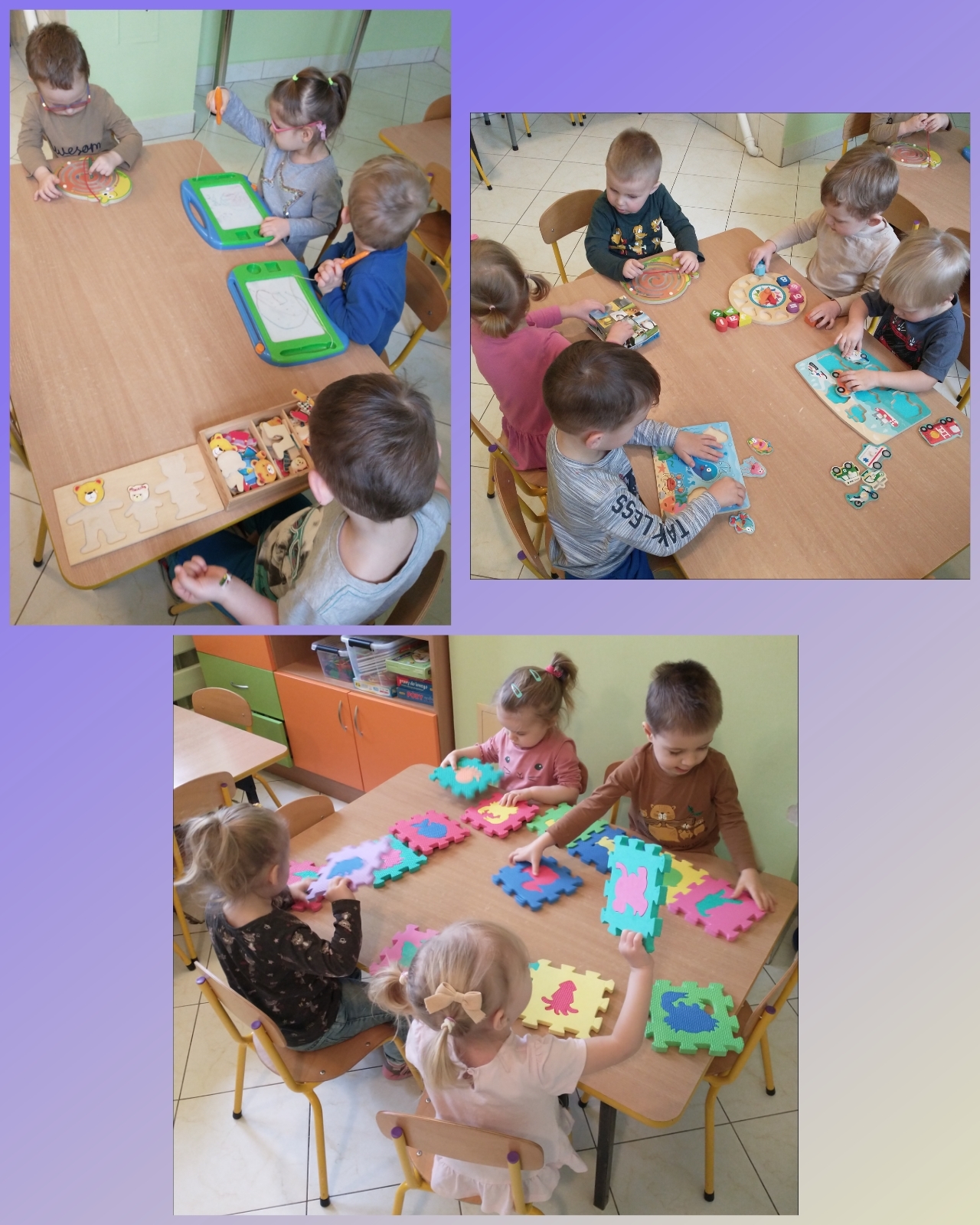 Nasi podopieczni ćwiczyli również koordynację ręka-oko, dopasowując otrzymane kółeczka do obrazka.