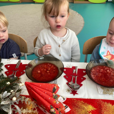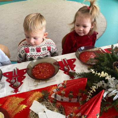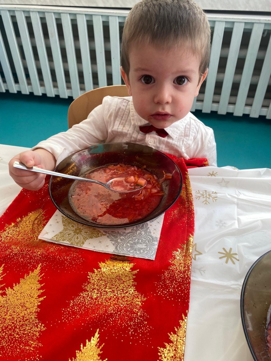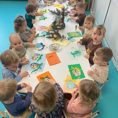 Święta Bożego Narodzenia to magiczny czas. Dla wielu z nas jest to dzień niezwykle radosny ,spędzony w gronie najbliższych.W dniu 19.12.2025r. w grupie Żabek odbyła się Wigilia . Dzieci wspólnie śpiewały kolędy ,składały sobie życzenia oraz dzieliły się opłatkiem. Panowała radosna i świąteczna atmosfera.Spotkanie miało na celu kultywowanie tradycji Bożonarodzeniowych oraz integrację dzieci w grupie.