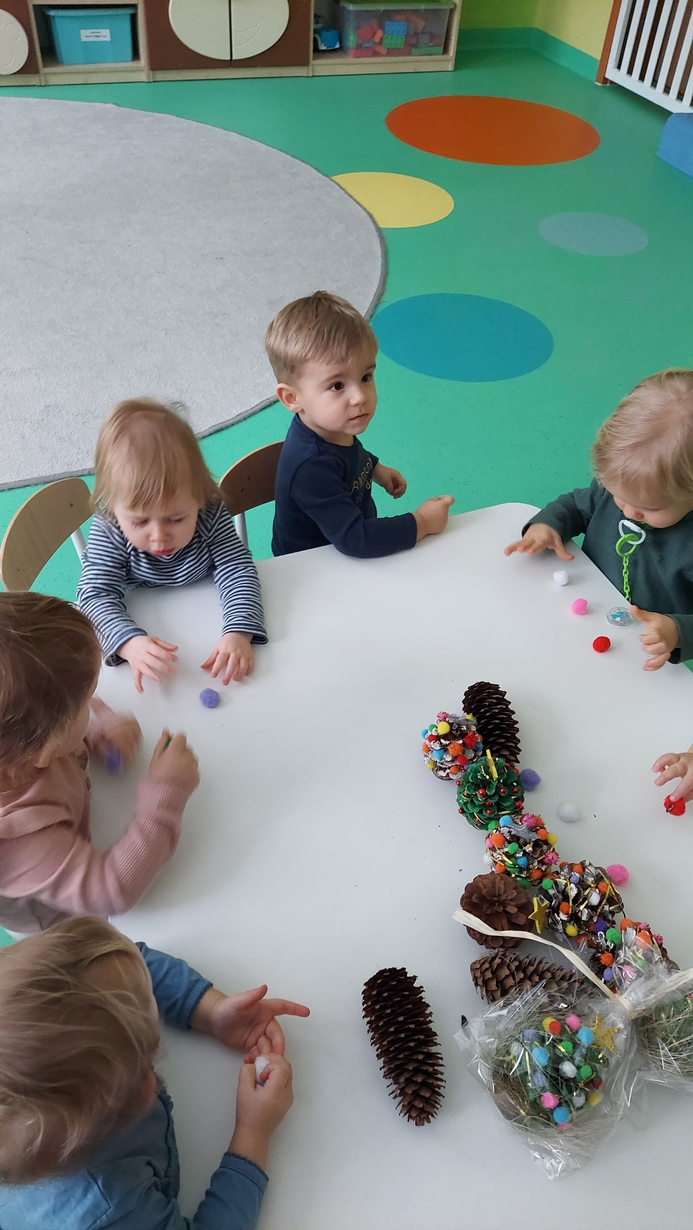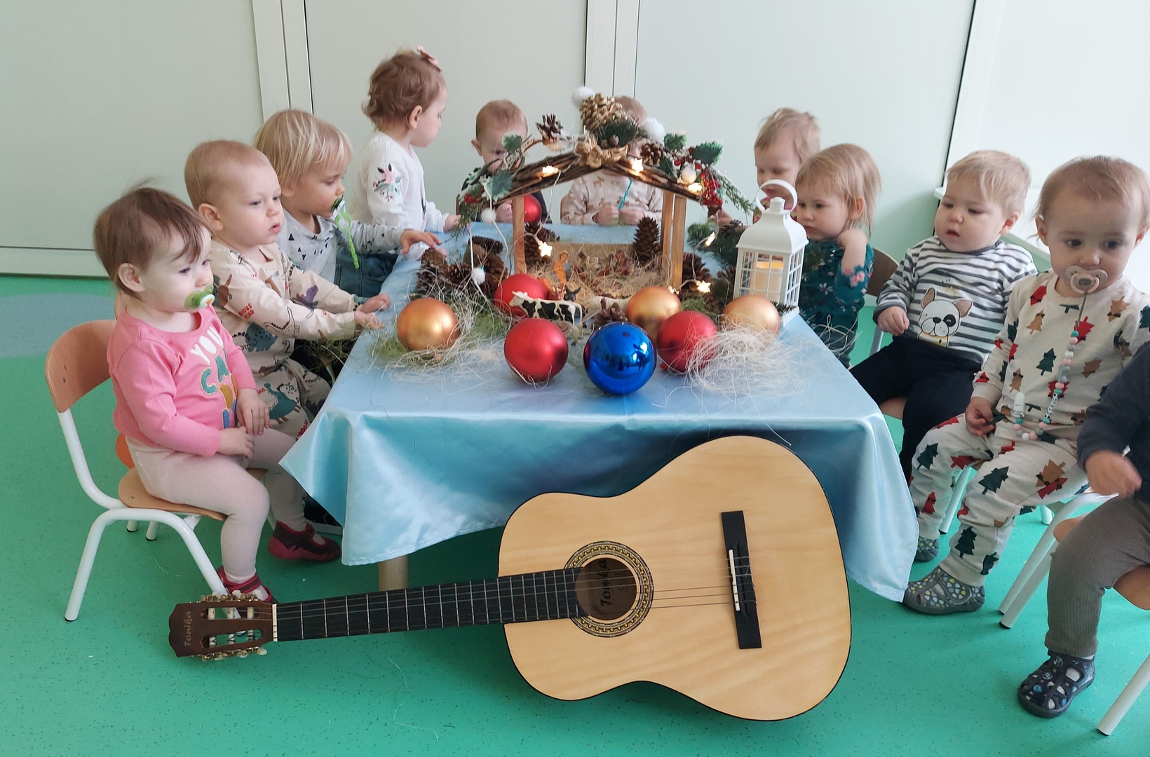 Dla wielu z nas jest to dzień niezwykle radosny, spędzony w gronie najbliższych. Także w  naszej  grupie , nastąpił wspaniały moment  Wigili. Wszyscy zgromadziliśmy się wokół stołu podziwiając małą szopkę pięknie przystrojoną, i przy dzwiękach gitary, bębenka i tamburyna razem śpiewaliśmy kolędy, świąteczne piosenki, a na koniec składaliśmy sobie  życzenia. Tego dnia dzieci również zabrały dla  swoich najbliższych mały prezent na  święta. Były to małe choineczki które,wcześniej  zrobiły wraz z paniami. Ten dzień  spędziliśmy pięknie utrwalając dzieciom znajomośc tradycji i zwyczajów świątecznych.