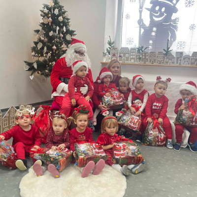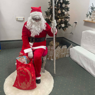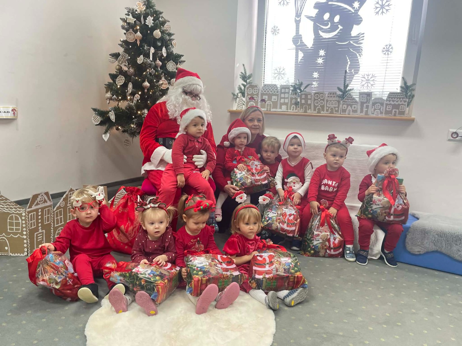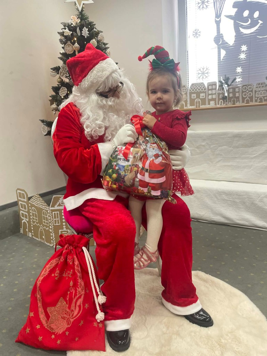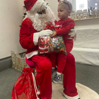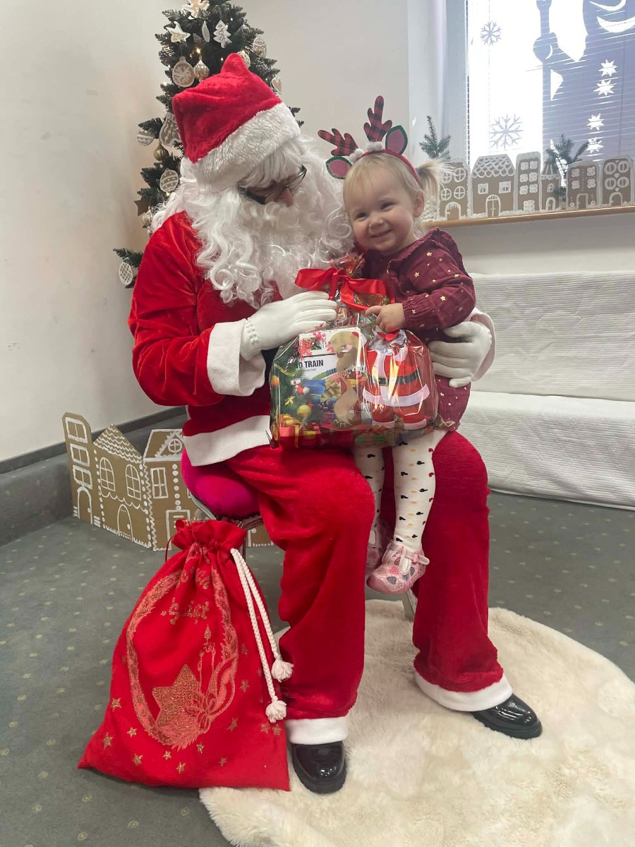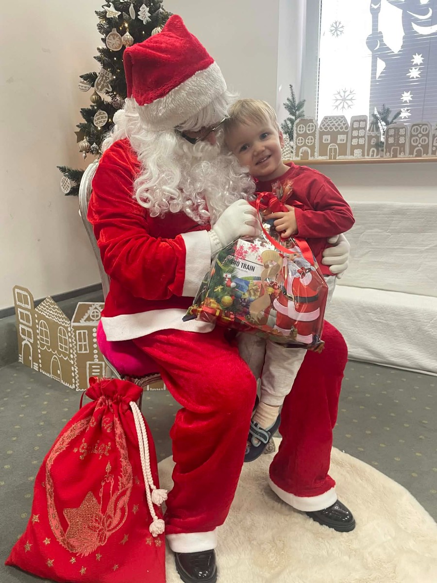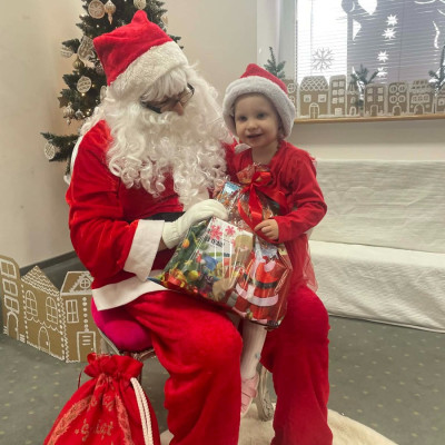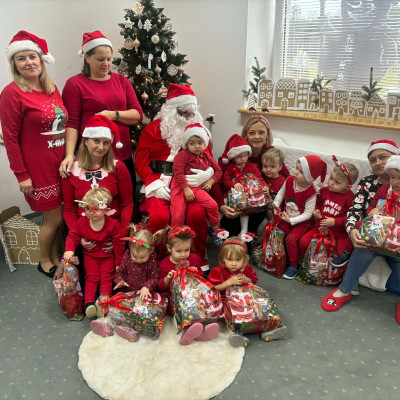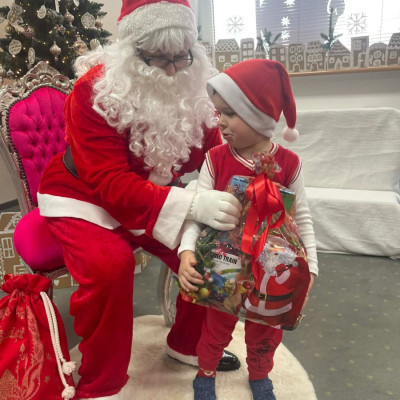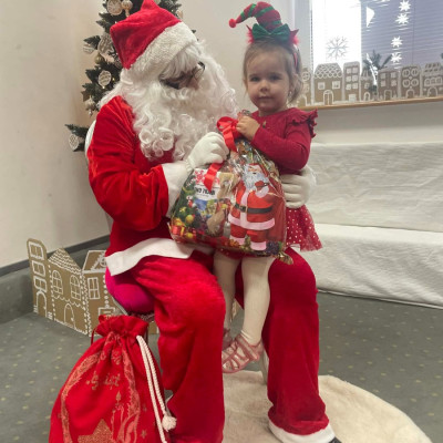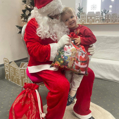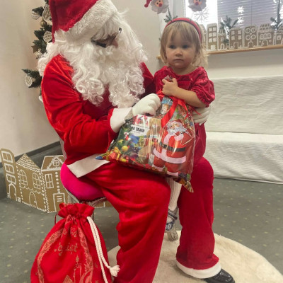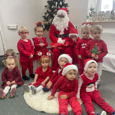 Zdjęcie przedstawia dzieci podczas wizyty Świętego Mikołaja