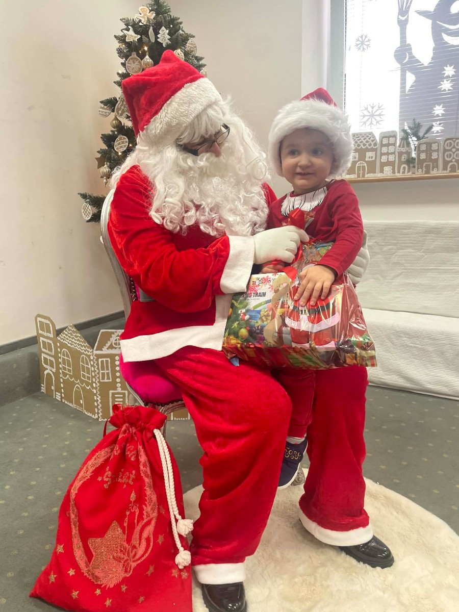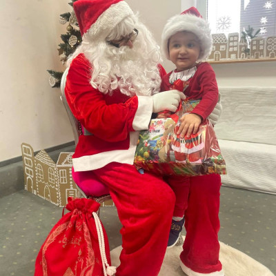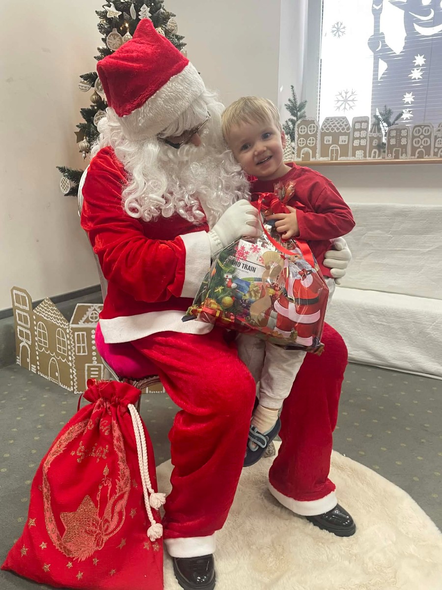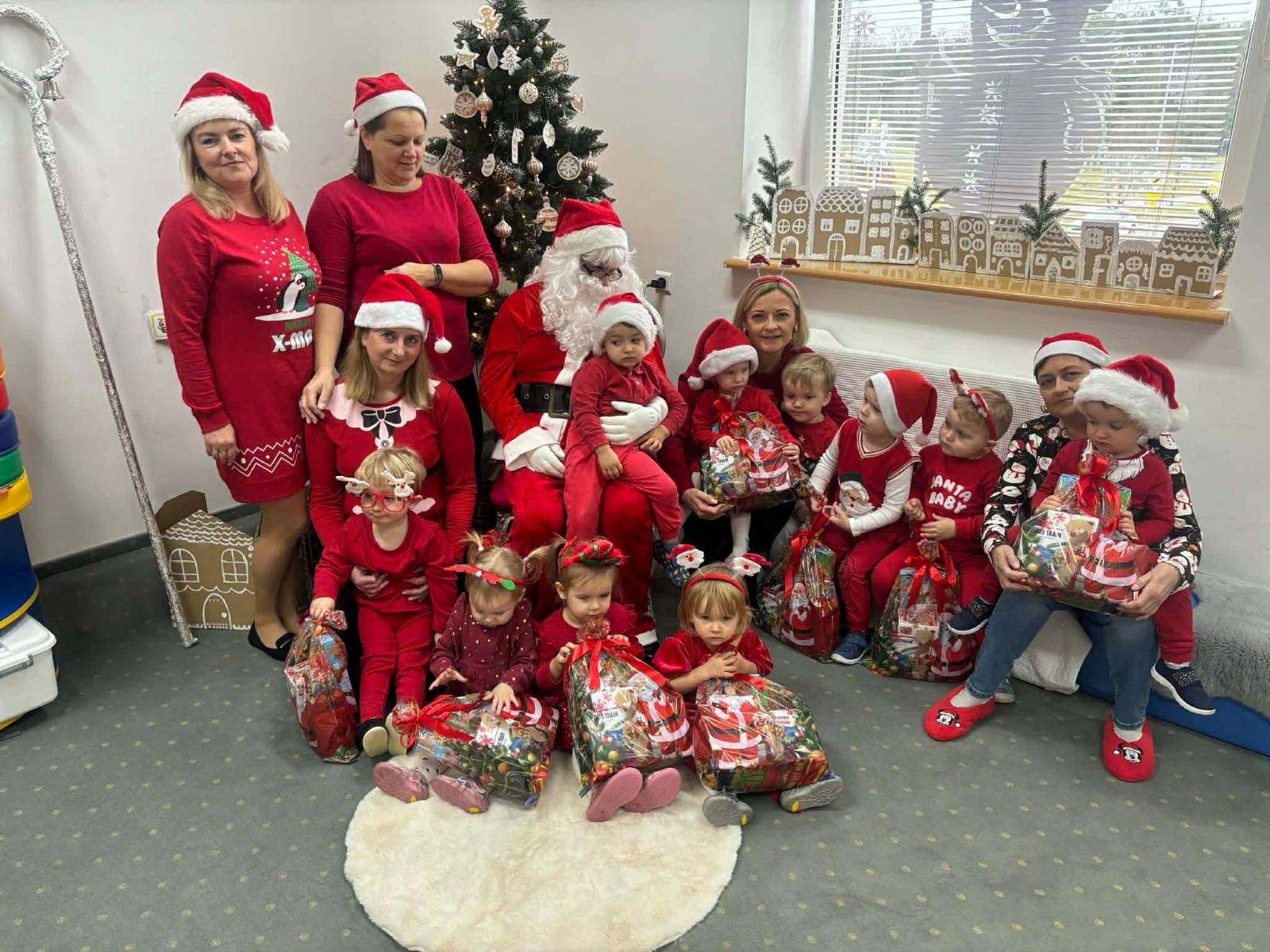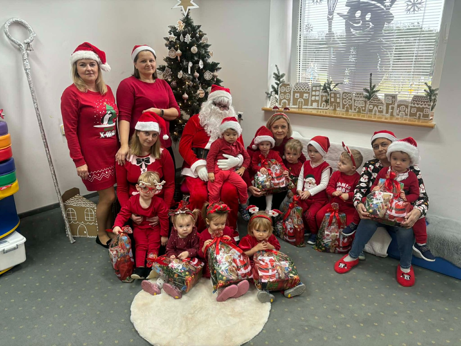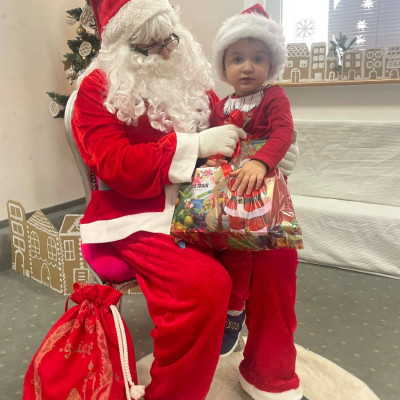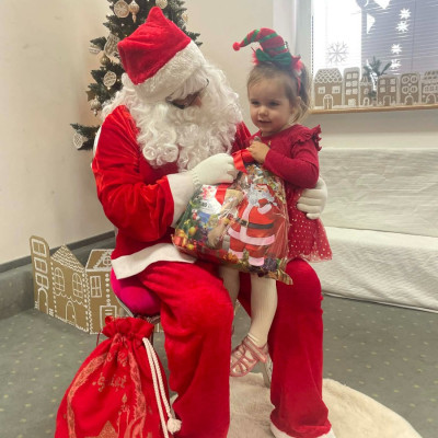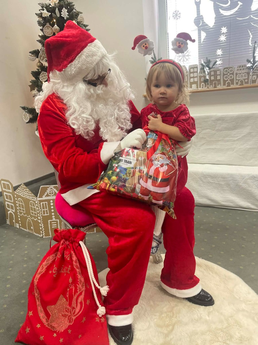 Zdjęcie przedstawia dzieci podczas wizyty Świętego Mikołaja