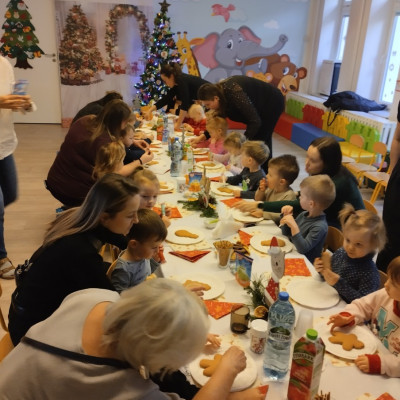 Nasze kochane Żabki miały okazję ozdabiać pierniczki wraz z swoimi rodzicami. Dzieci były zachwycone. W ruch poszły kolorowe jadalne pisaki oraz barwne posypki.