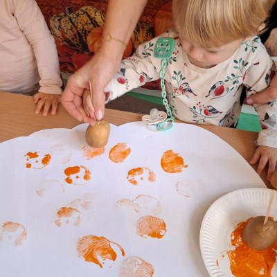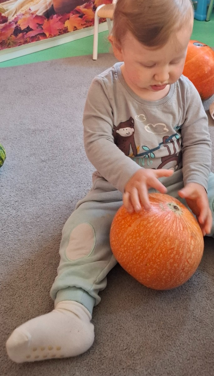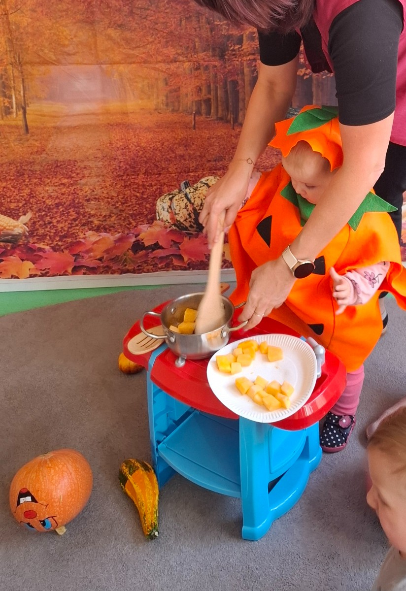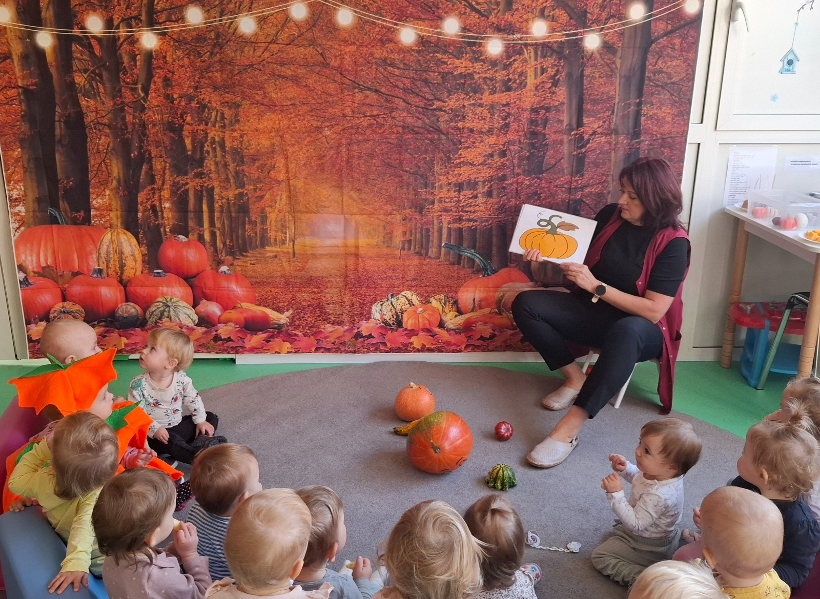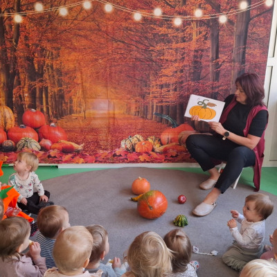 Gdy nadchodzi koniec jesiennych zbiorów czas ogłosić „Dzień Dyni”. Na grupie misie święto to obchodziliśmy 29 października.  Tego dnia podczas zajęć dzieci poznały wielką różnorodność dyń , dowiedziały się, że dynia jest bardzo zdrowym warzywem, że można z niej przygotować wiele dań.W ramach zajęć sensorycznych dzieci mogły dotknąć, powąchać a także wspólnie badać wnętrze dyni, jej miąższ oraz pestki. Nasze maluszki wykonały także wspólną pracę plastyczną polegającą na odbijaniu pieczątek z ziemniaka na szablonie dyni, uczyły się układać dynie od największej do najmniejszej  a na zakończenie zajęć podrzucały do góry pomarańczowe balony oraz bawiły się przy piosenkach o tematyce związanej z dyniami oraz jesienią.
