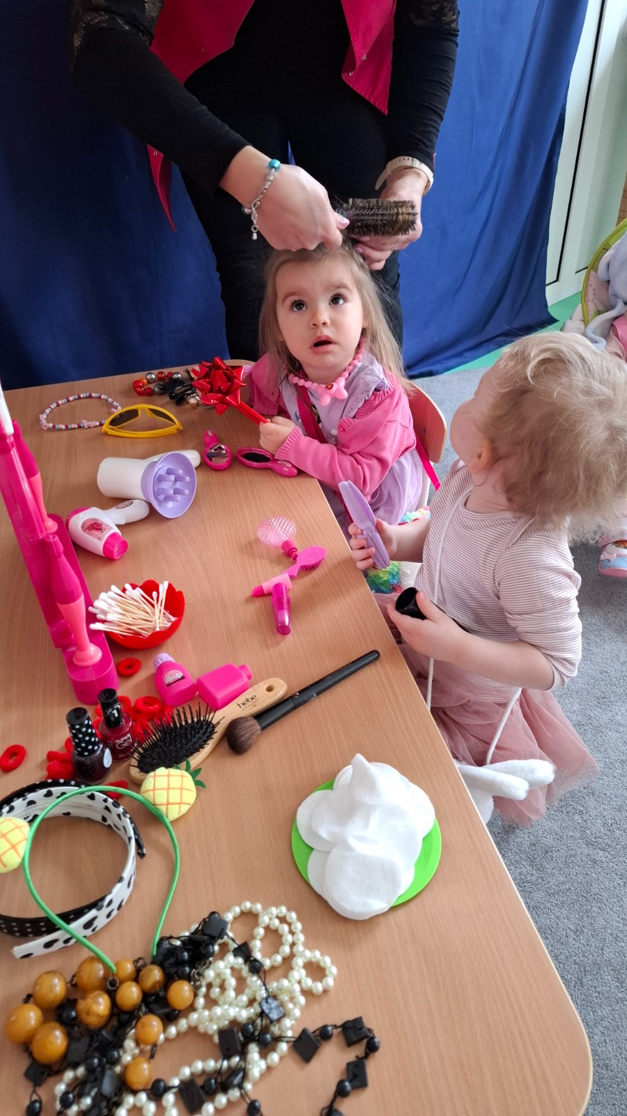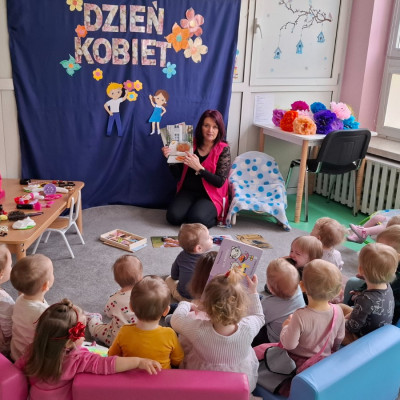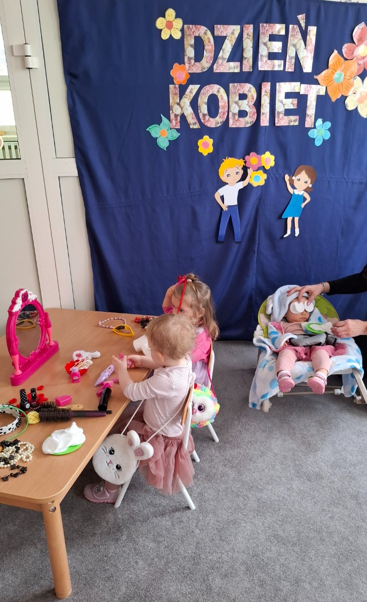 Oczywiście mowa o Dniu Kobiet..Święto to obchodziliśmy 7 marca na naszej grupie. Na początku zajęć cała grupa dowiedziała się jaką rolę w społeczeństwie pełnią kobiety oraz że szacunek , wdzięczność należy im okazywać zawsze a nie tylko w dniu ich święta.W ramach zajęć nasze małe kobietki mogły skorzystać z zabiegów w ,, mini spa" a następnie wzięły udział w pokazie mody. Nasze modelki pięknie ubrane przechadzały się z wielką gracją po czerwonym dywanie.