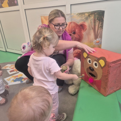 Zdjęcie przedstawia dzieci podczas zajęć z okazji dnia misia