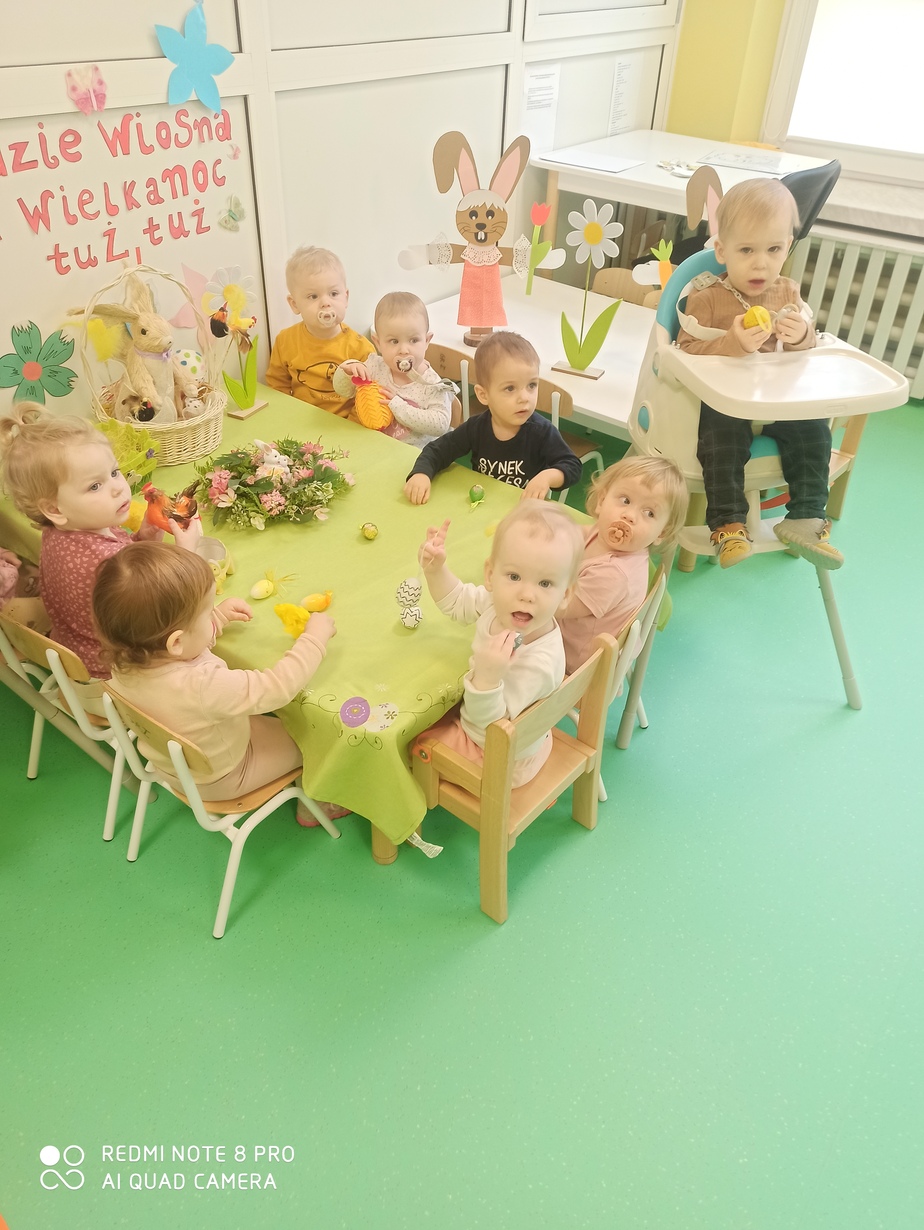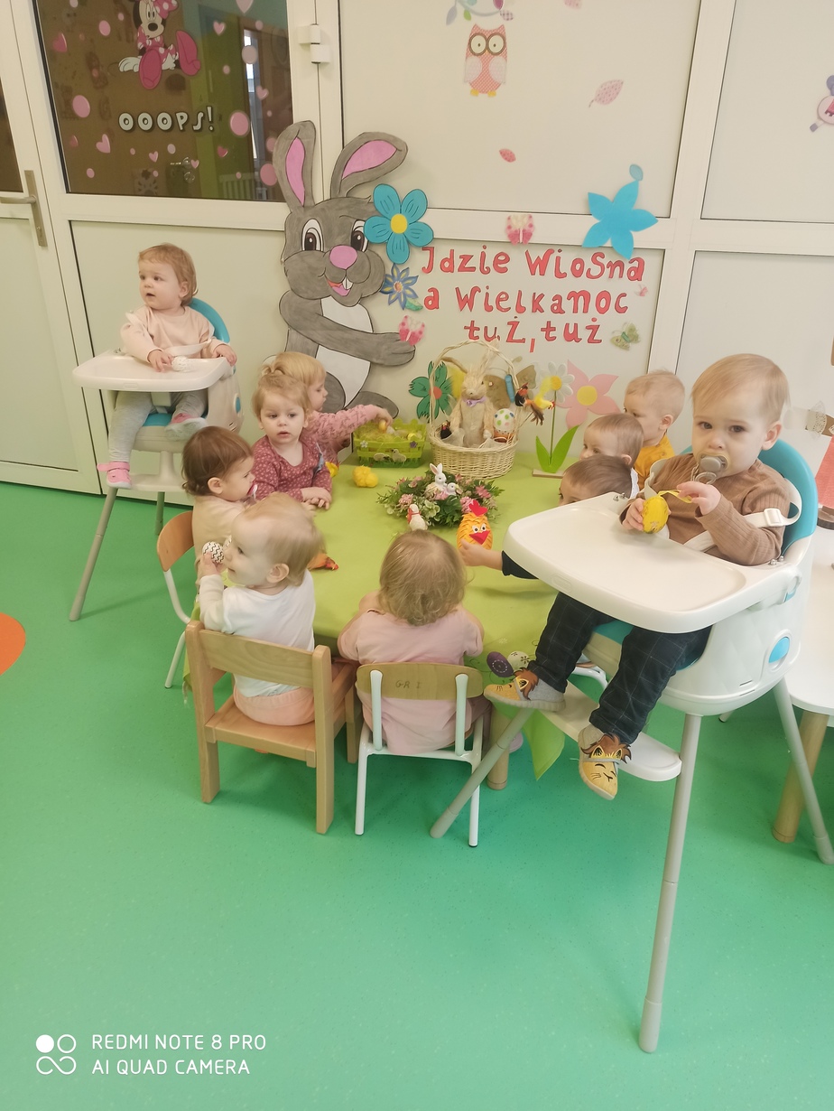 21 marca obchodzimy Pierwszy Dzień Wiosny , a zaraz po tym Święta Wielkanocne . Z tej okazji dzieci z Grupy 1 Misie poznały zjawiska atmosferyczne charakterystyczne dla marcowej pogody ( deszcz , wiatr , śnieg , słońce ) . Obejrzeliśmy również zdjęcia przylatujących do Polski ptaków oraz kwitnące kwiaty wiosenne. Podczas zajęć dzieci wraz z pomocą swoich opiekunek chętnie wzięły udział w sadzeniu wiosennych kwiatów – bratek do doniczek. Wraz z nadejściem wiosny Misie uczestniczyły w tradycji związanej z topieniem Marzanny . Na zakończenie opiekunka zaprezentowała grupie rzeczy jakie powinny znaleźć się w koszyczku wielkanocnym ( pisanki , baranki , zajączki itp. )