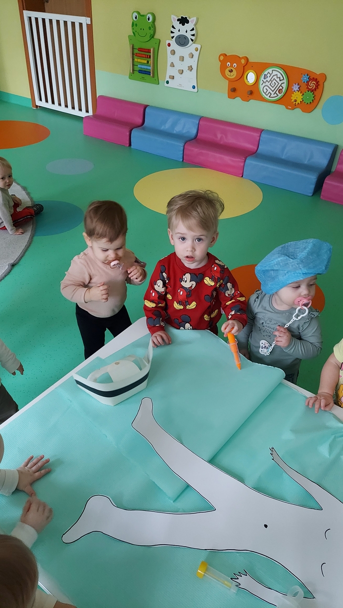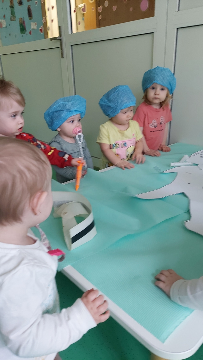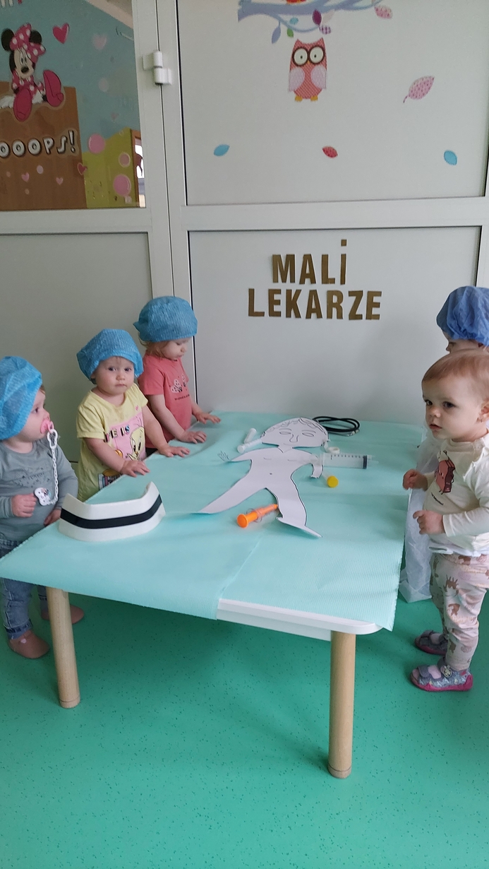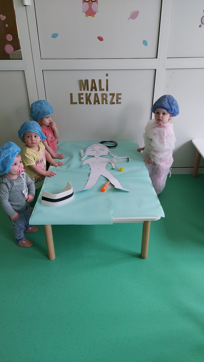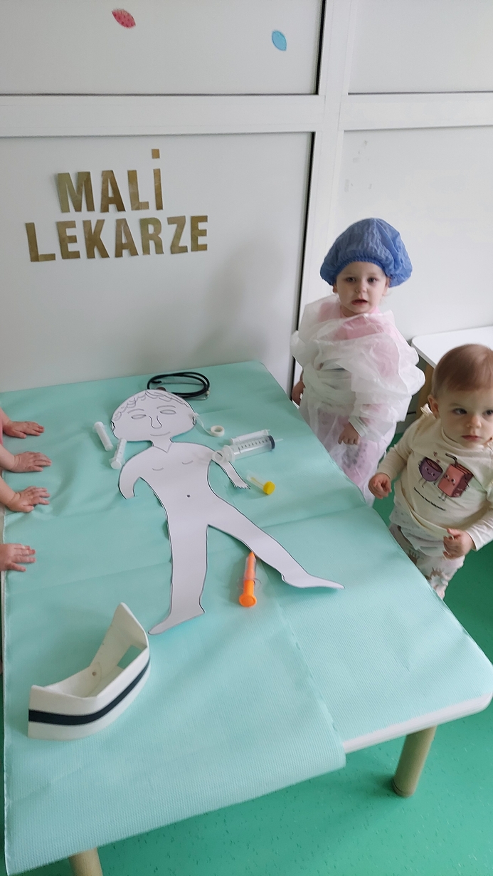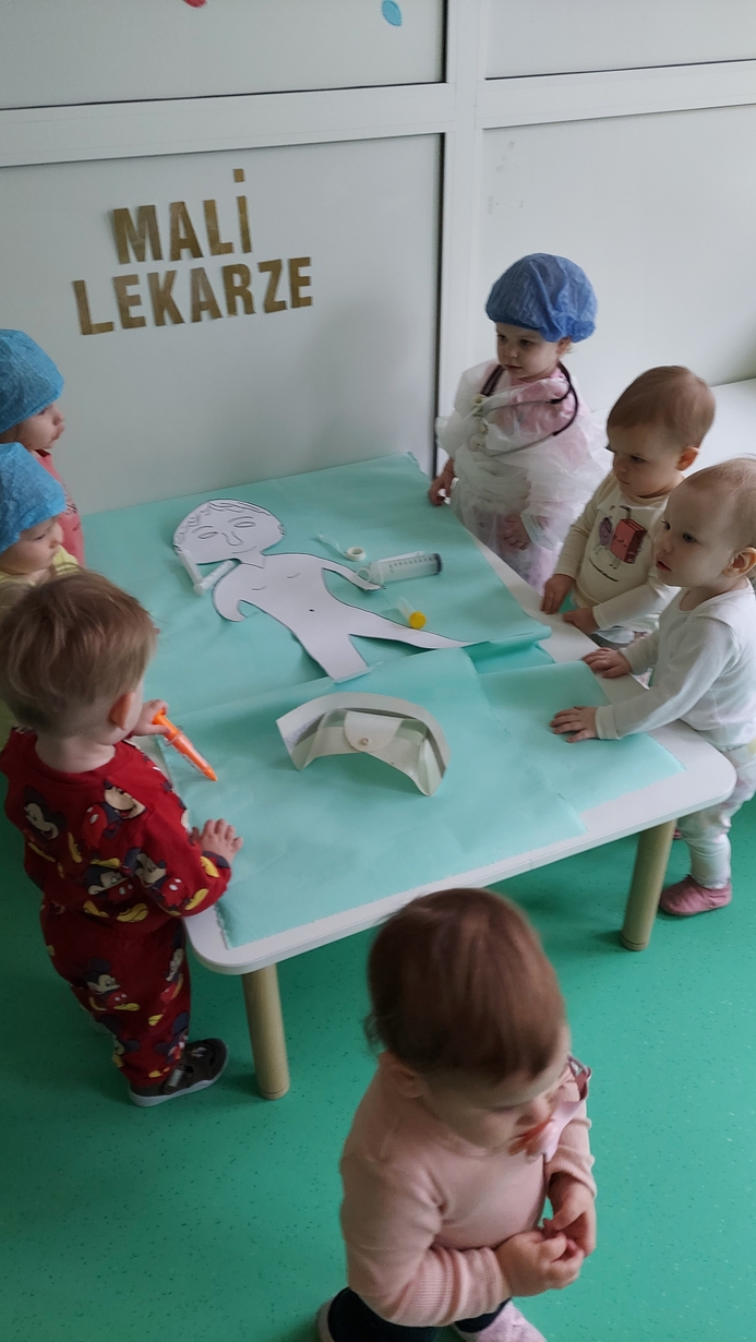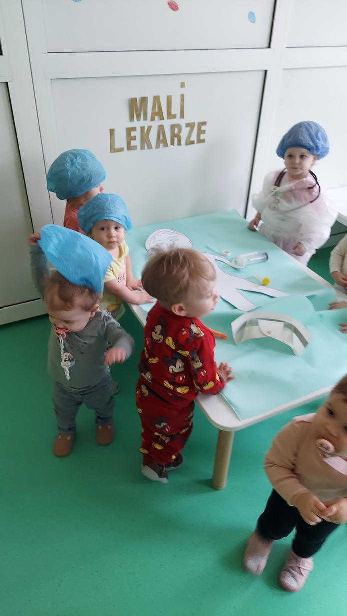 Dzieci z grupy Misie uczestniczył w zajęciach, w których poznały zawód lekarza.