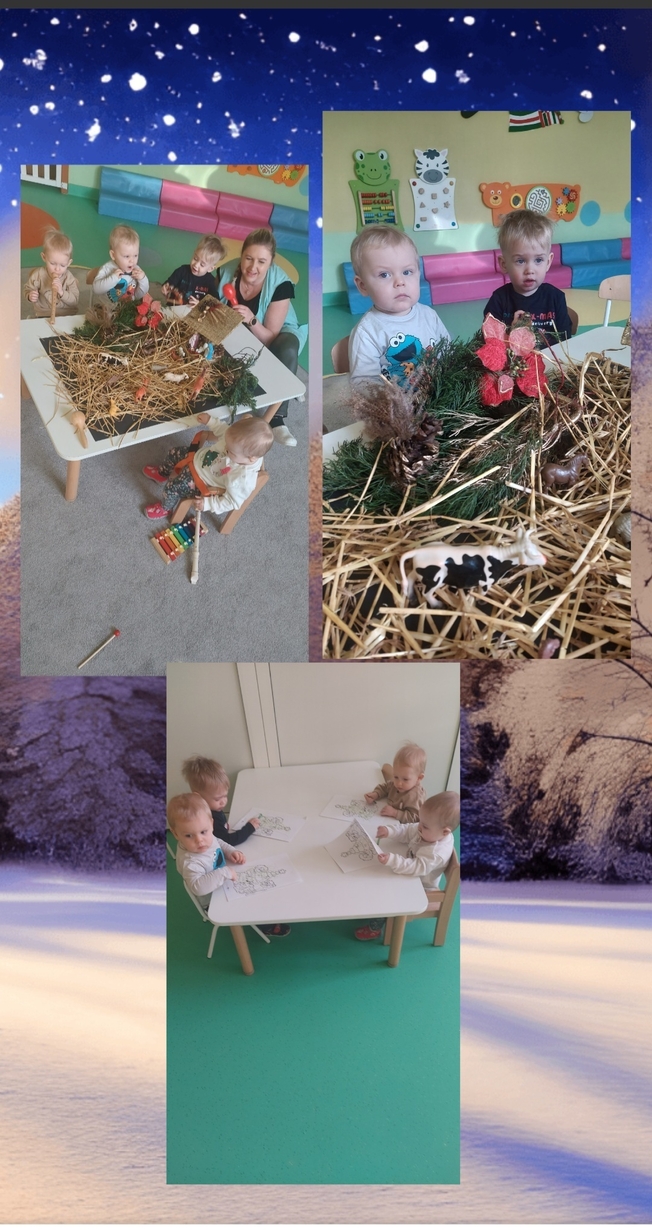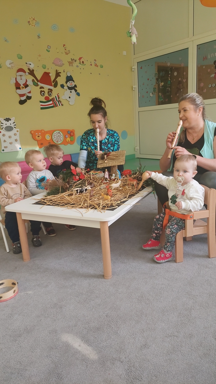 Na koniec wszystkie dzieci wraz z ciociami śpiewały kolędy i pastorałki, przy malutkiej szopce w rytm instrumentów muzycznych,