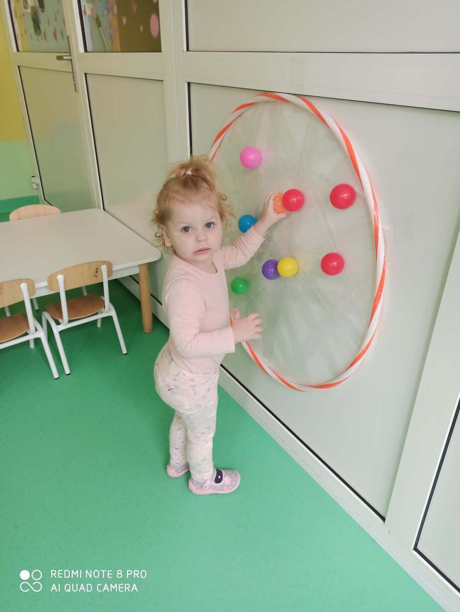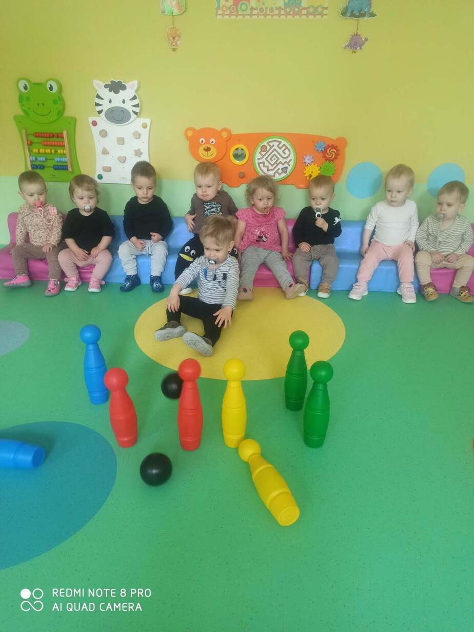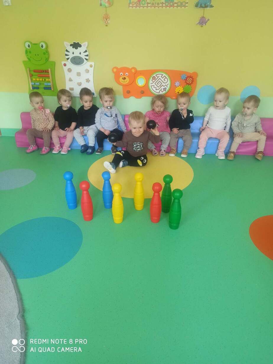 Nasze Maluszki kochają bawić się kolorowymi piłeczkami . Rozwijają motorykę dużą , myślenie , segregowanie oraz koordynację wzrokowo-ruchową . Na dzisiejszych zajęciach dzieci z Grupy 1 Misie dopasowywały kolory piłeczek do odpowiednich otworów w pudełku , przyklejały i ściągały je z taśmy hula hop. Następnie Misie z odpowiedniej odległości rzucały piłką do ułożonych kręgli . Wielką frajdę sprawił dzieciom basen z piłeczkami który wpływa na nawiązywanie relacji z rówieśnikami . Zapraszamy do obejrzenia fotorelacji z tego dnia .