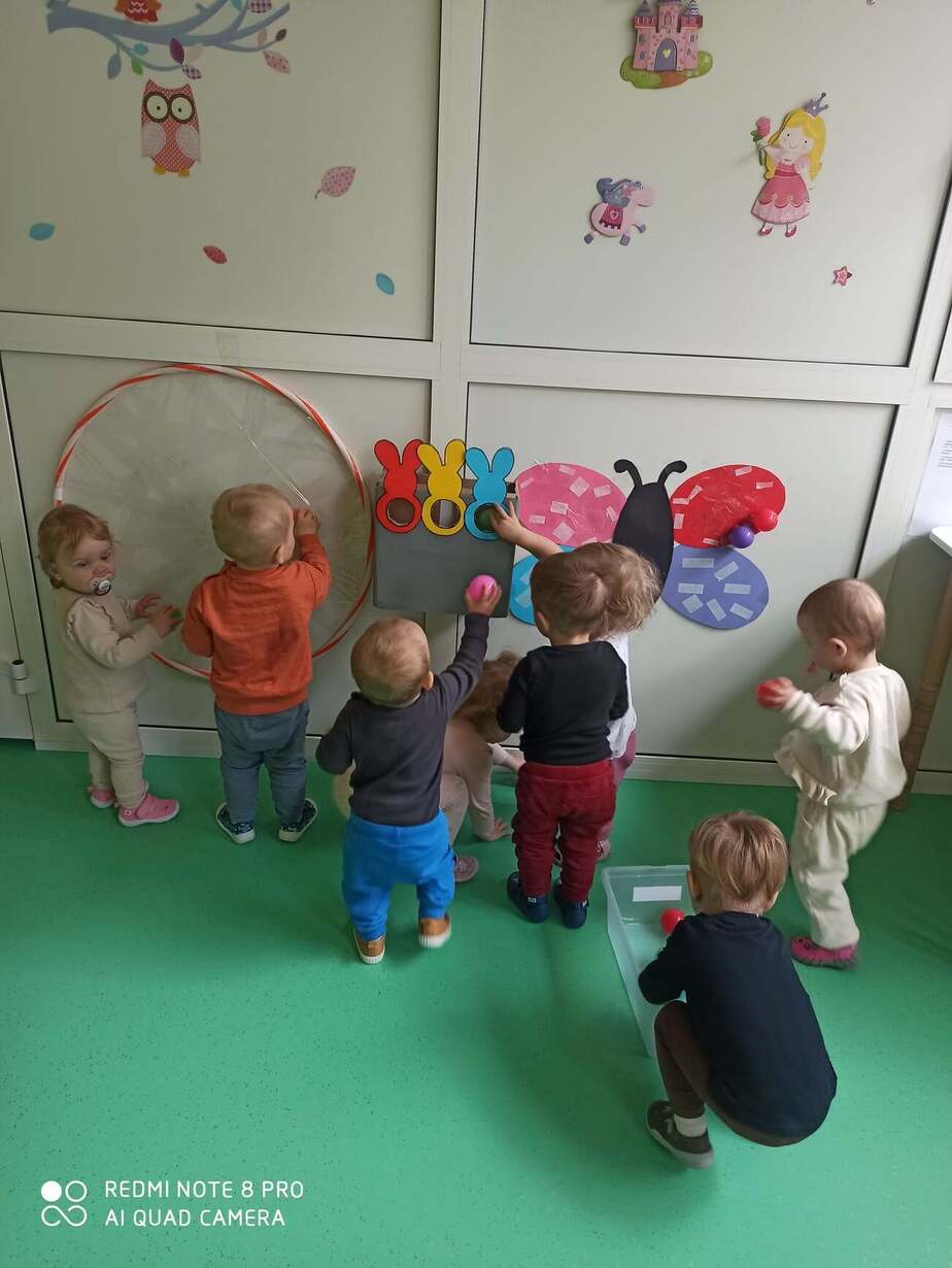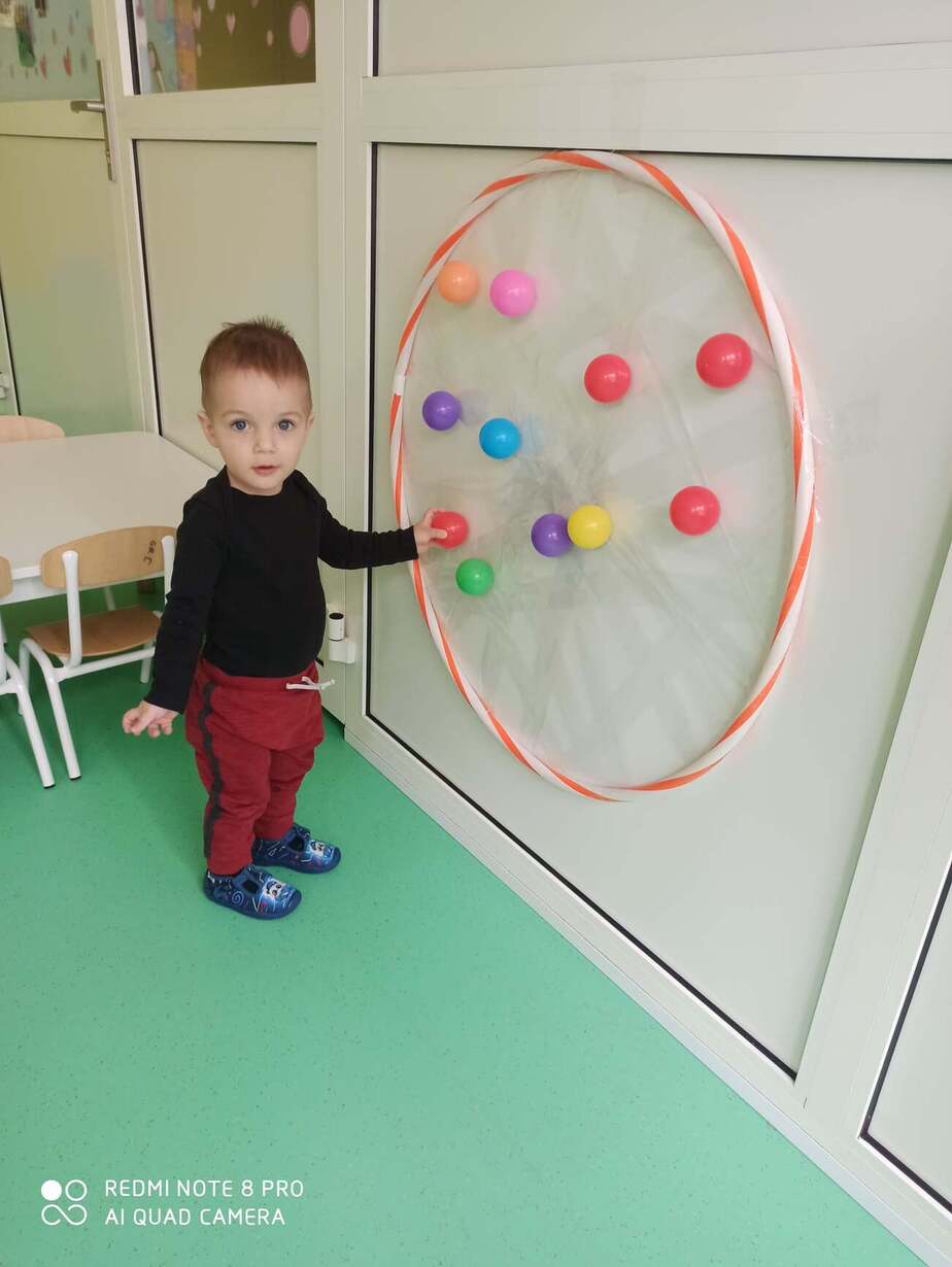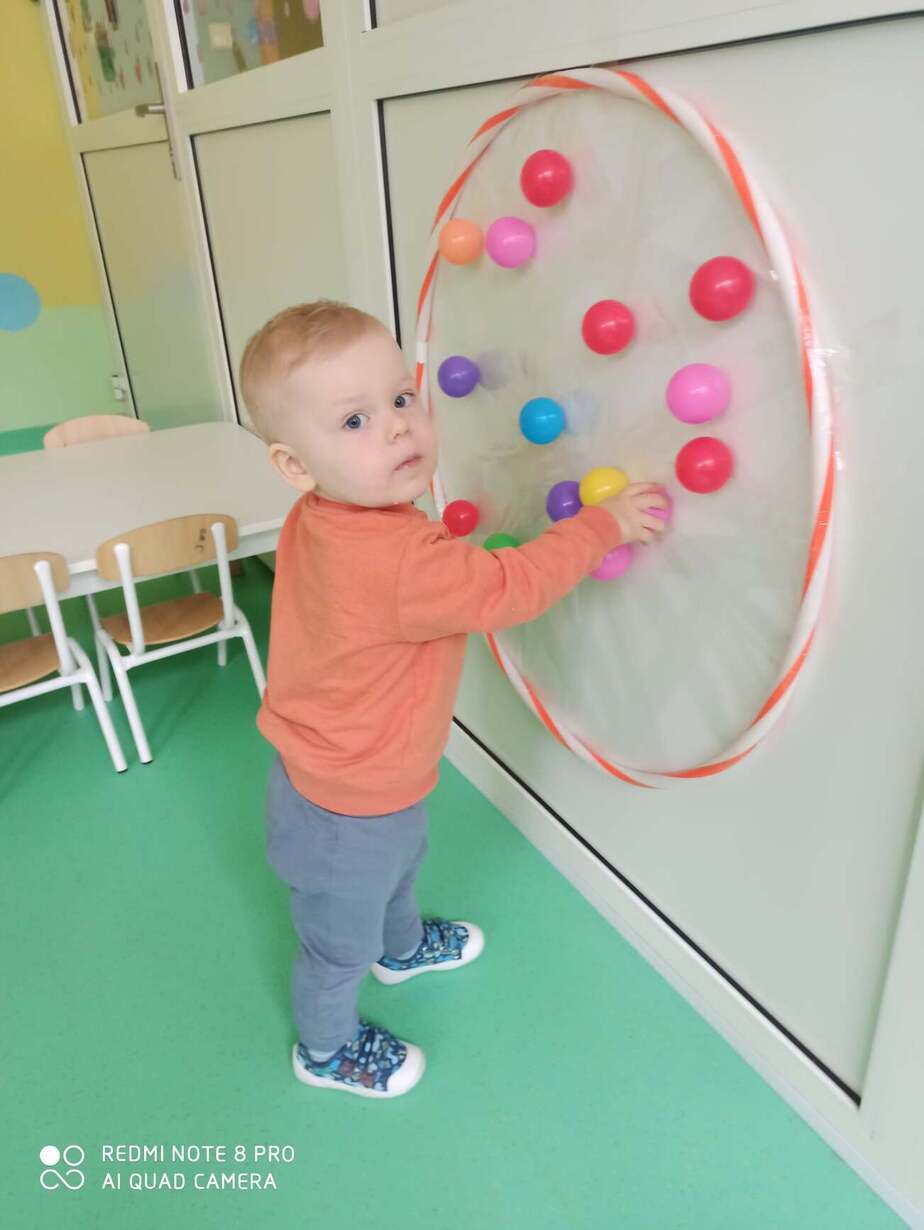Nasze Maluszki kochają bawić się kolorowymi piłeczkami . Rozwijają motorykę dużą , myślenie , segregowanie oraz koordynację wzrokowo-ruchową . Na dzisiejszych zajęciach dzieci z Grupy 1 Misie dopasowywały kolory piłeczek do odpowiednich otworów w pudełku , przyklejały i ściągały je z taśmy hula hop. Następnie Misie z odpowiedniej odległości rzucały piłką do ułożonych kręgli . Wielką frajdę sprawił dzieciom basen z piłeczkami który wpływa na nawiązywanie relacji z rówieśnikami . Zapraszamy do obejrzenia fotorelacji z tego dnia .
