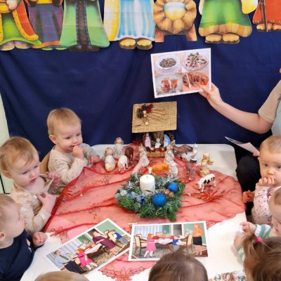 Zbliżające się Święta Bożego Narodzenia to wyjątkowy czas w którym oczekujemy na narodziny Jezusa. W ramach przygotowań do tych świąt dzieci z naszej grupy pomagały w ubieraniu choinki oraz poznały zwyczaje oraz tradycje świąteczne tj. ubieranie choinki , wspólna wigilia , śpiewanie kolęd itp. Podczas tych przygotowań nasze maluszki wspólnie kolędowały śpiewając kolędy oraz pastorałki oraz grały na instrumentach muzycznych.