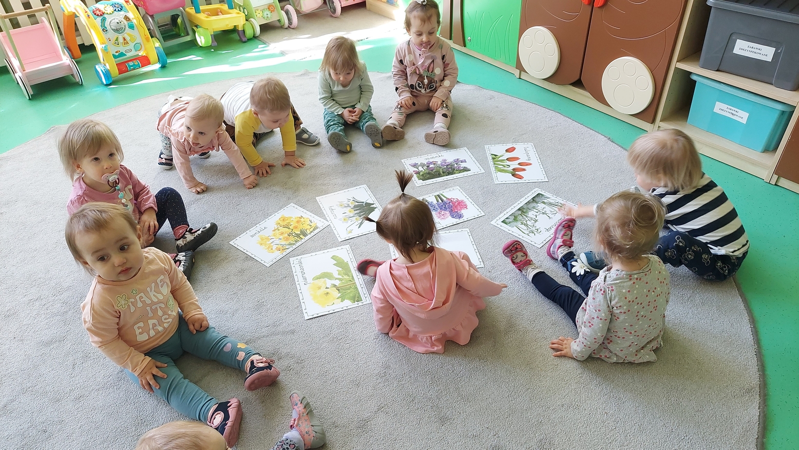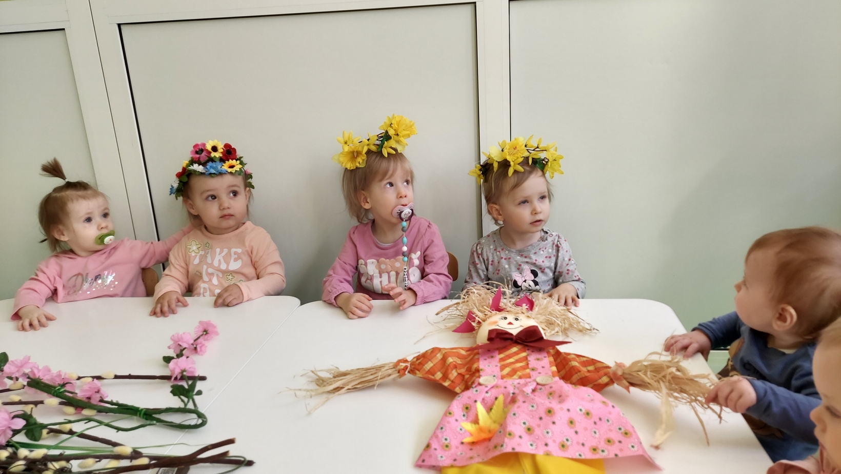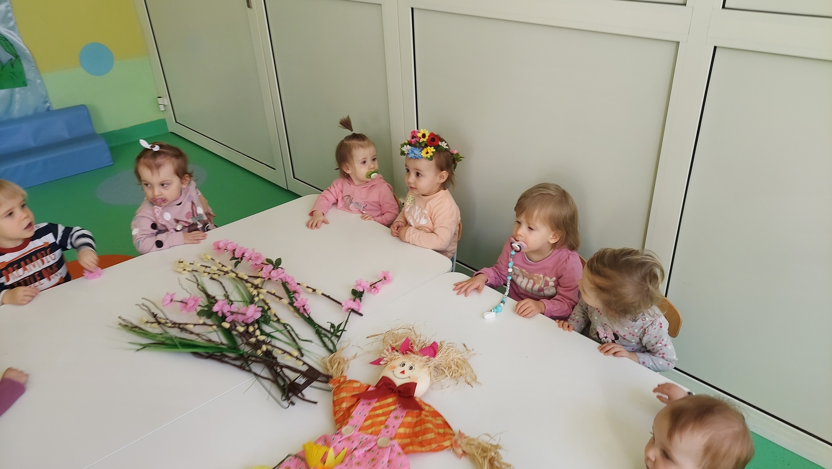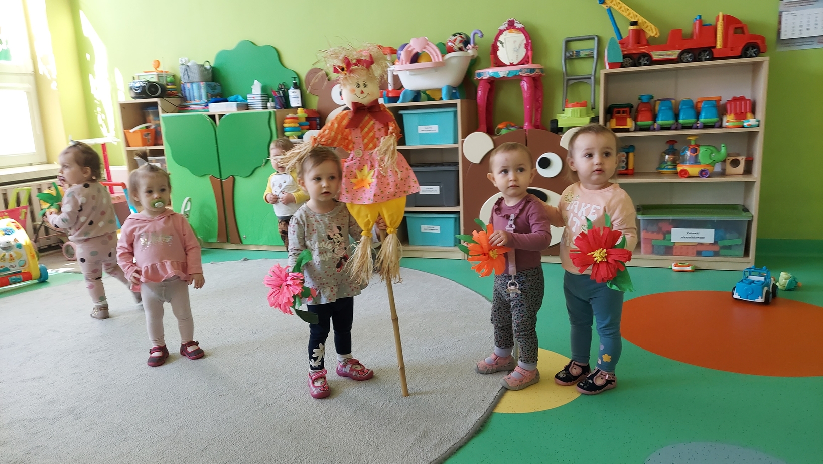 20 marca dzieci z grupy Misie powitały długo oczekiwaną wiosnę. W nastrój wiosenny wprowadziła nas piosennka ,,Tam daleko, gdzie wysoka sosna".Dzieci poznały Panią Wiosnę oraz jej pierwsze zwiastuny: kwiaty, bazie, jaskółki, pszczółki, drzewa z pierwszymi listkami, promienne słońce, na tyle których zrobiły sobie pamiątkowe zdjęcie. Później w ramach zabawy z poznanych kwiatów, bazi i innych zwiastunów przy pomocy pań zrobiliśmy wiosenne wianki i marzanne - symbol odchodzącej zimy. Nasze Misie z kwiatami w ręce i marzanną dumnie maszerowały by ostatecznie pożegnać zimę, a powitać nową porę roku - wiosne. Mamy nadzieję że już zostanie z nami i będziemy mogli spacerować po żłobkowym ogrodzie, by podziwiać jak pięknie zmienia się przyroda.