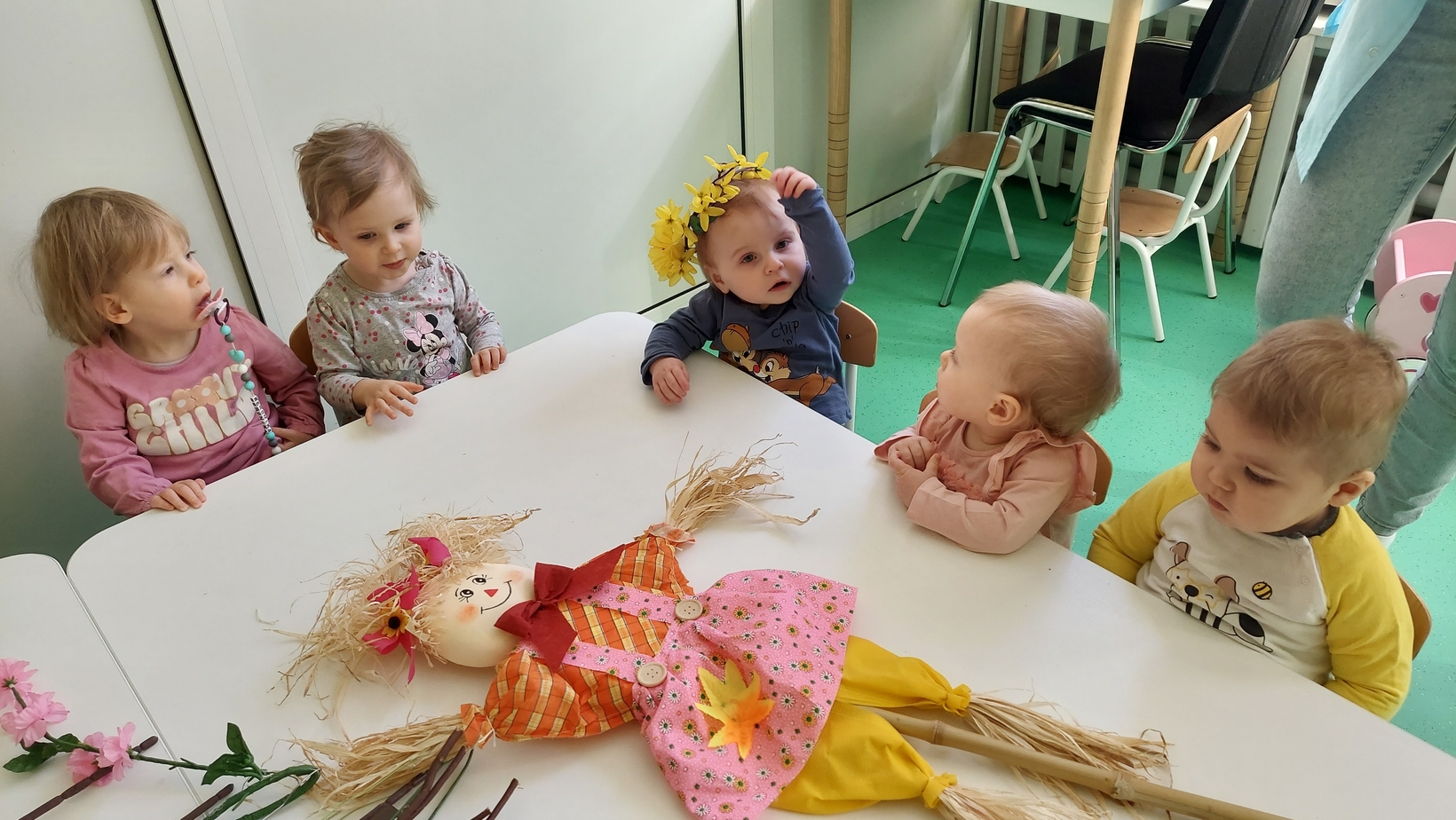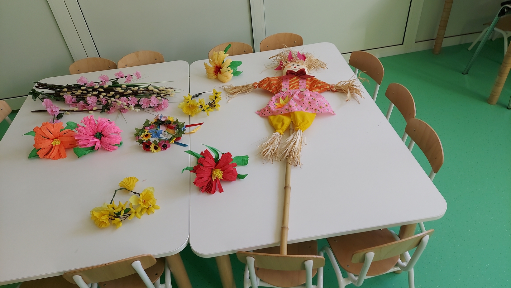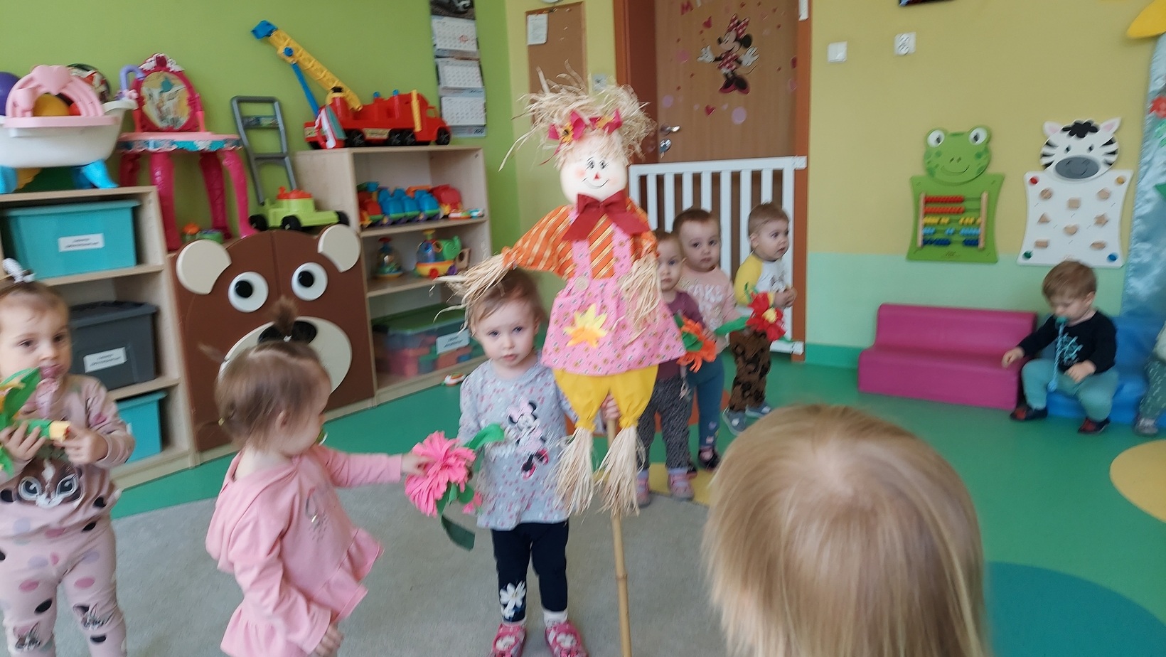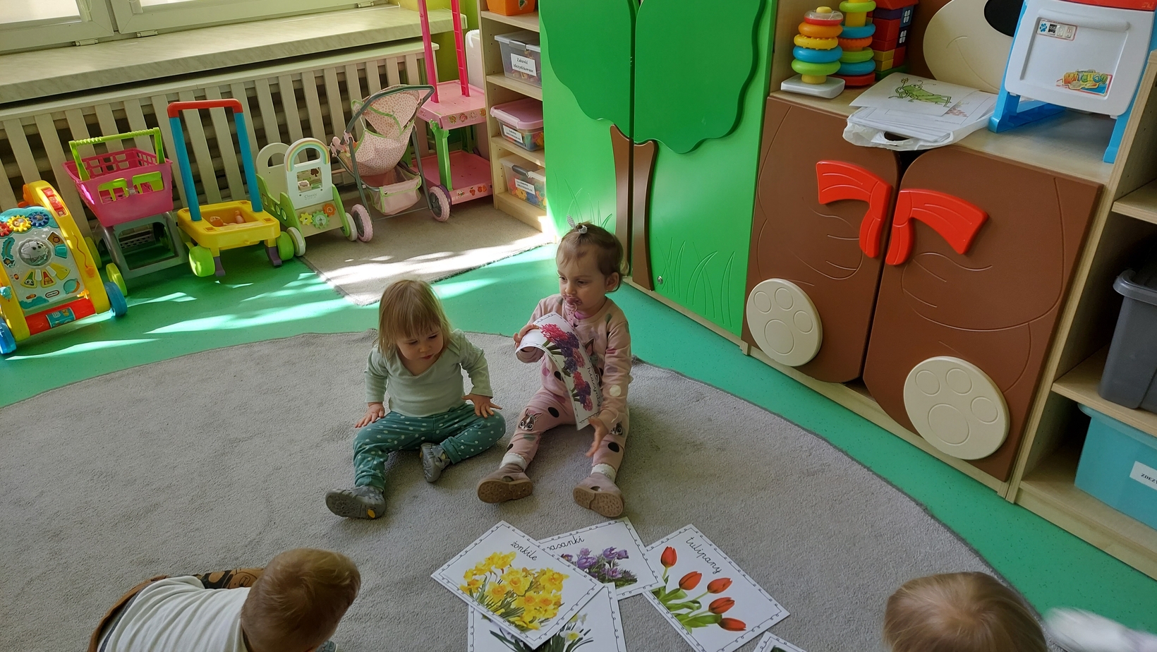 20 marca dzieci z grupy Misie powitały długo oczekiwaną wiosnę. W nastrój wiosenny wprowadziła nas piosennka ,,Tam daleko, gdzie wysoka sosna".Dzieci poznały Panią Wiosnę oraz jej pierwsze zwiastuny: kwiaty, bazie, jaskółki, pszczółki, drzewa z pierwszymi listkami, promienne słońce, na tyle których zrobiły sobie pamiątkowe zdjęcie. Później w ramach zabawy z poznanych kwiatów, bazi i innych zwiastunów przy pomocy pań zrobiliśmy wiosenne wianki i marzanne - symbol odchodzącej zimy. Nasze Misie z kwiatami w ręce i marzanną dumnie maszerowały by ostatecznie pożegnać zimę, a powitać nową porę roku - wiosne. Mamy nadzieję że już zostanie z nami i będziemy mogli spacerować po żłobkowym ogrodzie, by podziwiać jak pięknie zmienia się przyroda.