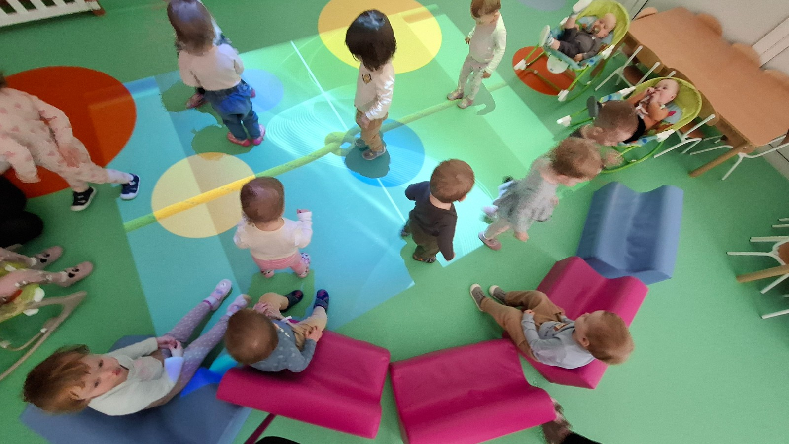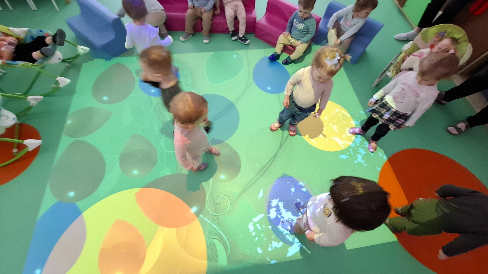 Zdjęcie przedstawia dzieci biorące udział w zajęciach ruchowych.