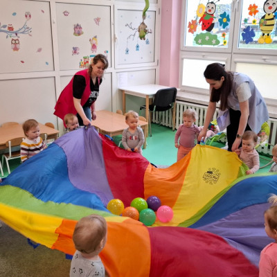 Ruch w życiu dzieci jest bardzo ważnym czynnikiem, stymulującym poprawny rozwój małego człowieka. W dniu 7.04.2025 w grupie Misie odbyły się zajęcia sportowe. Dzieci z radością zaangażowały się proponowane ćwiczenia z wykorzystaniem piłek, ścieżki sensorycznej, tunelu czy zbijanie kręgli. W zabawach sportowych dzieci rozwijały sprawność chwytu, skoku biegu, a także utrwaliły znajomość schematu swojego ciała. Dzieci w tym dniu bawiły się świetnie, co widać po uśmiechu na ich twarzach.