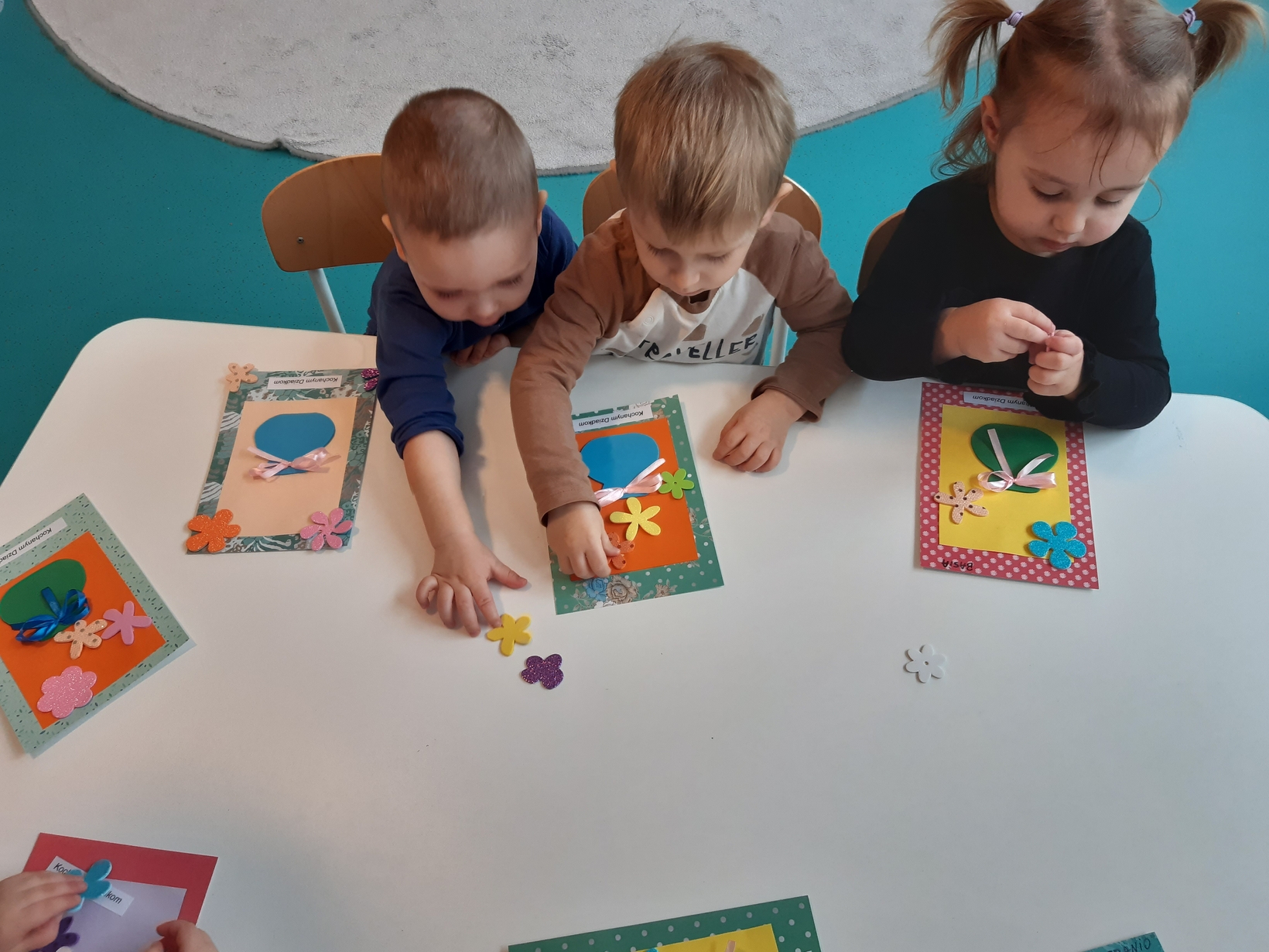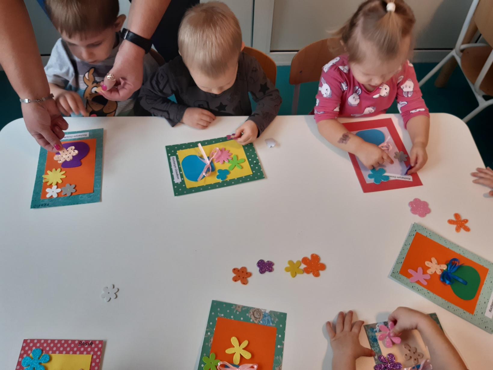 Już kilka dni wcześniej dzieci z pomocą pań opiekunek wykonały drobne upominki, a mianowicie ramki na zdjęcia,