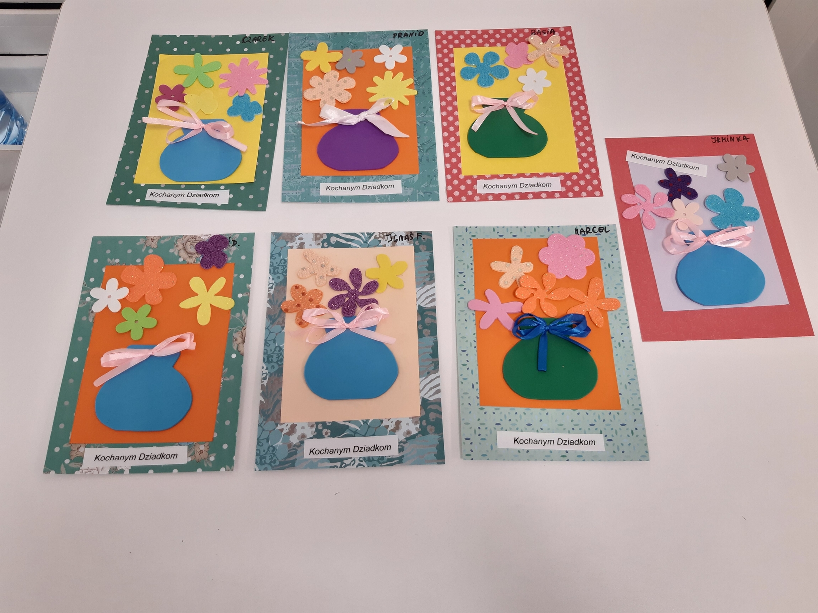 Na zakończenie zajęć dzieci wykonały laurki dla dziadków.