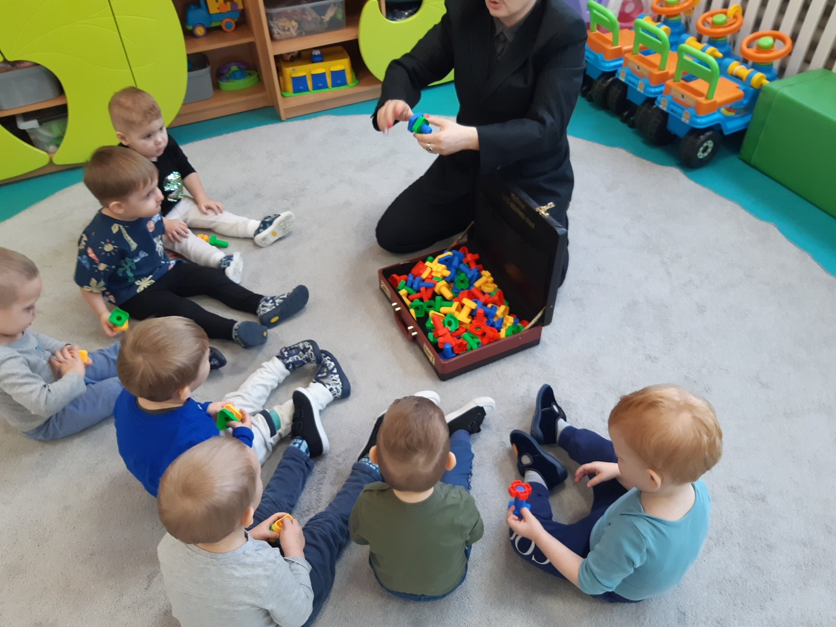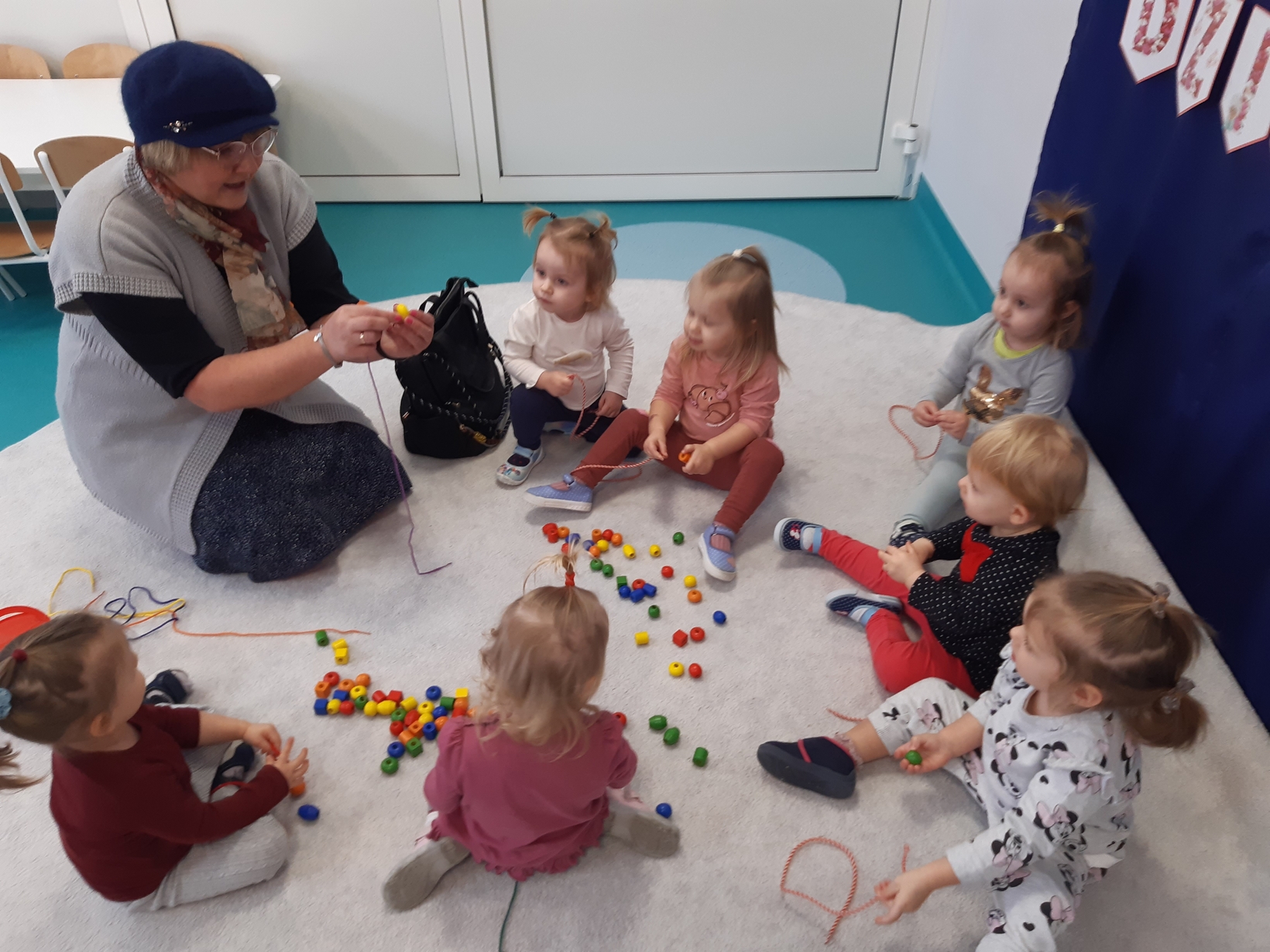 Dzieci wspólnie z nimi wykonywały drewniane korale oraz  uczyły się nakręcać nakrętki na śrubki,